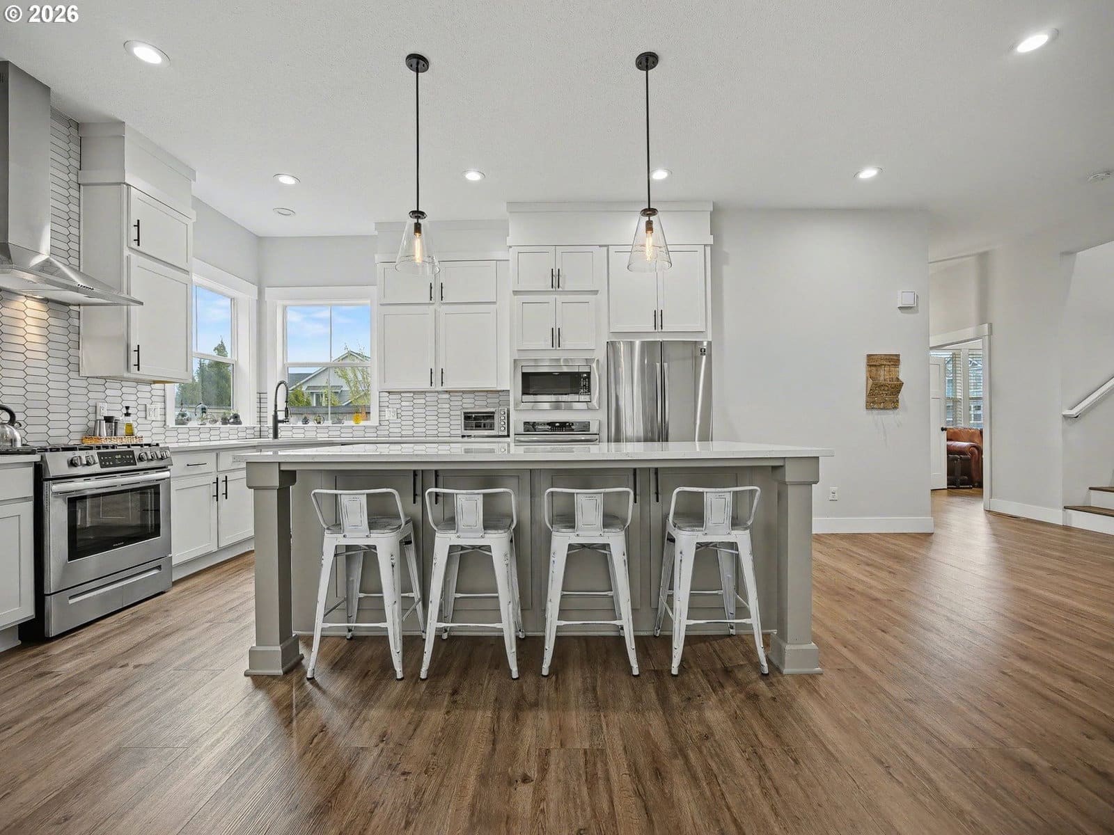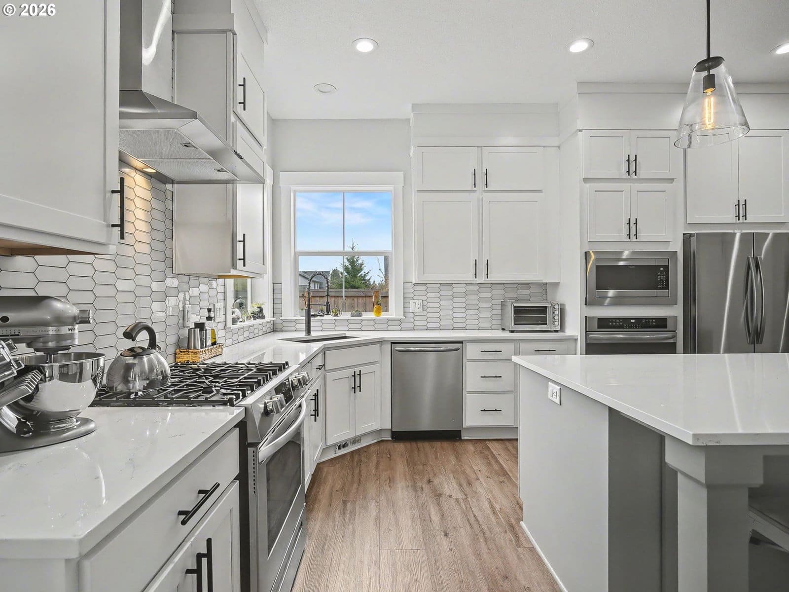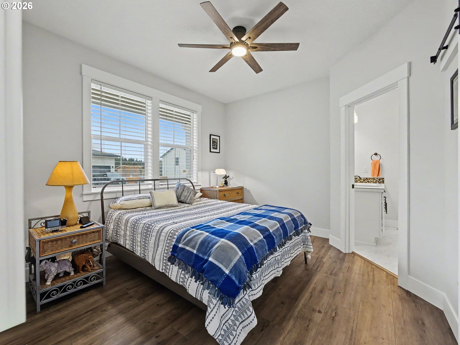 This distinguished four-bedroom, two-and-a-half-bathroom residence PLUS 1-bedroom, 1-bathroom ADU with separate entrance occupies a desirable corner lot, presenting over 3,100 square feet of thoughtfully designed living space ideally suited for a variety of needs. The gourmet kitchen serves as the architectural centerpiece of this home, appointed with refined alabaster countertops, an integrated wine cooler, a generously proportioned pantry, and a substantial island that accommodates both meal preparation and casual gathering. The great room layout opens to a large living room with fireplace and out to the covered back patio. The upper level features a versatile loft area that lends itself to numerous practical applications, whether configured as a dedicated home office, creative studio, or private retreat. Primary bedroom ensuite includes a walk-in closet, luxury bathroom with double sinks, soaking tub, and walk in shower. The accessory dwelling unit, equipped with its own private entrance, is a self-contained space affording considerable flexibility, serving admirably as a guest suite, accommodations for extended family members, or a viable source of supplemental rental income. The covered back patio provides an elegant transition to the fully fenced yard, establishing an excellent environment for children and pets while offering a refined setting for outdoor entertaining throughout the seasons. The property has been prepared for solar panel installation, providing a straightforward pathway to sustainable energy at the homeowner's discretion and 240amp power in garage. The surrounding neighborhood delivers exceptional convenience, with Bornstedt Park and Splashpad within comfortable proximity, and everyday retail and restaurant establishments readily accessible.