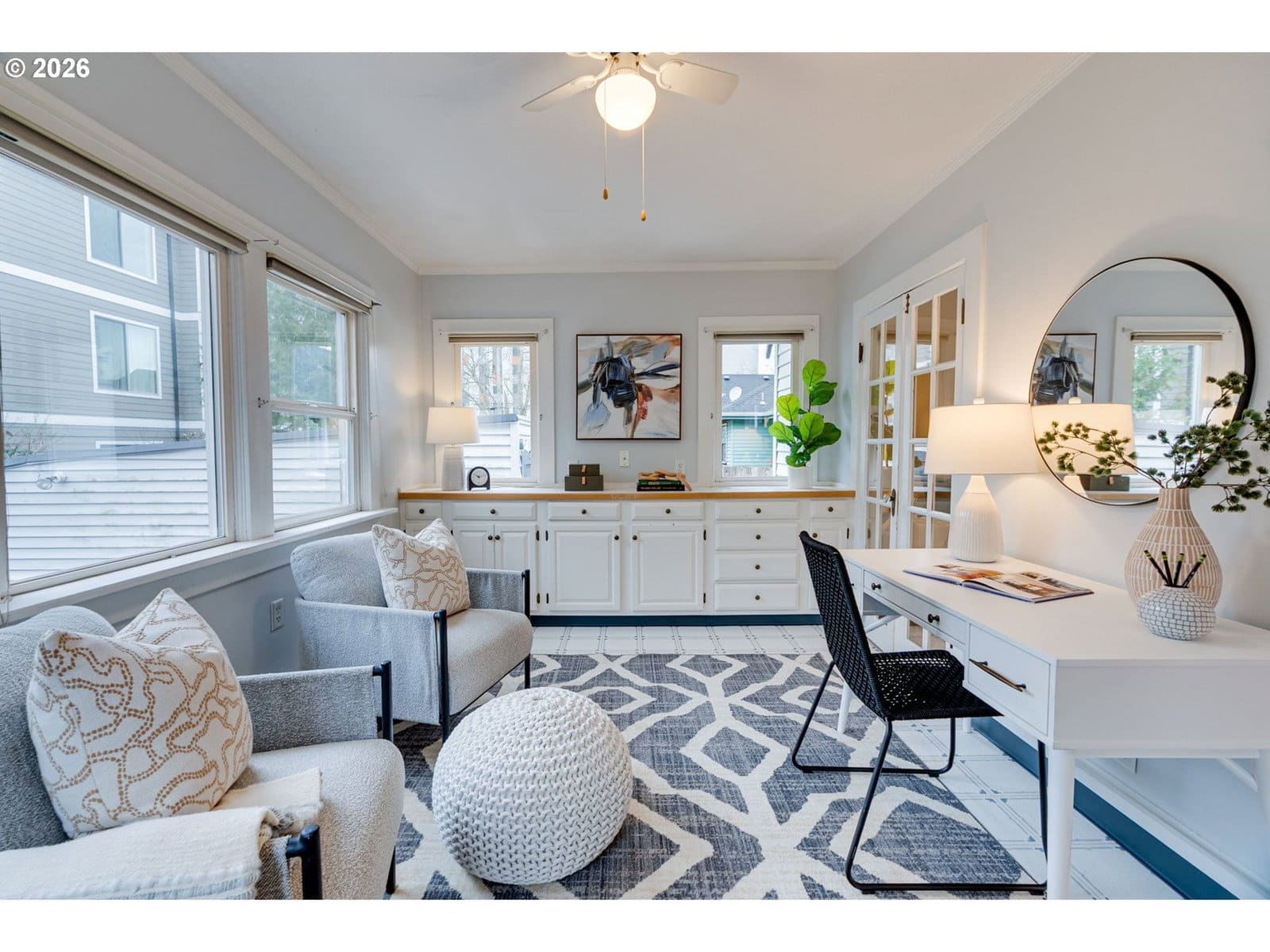 This quintessential 1912 Craftsman is rich with soul and preserved character, set in the heart of Portland’s vibrant Hollywood District. With a fabulous front porch, 3 bedrooms, 2 baths, and 2,524 square feet, this home balances historic charm with modern livability. Period details shine at every turn with high ceilings, vintage woodworking, glass knobs, hardwood floors, original light fixtures and a charming built-in buffet in the formal dining room. The warm living room is anchored by a cozy wood-burning fireplace, opening to the dining room, creating the optimal flow for entertaining. The kitchen has a lovely layout, ideal for a light remodel, including a sweet bonus space perfect for a sunny home office, art studio or creative space. There are two sizable bedrooms and a full bathroom on the main level, with an expansive upstairs primary suite that includes a sitting area, full bathroom and large bedroom. Fresh carpet and paint complete this private retreat, with two skylights that soak the space with natural light. Multiple systems have been thoughtfully updated including a newer furnace, updated water line, PEX plumbing throughout and a mini split upstairs for added comfort and efficiency. The fully fenced backyard has plenty of room for gardening, hosting and lounging, including a weather-resistant Trex deck, just waiting for your imagination to run wild! Located near everyday conveniences and some of Portland’s favorite haunts— Gado Gado, the iconic Hollywood Theatre, Sizzle Pie, neighborhood coffee shops, Trader Joe’s, Grocery Outlet, Whole Foods and so much more. This handsome devil also offers quick access to Sandy, Broadway, I-84, and downtown. A timeless Craftsman with modern ease, in the heart of one of the best neighborhoods in Portland. [Home Energy Score = 1. HES Report at https://rpt.greenbuildingregistry.com/hes/OR10244155]