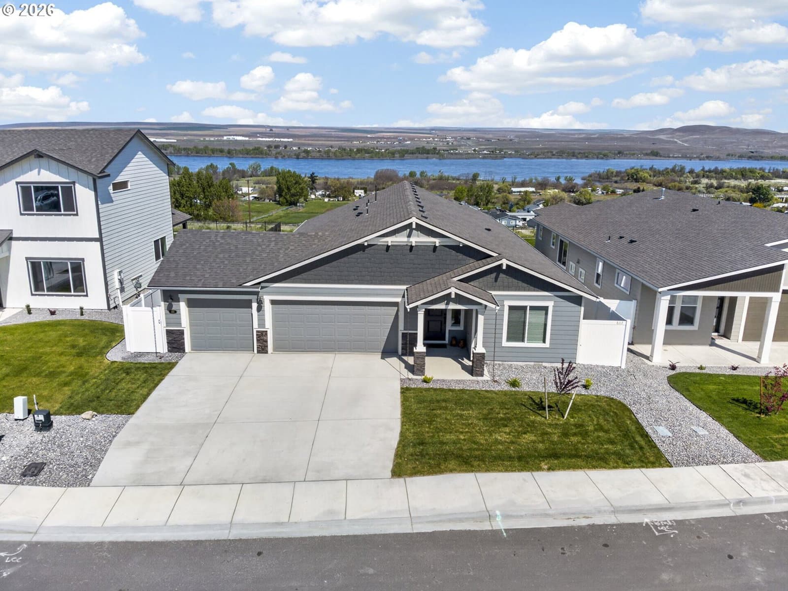 Come experience the incredible views this stunning new Craftsman home has to offer. Perfectly blending contemporary design with comfortable living, this beautifully maintained residence showcases breathtaking Columbia River views from nearly every window. Featuring 3 bedrooms and 2 full baths, the home offers a bright, open floor plan with vaulted ceilings and abundant natural light throughout. Located in the highly desirable McClannahan Summit neighborhood, this is one of the only single-level homes on an oversized view lot, complete with a spacious and insulated 3-car garage, ideal for all your vehicles and outdoor gear. Thoughtfully upgraded, the home includes high-end appliances, stylish window treatments, and gas features throughout. The chef’s kitchen is a true centerpiece, boasting quartz countertops, a walk-in pantry, farmhouse sink, full-height tile backsplash, and a large island with an eat bar. Stainless steel appliances, including a built-in gas range and dishwasher, complete this amazing space. The open-concept living and dining areas are designed to maximize the views, with vaulted ceilings and a large sliding glass door that leads to a 16x10 covered patio—perfect for relaxing or entertaining. The private owner’s suite offers a peaceful retreat with a walk-in closet and a spacious ensuite bathroom featuring double sinks, a walk-in shower, and a soaking tub. Built by award-winning MonteVista Homes, this property also includes a 95% high-efficiency gas forced-air heating system, central air conditioning, a cozy gas fireplace, and a well-appointed laundry/mud room with ample cabinetry and storage. Outside, enjoy a fully fenced and landscaped backyard with attractive stone accents. All appliances, including a brand-new Hot Springs Spa Highlife collection 5-person hot tub, are included in the sale. This one won't last long, call to come see it today! Open House Saturday 5/2 12–2pm!