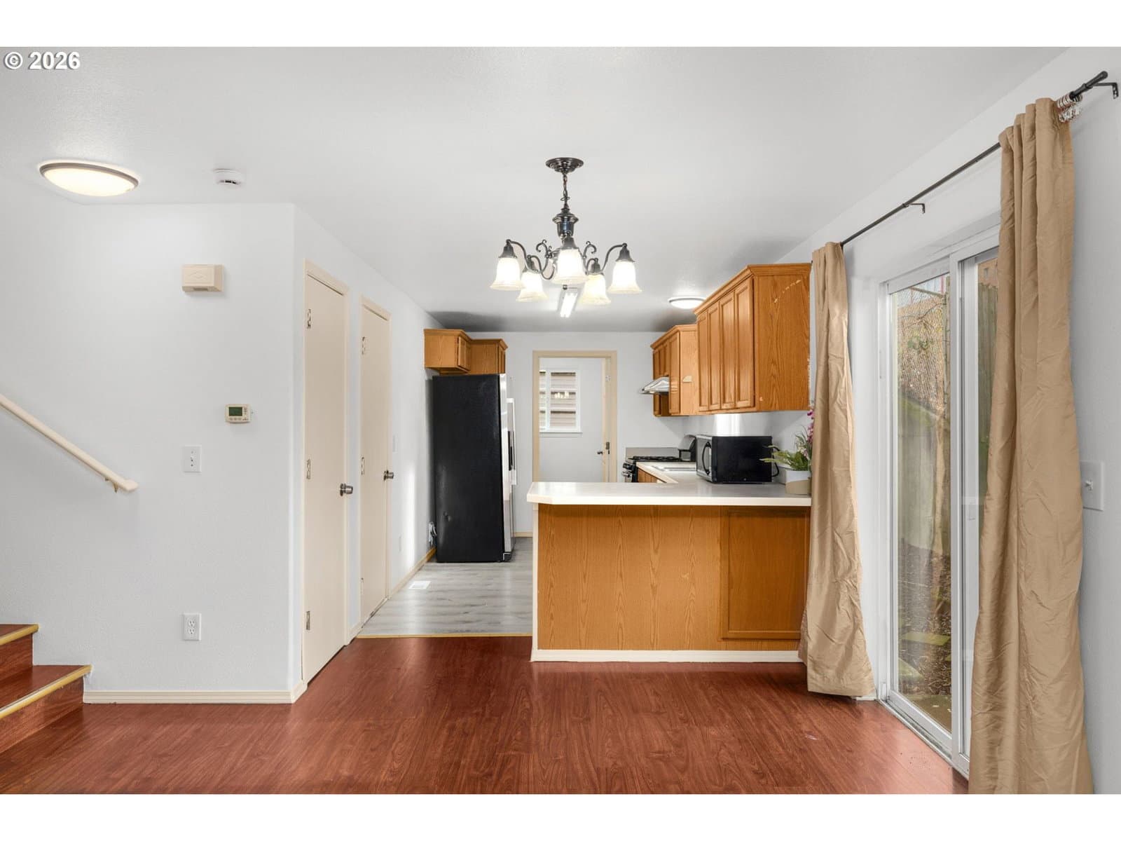Spacious 2-level home tucked away from street with no neighbors in back offering plenty of privacy! Roof is brand new, along with new interior paint and various fixtures/lighting throughout. Open main level features a cozy gas fireplace in living room, slider from dining area to back patio and kitchen with bar counter seating. 1/2 bath with space for washer/dryer also on main level. Upstairs, primary suite comes with two closets and attached bathroom along with three additional bedrooms and hall bathroom. Ample parking with 1-car garage, caport, and driveway. Location is convenient to I-205, I-84, and US-26 as well as plenty of great grocery and dining options, parks, and movie theater!