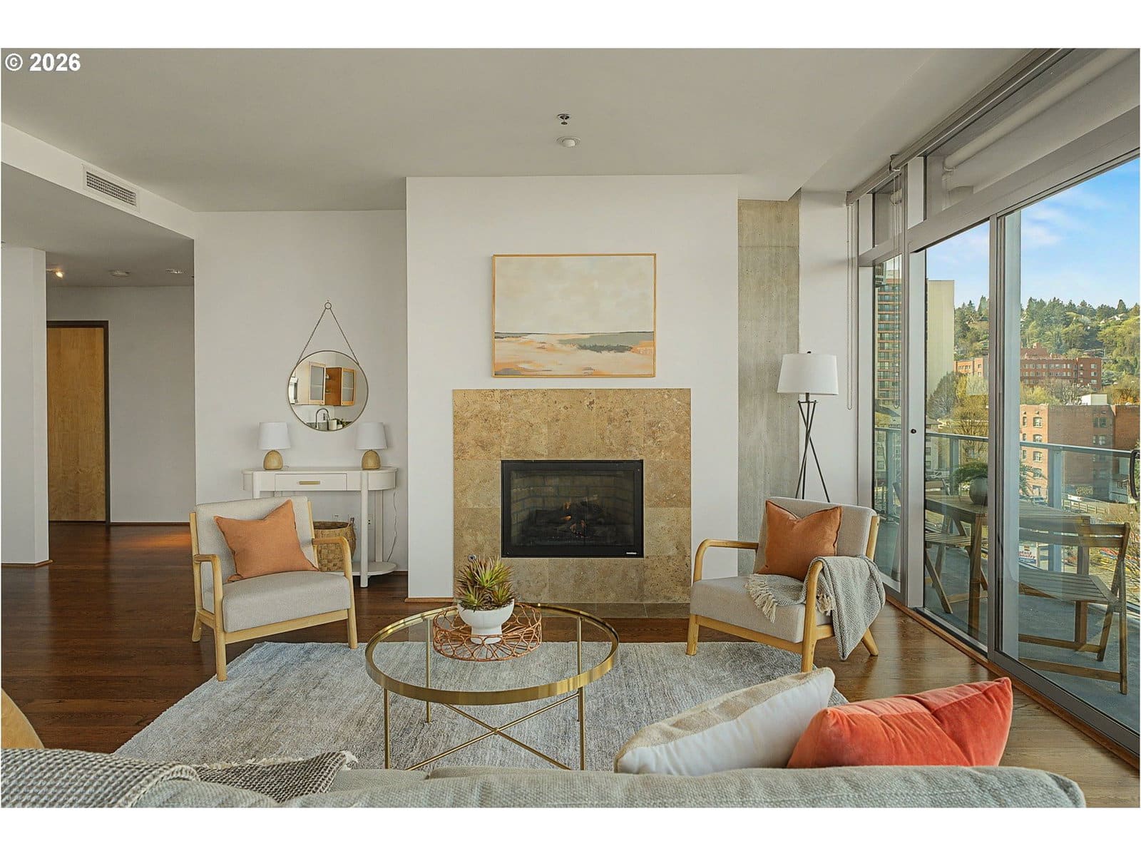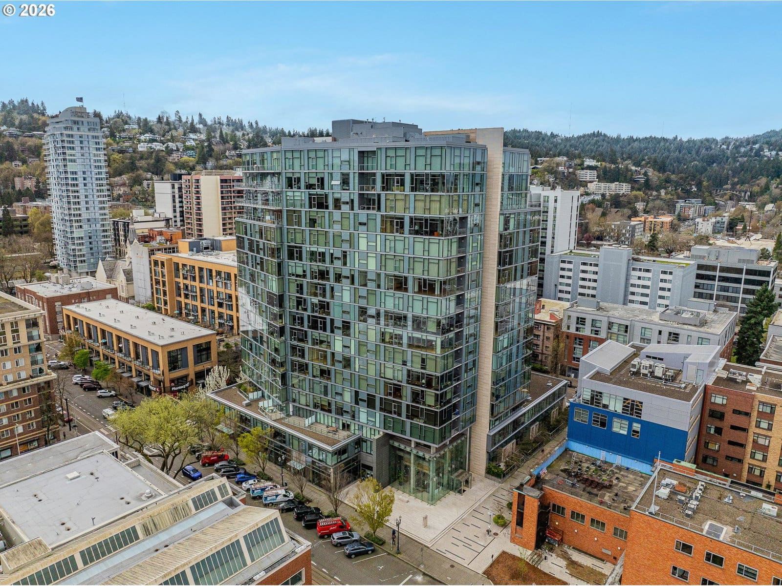 Stunning 7th-floor northwest corner unit with dramatic floor-to-ceiling windows showcasing sweeping city and mountain views. This highly sought after floor plan rarely comes available. Unique features include a gas fireplace, 30' balcony, and 2 real bedrooms on opposite sides of the unit, offering ultimate privacy. The appliances, carpet & HVAC (including central AC) have been recently updated. 2 Deeded parking spots (tandem) right next to elevator and a large storage unit are included. Experience refined urban living in the heart of the Cultural District, complete with 24-hour concierge service. With a Walk Score of 99, world-class dining, shopping, the Art Museum, Park Blocks, streetcar, and Farmer's Market are all just outside your door. This luxury high-rise boasts a strong HOA, a well-equipped fitness room, library with fireplace, conference room, common kitchen and large outdoor terrace with BBQs, lounge furniture and a fire pit. Come experience the Eliot Tower.