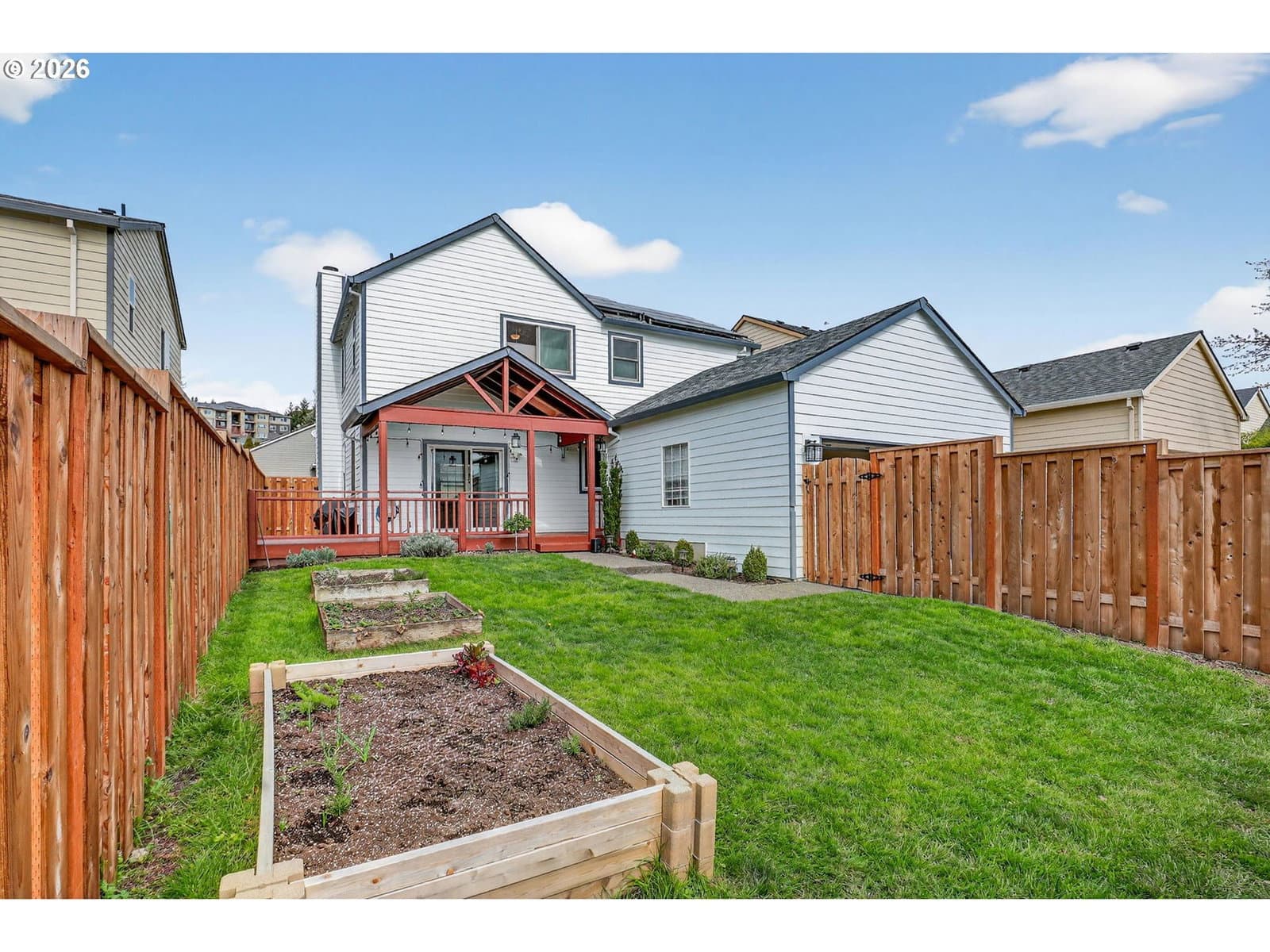 SUNNY & BRIGHT! Welcome to this 3 bed, 2.5 bath, 2 car garage home with lots of upgrades! This home features an updated kitchen with newer stainless steel-appliances, updated primary and downstairs half bathrooms, all new LVP flooring downstairs, and fresh paint throughout. The pride in ownership in this home is obvious with a newer roof, furnace, air conditioning and, water heater in 2015-2017 and new exterior paint in 2022. Future-proofed with smart-home solar technology, minimizing utility costs, and Internet powered by Ziply. Included with the sale: 2021 LG Washer & Dryer. Enjoy outdoor living in the newly fenced (2025) south-facing backyard, and all-day sunshine for the raised garden beds! Perfect for entertaining or relaxing on the covered deck. Your move-in-ready home is conveniently located near Happy Valley's hospitality hub, shopping, restaurants and food carts. Walking distance to the elementary school, library, and parks!