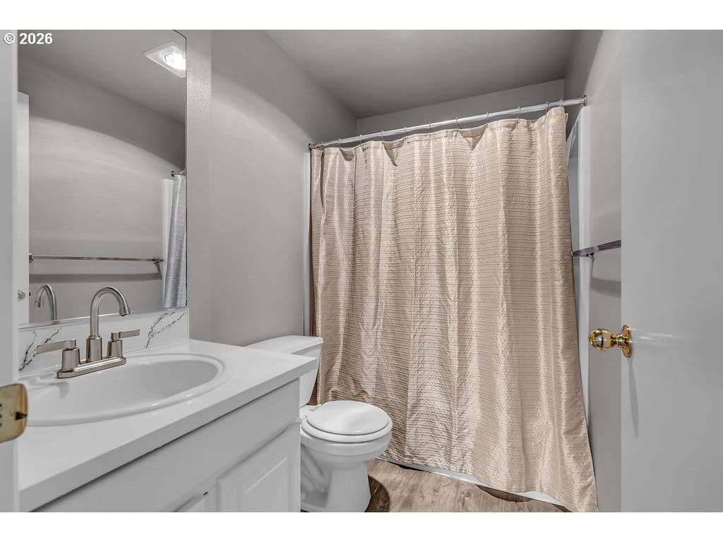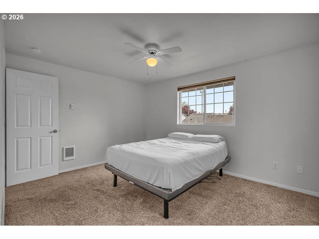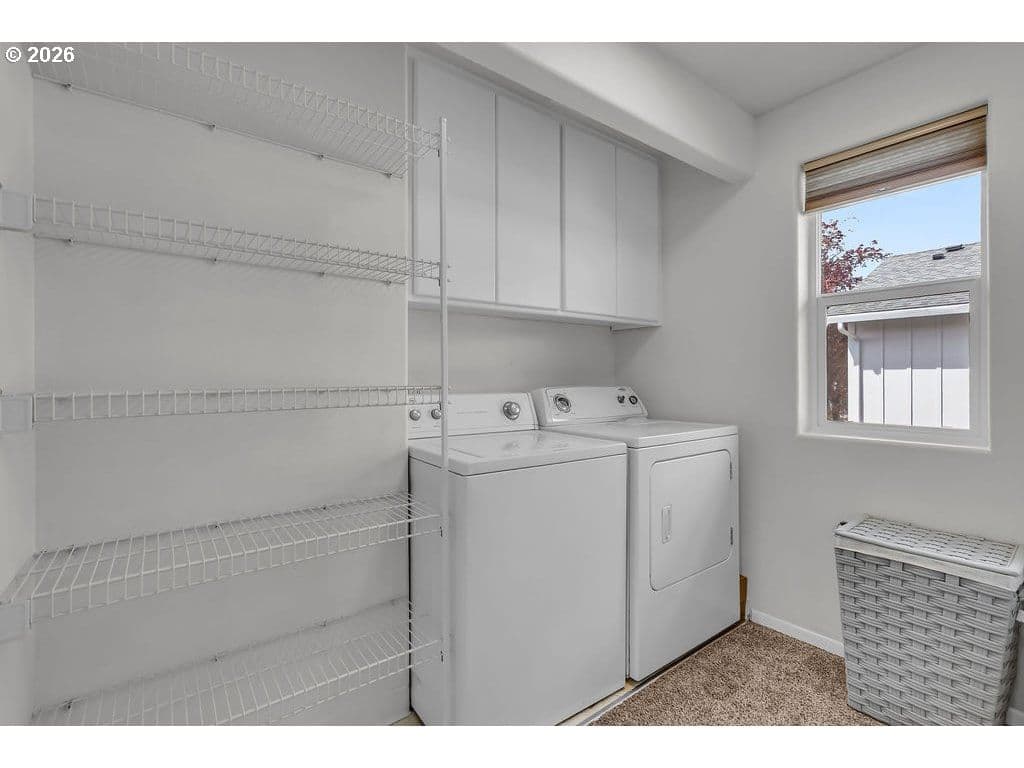 Two-story living at Moorcroft Condos. This 2-bedroom, 2.5-bath home has been thoughtfully updated, featuring new flooring and a new range, along with recent community-wide improvements including a newer roof, fiber cement siding, exterior paint, energy-efficient windows and upgraded insulation. Additional updates include newly painted cabinets (2023), adding to the home’s overall appeal. Each bedroom features its own private bathroom, offering added comfort and convenience. Situated on a desirable corner lot, the home includes a one-car garage for parking, plus a separate area with a washer and dryer that also provides extra storage space. HOA dues cover water, sewer, garbage, exterior maintenance, and landscaping—offering easy, low-maintenance living. Ideally situated in a quiet, well-maintained Hillsboro community, this home offers a peaceful setting with convenient access to Reed’s Crossing, nearby shopping, dining, and Century High School.
