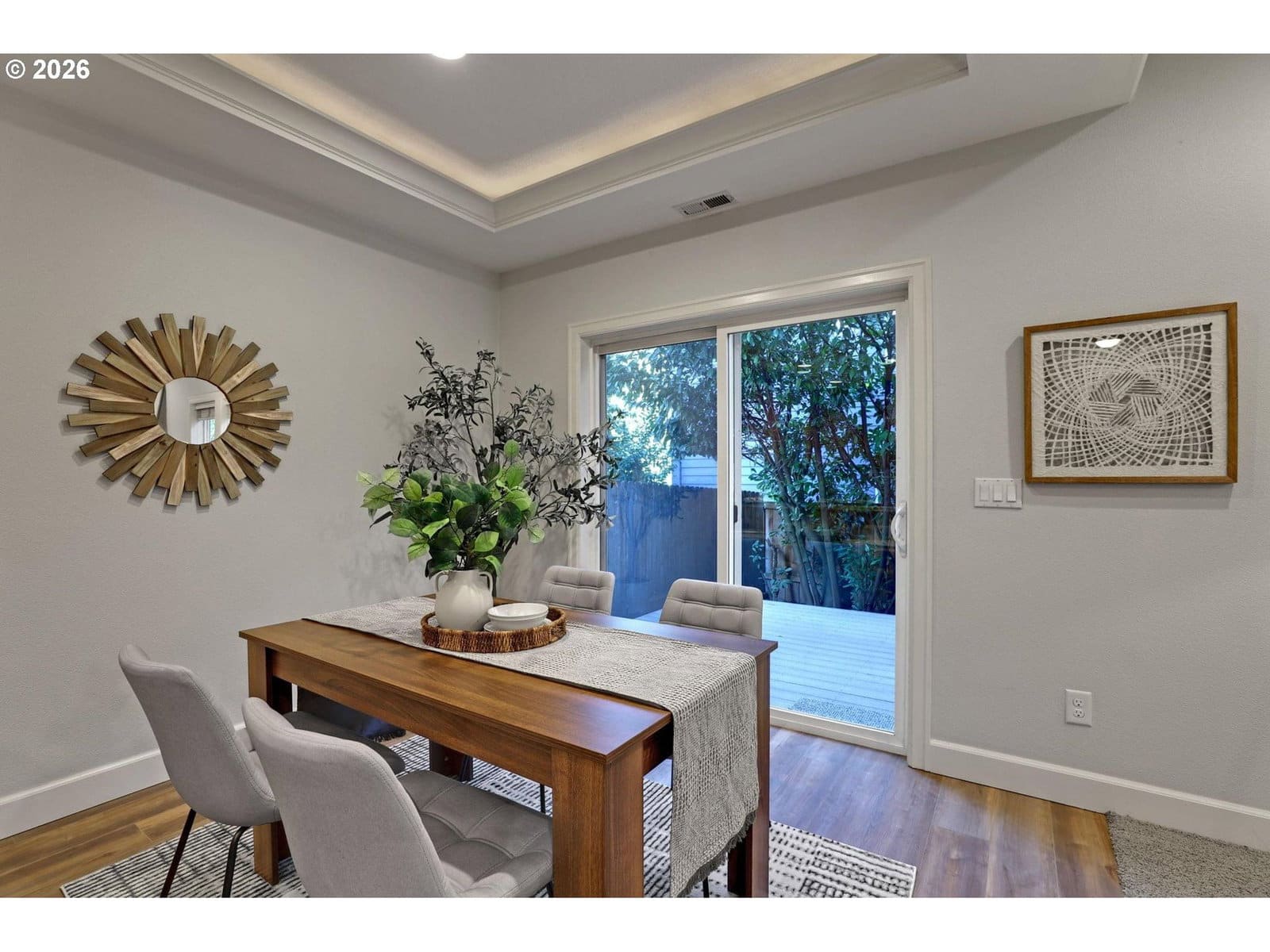 Conveniently located in Beaverton, this inviting 4-bedroom, 2.5-bath home is tucked away on a quiet cul-de-sac and offers comfort, style, and a layout that lives larger than expected. A charming entryway welcomes you into an open, functional floor plan, enhanced by 9’ ceilings on both the main and upper levels that create a bright, airy feel throughout. Cozy up in the great room with a gas fireplace, or gather in the kitchen featuring granite countertops, stainless steel appliances, LVP flooring, and a sliding door that leads outdoors. Step into a private, low-maintenance backyard with an expansive composite deck, perfect for relaxing or entertaining. The spacious primary suite includes vaulted ceilings, a double vanity, and a walk-in shower. Ideally located just minutes from Nike, Intel, Reed’s Crossing, parks and trails, MAX, shopping, and dining. No HOA. Move-in ready and designed for easy living — this home truly lives bigger than its square footage!
