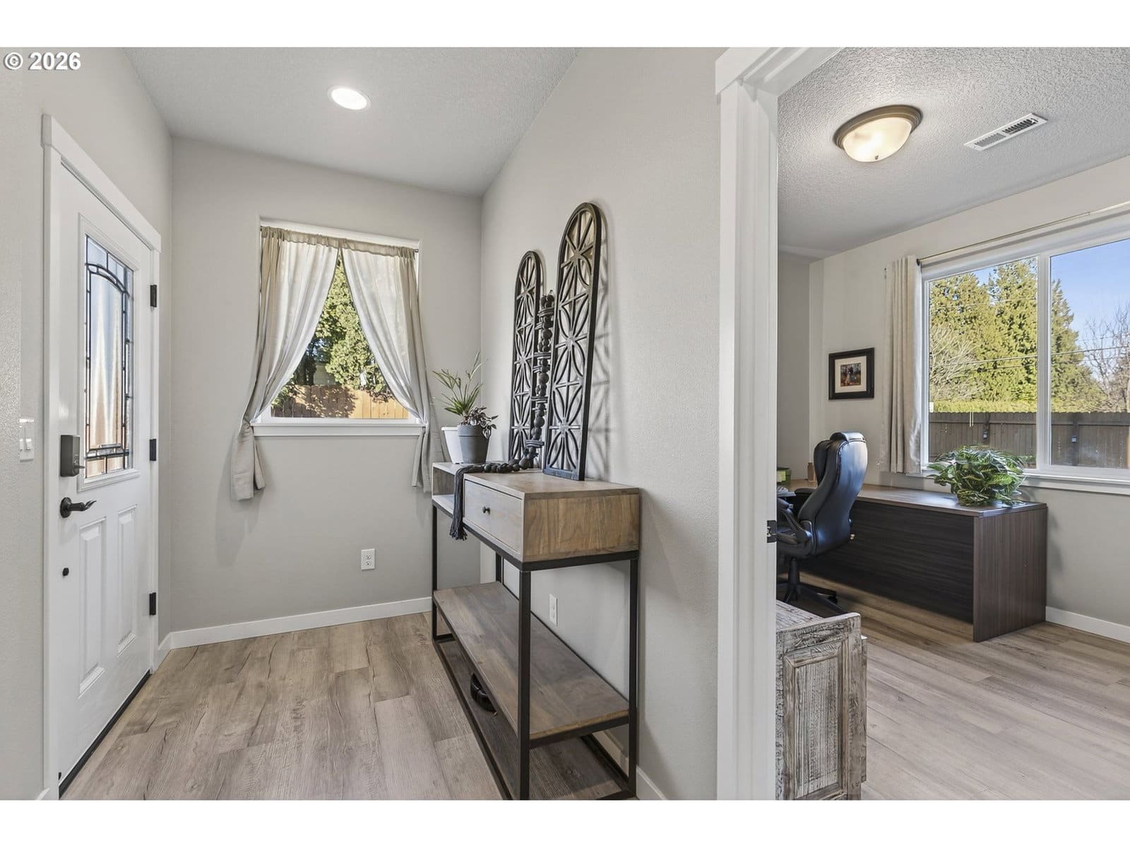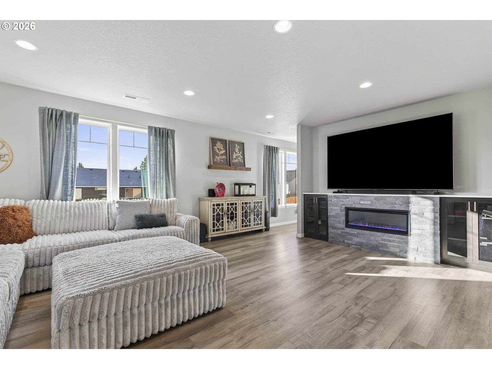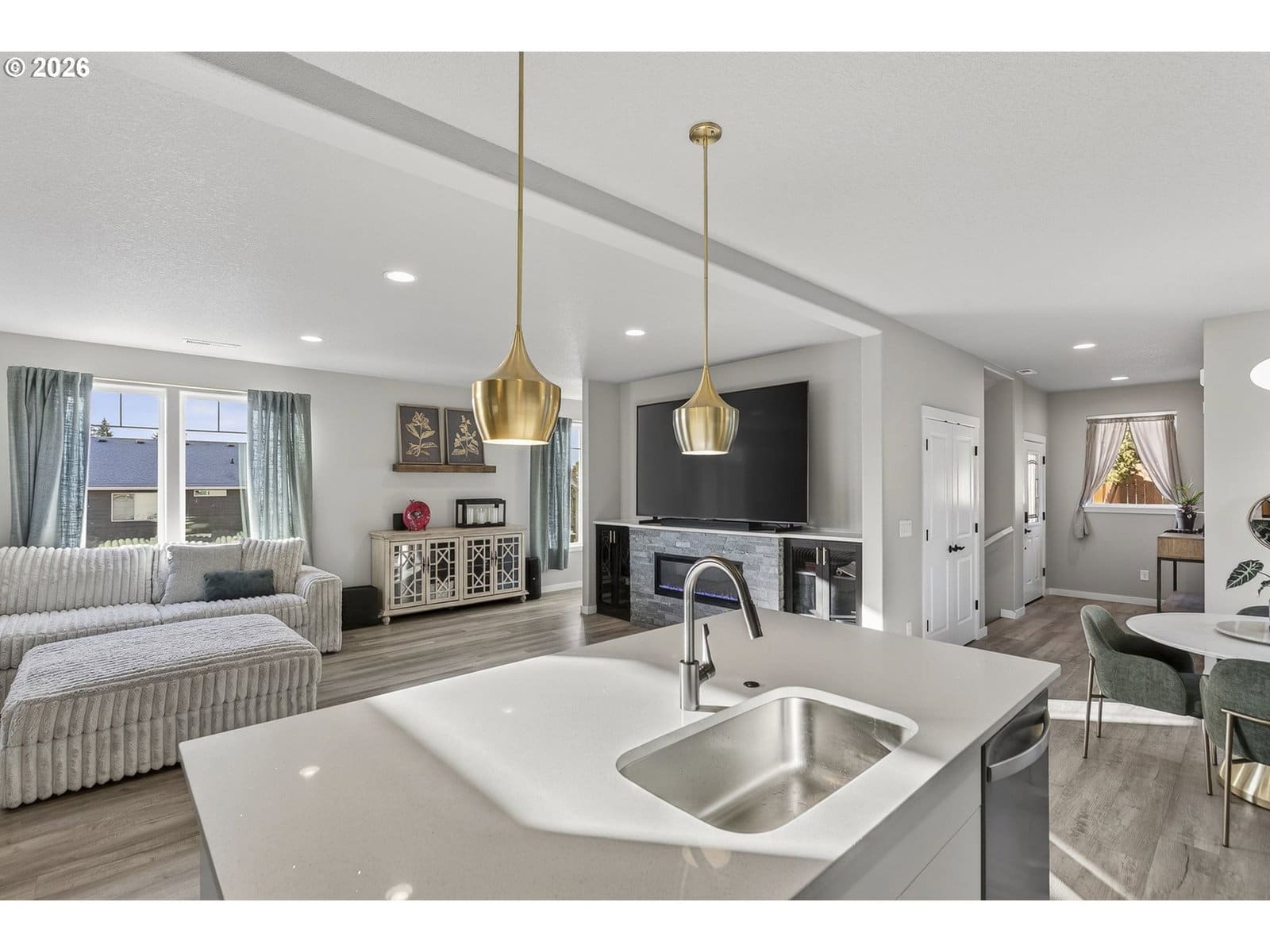 MOVE_IN READY!! Contemporary 3-bedroom, 2.5-bath home featuring an open-concept floor plan designed for modern living. The spacious great room is filled with natural light and anchored by a sleek electric fireplace. The main level also offers a dedicated office—ideal for remote work or flex space. The gourmet kitchen has stainless steel appliances, quartz countertops, tile backsplash, a large island with eating bar, and a generous pantry. The primary suite is a true retreat, complete with a walk-in closet and ensuite bath featuring a walk-in shower, dual sinks, and quartz counters.The oversized garage includes approximately 74 square feet of flexible space—perfect for a wine cellar, workout room, additional storage, or hobby area—plus an additional under-stair storage room. PLUS electric car charger that is all ready to go! Outside, enjoy a fully landscaped and fully fenced backyard with a covered patio, ideal for year-round entertaining.