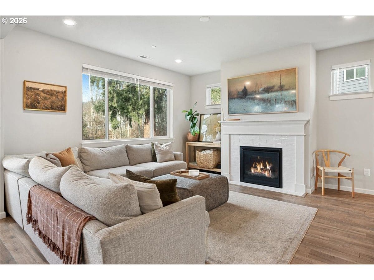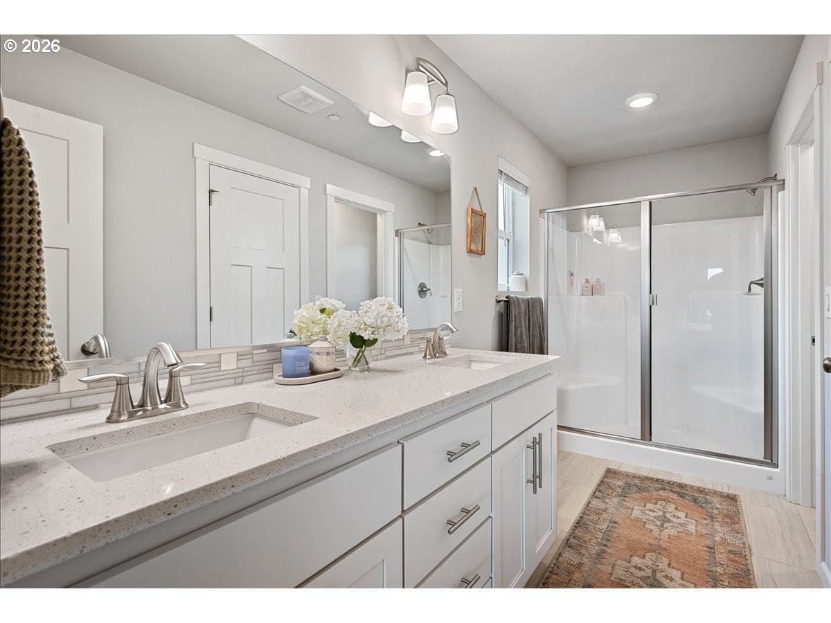 Here it is, that perfect combination you’ve been searching for! Eye catching street appeal with craftsman designs including exterior shutters, decorative pillars, grid style windows, shaker doors, gable brackets and distinct siding details. And it’s located on a premium lot in a cul-de-sac that backs up to a wetland buffer/ green space so there is a nice peaceful view to enjoy all the time! Amazing open and light great room with large dining area, ideal for comfort and gatherings. Like to cook? This kitchen is a dream, ample countertop space with a huge island perfect for food prep, serving and a perfect breakfast eating bar. There’s also a wonderful pantry and gas range too! All bedrooms are generous in size and there’s a great nook in the entry designed as a small work space/ office or can be used as a coat and shoe landing area. Primary suite also views the green space and has a large bathroom and walk in closet. Other upgrades include: stylish and practical laminate flooring through out main floor, beautiful quartz countertops in kitchen and primary bathroom, dual sinks in both upstairs baths, subway tile backsplash in kitchen, attractive tile floors in baths and laundry room, hi-efficiency gas furnace and central AC, tankless hot water heater and a gas fireplace with tile & mantle. Enjoy the privacy and easy maintenance in the fenced backyard with the patio, in-ground sprinklers, a variety of perennials and a couple of raised garden beds. HOA includes walking trails, recreational park, basketball court, outdoor pool/ hot tub and BBQ area. This home is just inside the Evergreen School District but many residents get a Camas School boundary exception, it’s located near the bus stop for both districts. Refrigerator and Ring doorbell are included!
