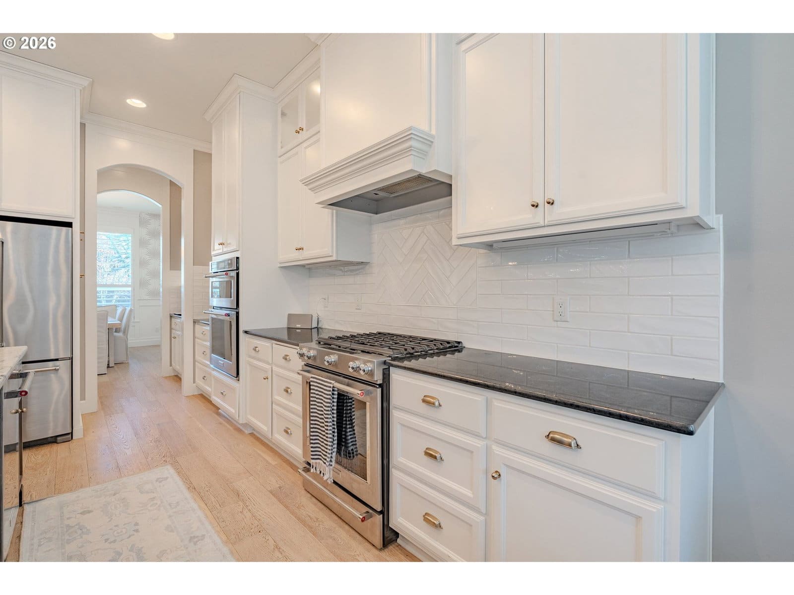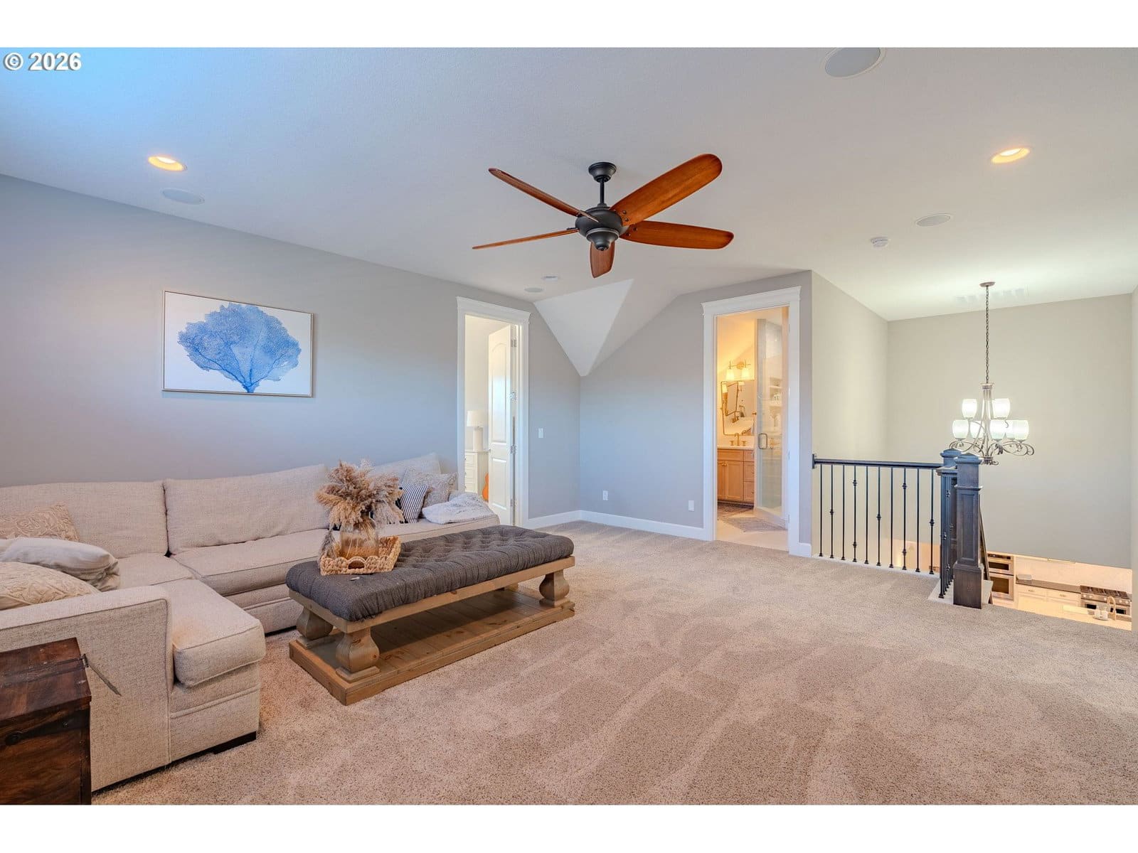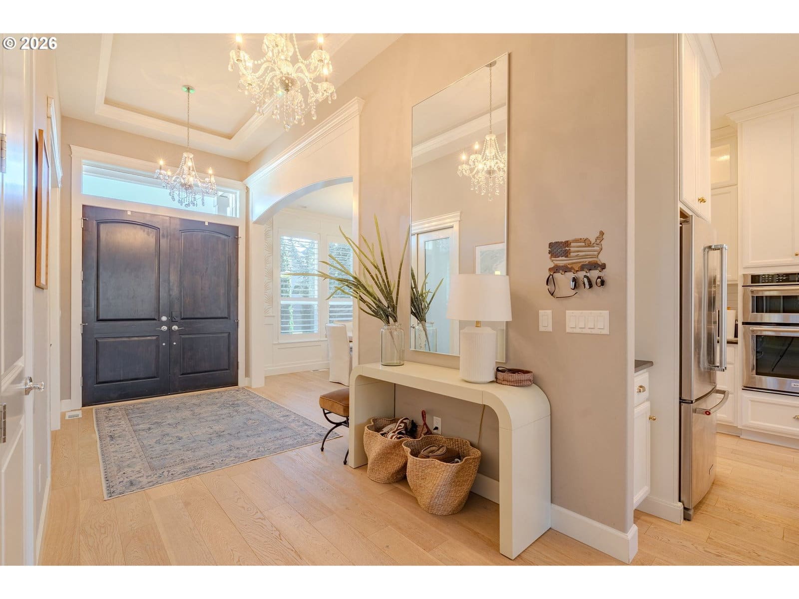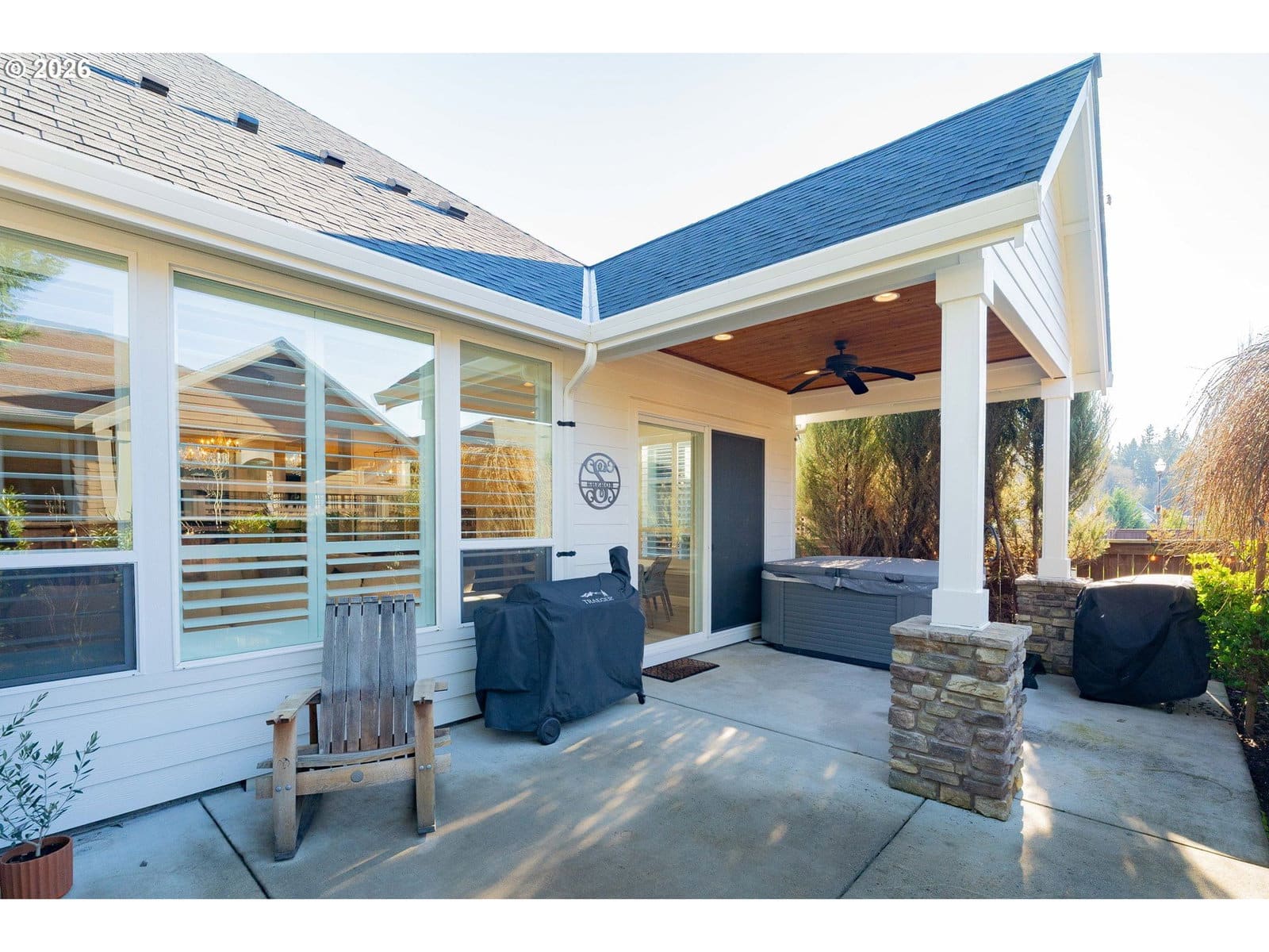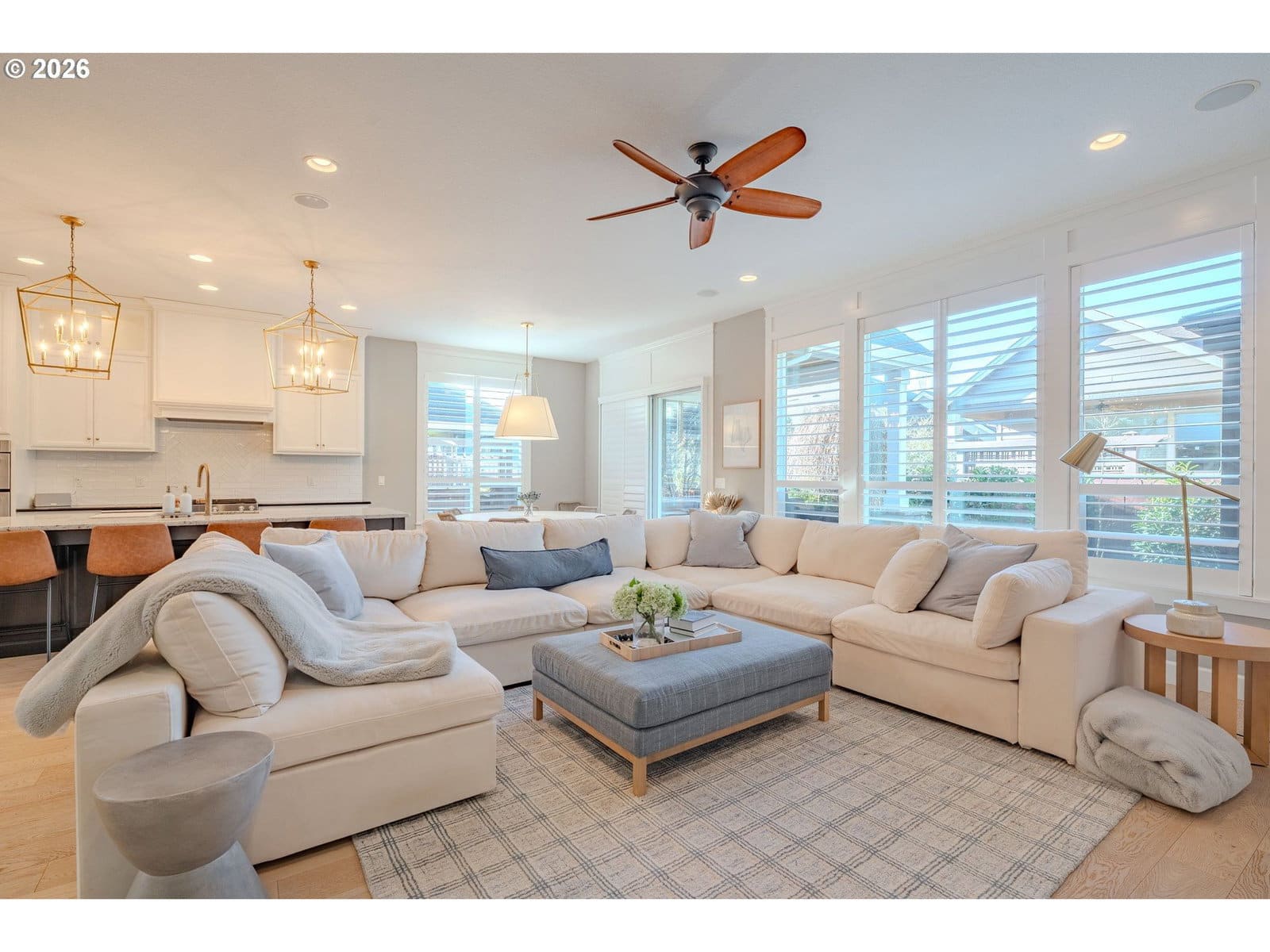 Located in the coveted Erickson Farms neighborhood, this exceptional custom home offers timeless design, quality craftsmanship, and elevated finishes throughout. From the moment you arrive, its inviting curb appeal and well-maintained grounds provide a welcoming introduction to the elegance found inside. Upon entering, the entry immediately impresses with soaring 12-foot ceilings, gorgeous wide-plank oak wood floors, and substantial millwork, establishing an immediate sense of scale and warmth. Open sight lines and abundant natural light draw you seamlessly into the main living areas, creating an open, inviting, sophisticated atmosphere. Custom finishes throughout include crown molding, extensive built-ins, custom cabinetry, plantation shutters, and designer lighting. The great room centers around a gourmet kitchen, featuring an oversized eat-island with slab granite surfaces, stainless appliances, a butler’s pantry with pass-through, and a breakfast nook, all opening to the family room with a gas fireplace accented by a beautiful marble surround and extensive built-ins. The main-level owner’s suite offers French doors, tray ceiling, walk-in closet, and lux ensuite with a clawfoot cast-iron soaking tub, dramatic marble walk-in shower framed by an arched full-height stone surround, polished stone floors, and dual vanities. A second main-level suite with full bath provides flexibility for guests or multi-generational living. Upstairs, enjoy a loft or bonus/family room, 2 spacious vaulted bedrooms, and full bathroom. Additional highlights include formal dining room, main-level office, and oversized laundry room. Outdoors, the large, covered tongue-and-groove patio with gas hookup invites effortless entertaining amid thoughtfully designed landscaping and impeccably maintained grounds. Located near Felida Park, schools, and local dining, this exceptional home offers elevated living in one of Felida’s most desirable neighborhoods.