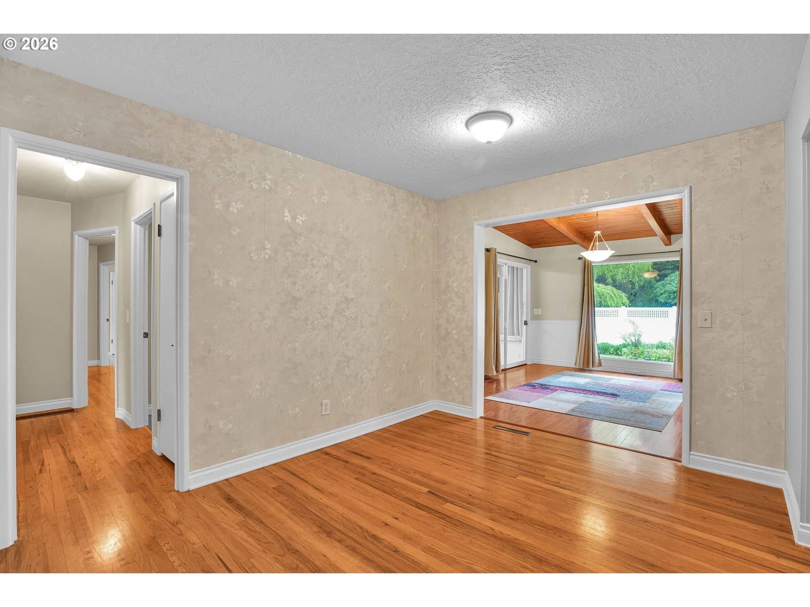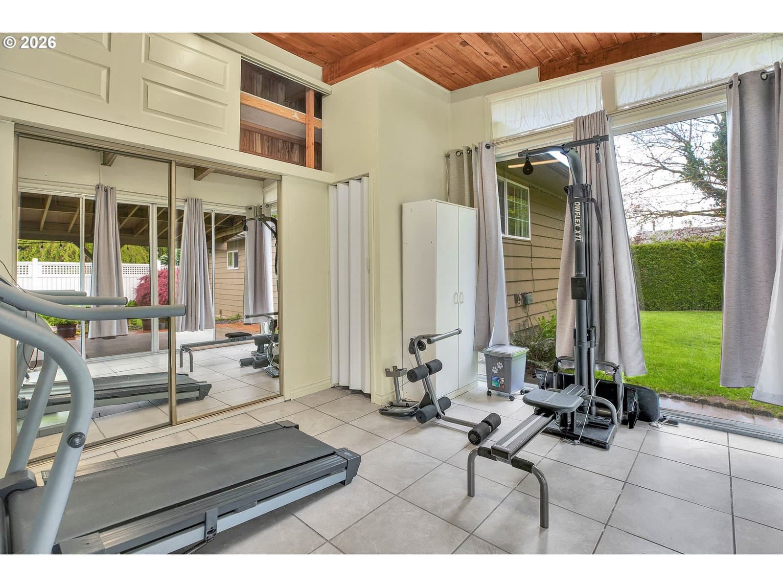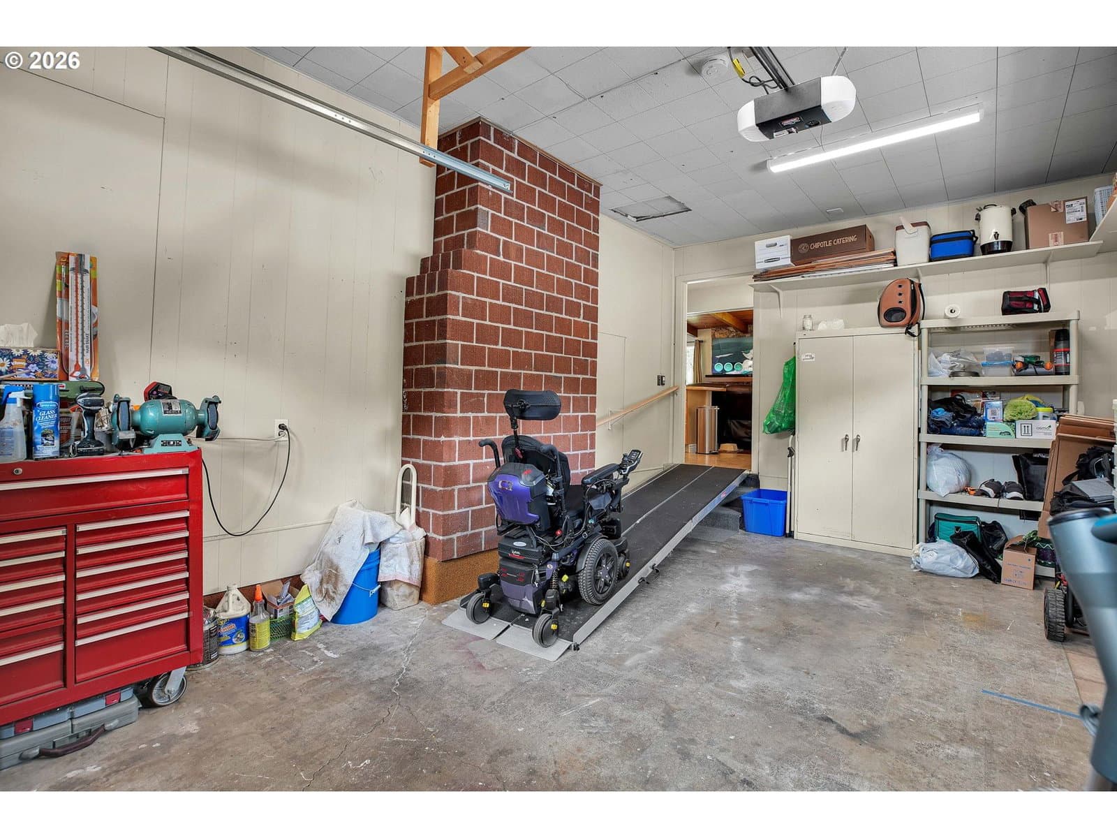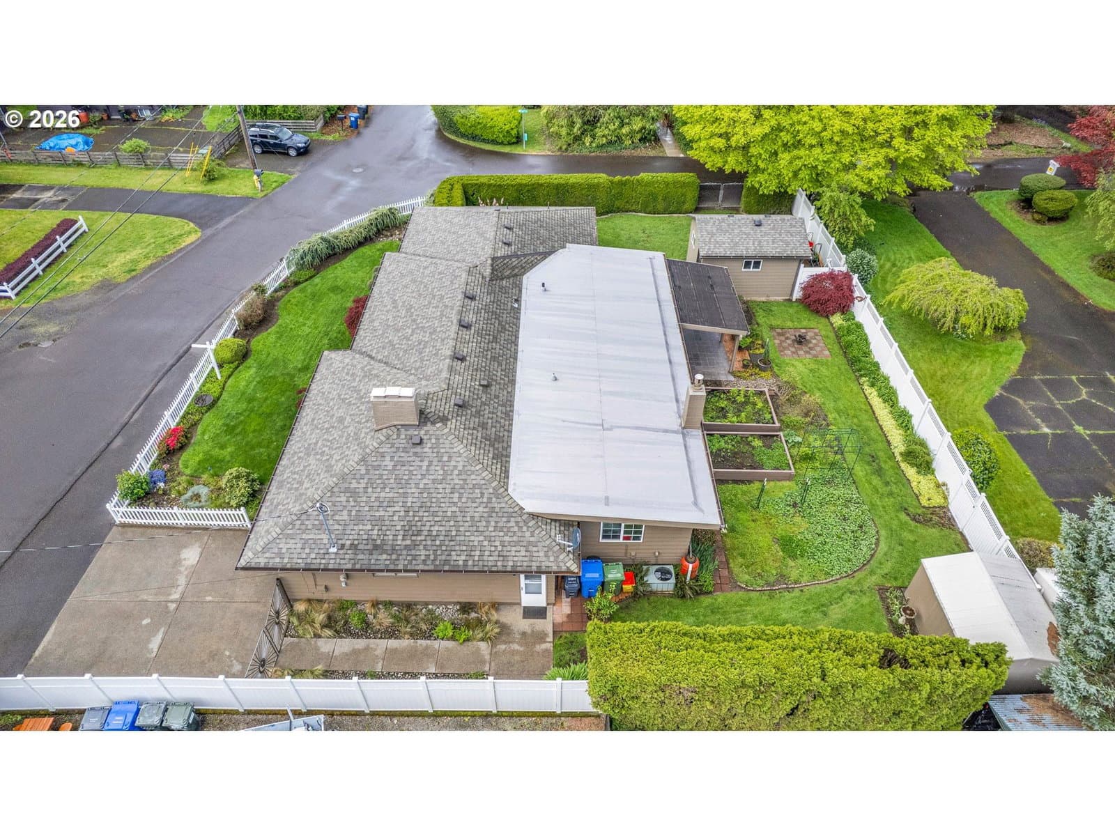 Lovely find nestled in the Darlington subdivision where Oregon's neighborly roots flourish. Over 3100 sf of mid-century construction and integrity with tasteful modernization throughout. Beamed ceiling, gorgeous wood flooring and tons of natural light will just welcome and draw you in. Main level has two family/living spaces, a dining and an exercise room with a gas and also a wood burning fireplace. Rest easy under the five year old roof. There are two water heaters (2025), furnace/AC and electrical panel replaced (2013). All main level windows/doors are protected by Seller owned ADT alarm system. And...for that rare winter storm, home has its own standby generator. Basement has been remodeled to offer an exceptionally nice 2 bedroom/ 1 bath apartment and/or multi-generational living. A large storage room is a real bonus feature. Area has a full kitchen and its own washer/dryer. Note too, the wood burning fireplace for added cozy warmth. Private entrance. Seller rented for $1650 monthly. Now...the backyard! You will find many uses for the well built 12X19 shop. It is fitted with an AC window unit, 110V and the building is alarm protected. Utility shed also has 110V. Next to the shop make use of the 6'8" X 12' RV pad with an extra 12' of toy space. The patio area is flanked by raised beds filled with potatoes, tomatoes, rhubarb, strawberries and lettuce. Enjoy the blueberries and raspberries too! Plumbed for gas BBQ set-up. City says okay to build a 500SF ADU. "Buyer must perform own due diligence." The front yard is fenced and gracefully wraps around this corner lot. It is wonderfully pleasing to the eyes with its flowering plants and shrubs enhanced with a healthy green lawn.Seller created additional off road parking allowing for up to twelve total parking spots for personal/guest use.There is true value in this gorgeous home and it is absolutely a "must visit right away" property!