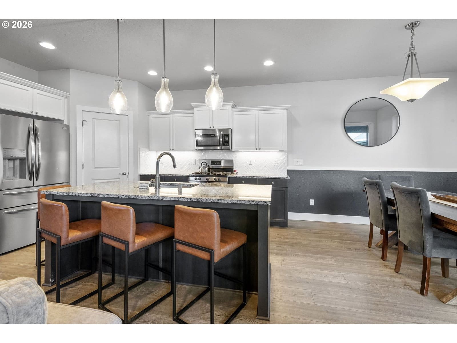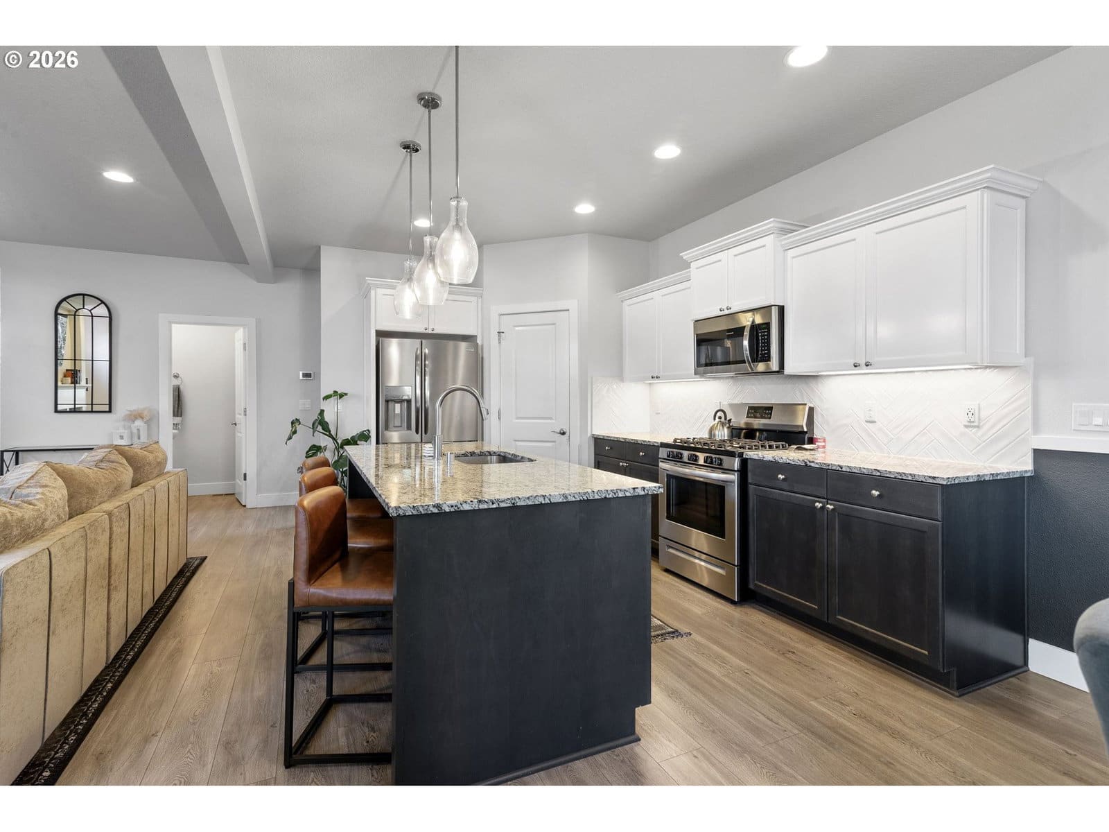 “GOOD AS NEW” HOME ON GREENSPACE. 3 bedrooms + loft, 2 1/2 bathrooms, 1831 sqft, built in 2020. Quality finishes throughout the home including 9’ ceilings & laminate flooring throughout the main floor. Kitchen has a corner pantry, gas range & large granite island w/ eating bar that opens to the dining area and great room w/ gas fireplace. Upstairs has a large loft/bonus area, laundry room & all bedrooms. Primary bedroom is good sized w/ a walk-in closet, 2 sinks & glass shower. Covered back patio overlooks the fenced yard and greenspace. Walking trails that connect to the new Ridgefield shops, restaurants & amenities are right by the home. This is a great property in the desirable Heron Woods community.