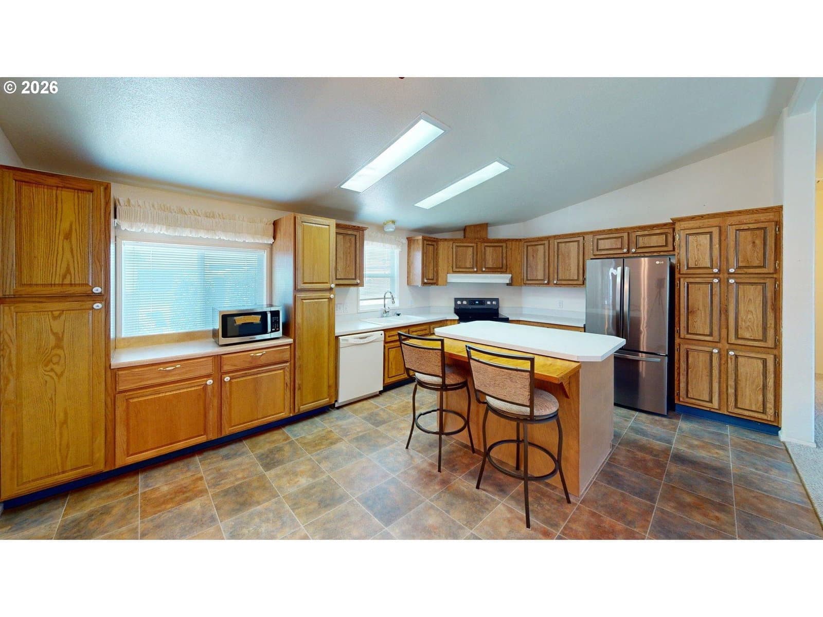 Easy Coastal Living in a Welcoming 55+ Community in BrookingsEnjoy the simplicity and comfort of single-level living in this well-maintained 3BR/2BA home located in a smaller, peaceful 55+ park. With 1,188 sq ft of thoughtfully designed space, this home offers a relaxed lifestyle just minutes from the coast, shops, and everyday conveniences.The inviting living room features carpeting, an easy care vinyl entry detail, and abundant natural light—creating a warm, comfortable space to unwind or visit with friends. The kitchen is both functional and bright, with oak cabinetry, skylight-styled panels, vinyl flooring, and a central island with breakfast bar—perfect for morning coffee or casual meals. Stainless appliances, including refrigerator, range, and dishwasher, are all included.The primary bedroom offers a quiet retreat with ceiling fan, ample closet space, and cozy carpeting. Two additional bedrooms provide flexibility for guests, hobbies, or a home office. The guest bathroom includes a tub/shower combo and extra storage, while the primary bath connects conveniently to the dedicated laundry room—complete with full-size washer/dryer and built-in cabinetry for easy organization.Designed for low-maintenance living, viny; flooring runs through the kitchen, bathrooms, and laundry areas, while a central hallway layout keeps everything easily accessible.Backyard has ample space for gardening or leave as-is with easy care landscaping and a cute firepit on the patio and a prolific lemon tree in the side yard. Space rent is $600.00 per month and covers water/sewer.Whether you're looking to downsize, simplify, or enjoy more time doing what you love, this home offers a comfortable and manageable lifestyle in a friendly community setting. Opportunities like this are limited—come see it before it’s gone!