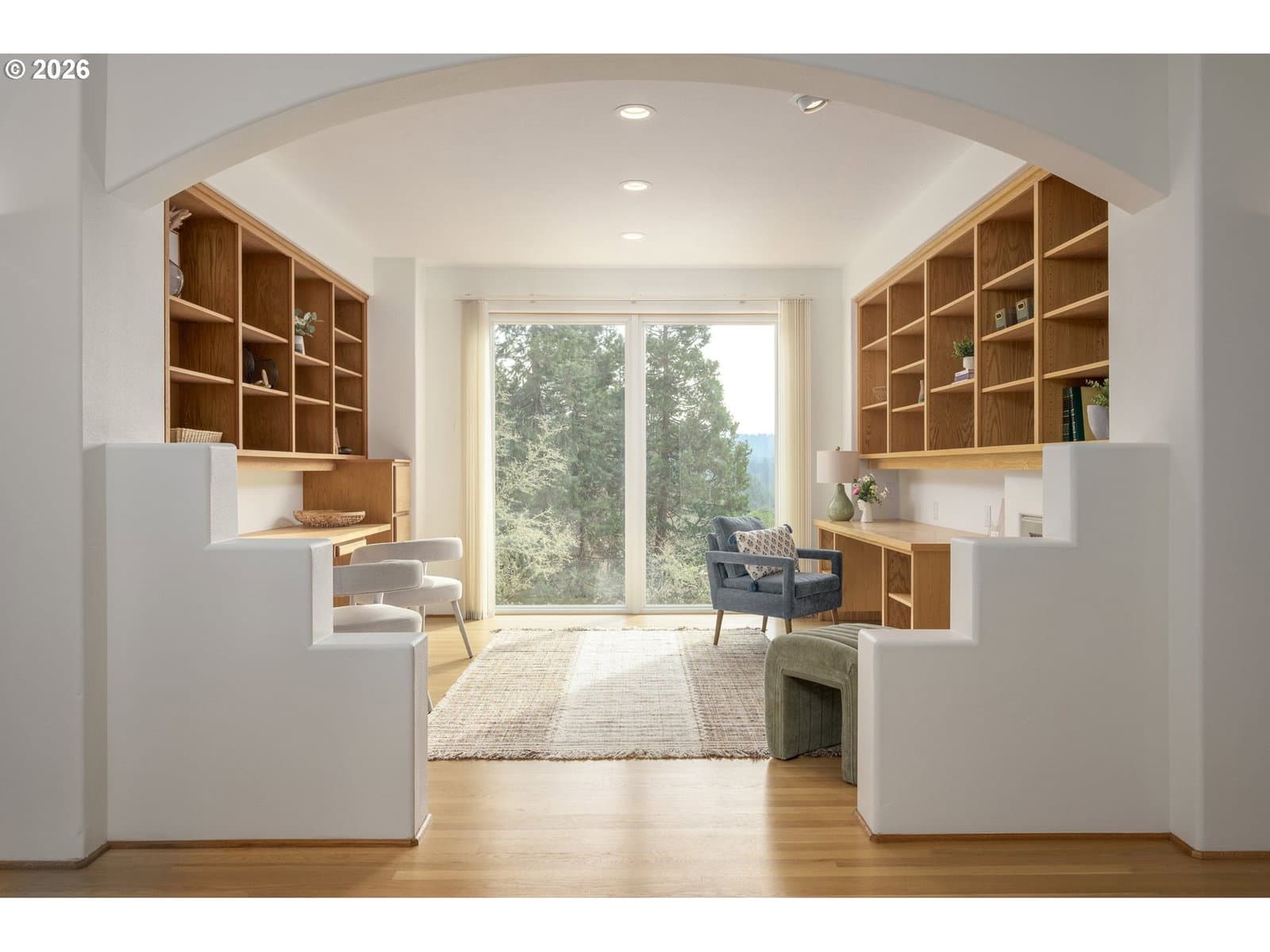 Surrounded by distinguished homes in the hills of Spring Blvd, this custom estate by Arbor South offers architectural integrity, privacy, and an abundance of natural light. The three-level floor plan is deliberate and well-balanced. Entering the main level, you're welcomed by arched doorways, abundant windows, a large updated kitchen, and living, dining and home office spaces. The upper level hosts three bedrooms, including a primary suite positioned for separation, complete with a spacious bath and walk-in closet. The lower level introduces an additional bedroom and flexible living space well suited for guests, extended family, or a secondary media or recreation area. Expansive windows throughout the home frame territorial views of Spencer Butte while elevating the natural light that highlights the gorgeous and timeless oak hardwood floors. Set on over an acre, the grounds are mature and thoughtfully landscaped, creating a sense of quiet seclusion without sacrificing convenience. The location offers efficient access to the University of Oregon and major medical facilities, making it particularly compelling for faculty and medical professionals. Recent improvements underscore true pride of ownership. Interior walls and trim have been freshly painted. The exterior, roof ,and driveway were just professionally cleaned. The landscaping has been refreshed, HVAC was replaced in 2021, and Andersen windows were installed in 2020. The timeless kitchen remodel reflects enduring design choices: solid surface counters, generous preparation areas, and premium appliances selected for performance and longevity. Set among Eugene’s most established hillside residences, this property was designed with a clear respect for longevity and is ready to welcome new owners and a new era.