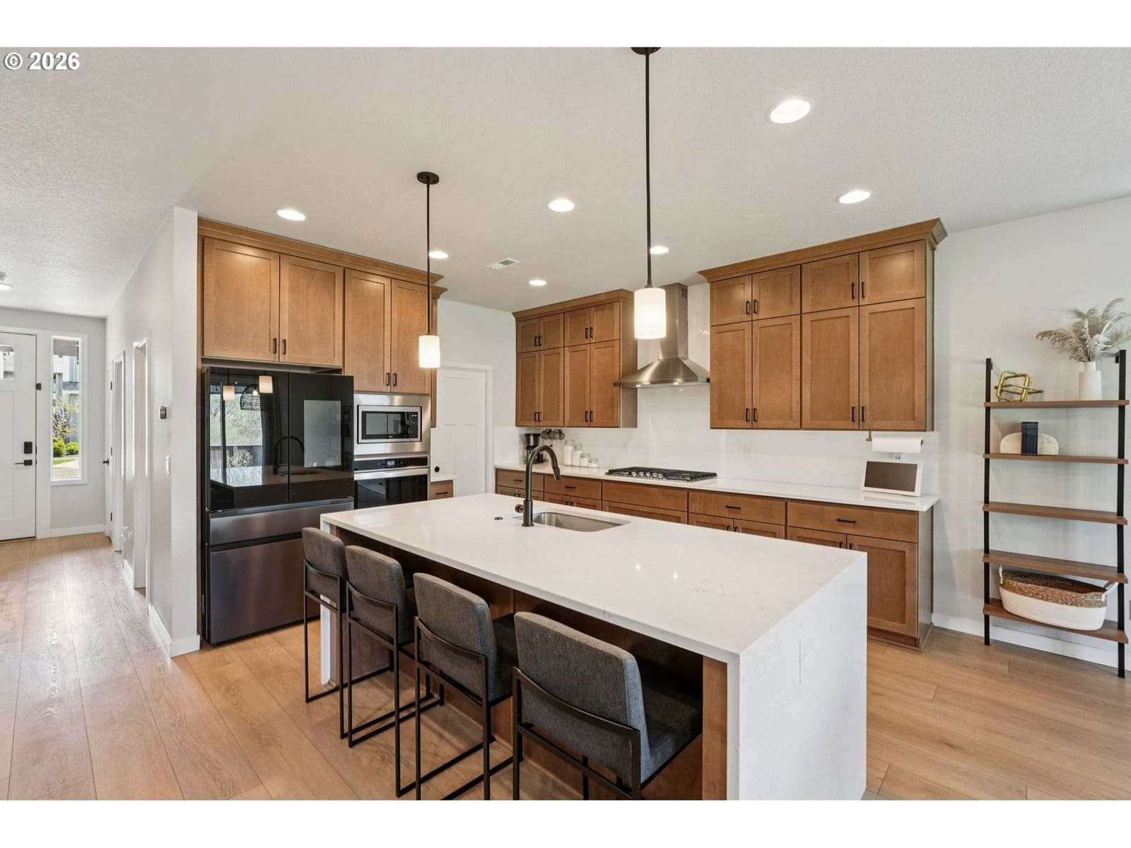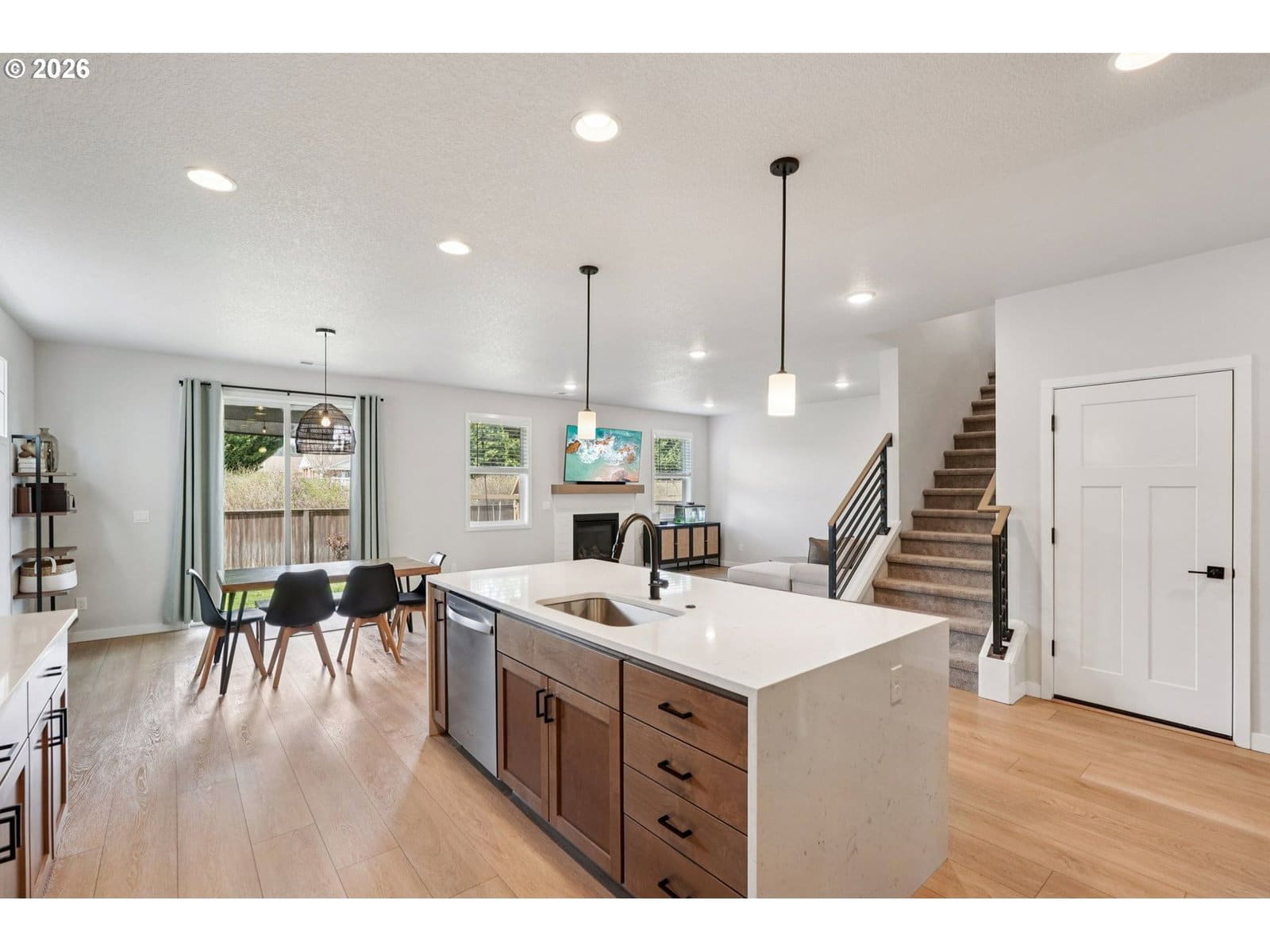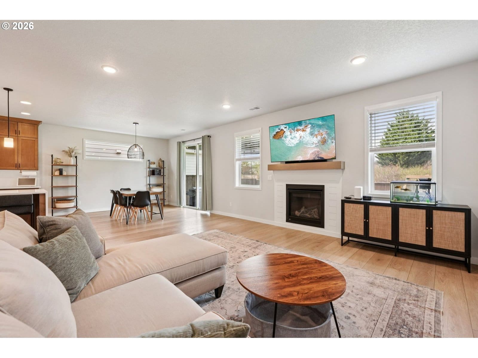 Backing to greenspace with spacious level yard! This light and bright, well maintained 2-story home is perfectly positioned with serene green space behind, offering rare privacy and no backyard neighbors! This inviting residence blends comfort, efficiency, and modern style in a highly desirable setting.Step inside to discover high ceilings, abundant natural light, and a functional open-concept layout ideal for both everyday living and entertaining. The kitchen is a standout, featuring quartz countertops, stainless steel appliances, a pantry, and a waterfall island that anchors the space. The adjoining living area offers warmth and charm with a cozy gas fireplace.The main level includes a convenient bedroom and full bath—perfect for guests or flexible living needs. Upstairs, you’ll find additional bedrooms, a versatile bonus room, and a well-appointed primary suite with a walk-in shower! The walk-in closet has customized closet! Enjoy outdoor living in the fully fenced backyard complete with a large covered patio, and peaceful natural backdrop. Additional highlights include Energy Star qualified systems and appliances, tankless water heater, fiber optic internet, and a 240V outlet in the garage for EV charging.Located near parks, schools, and everyday amenities, this home offers the perfect balance of comfort, efficiency, and privacy.*** Seller credit at closing. ***Mortgage savings may be available for buyers of this listing.