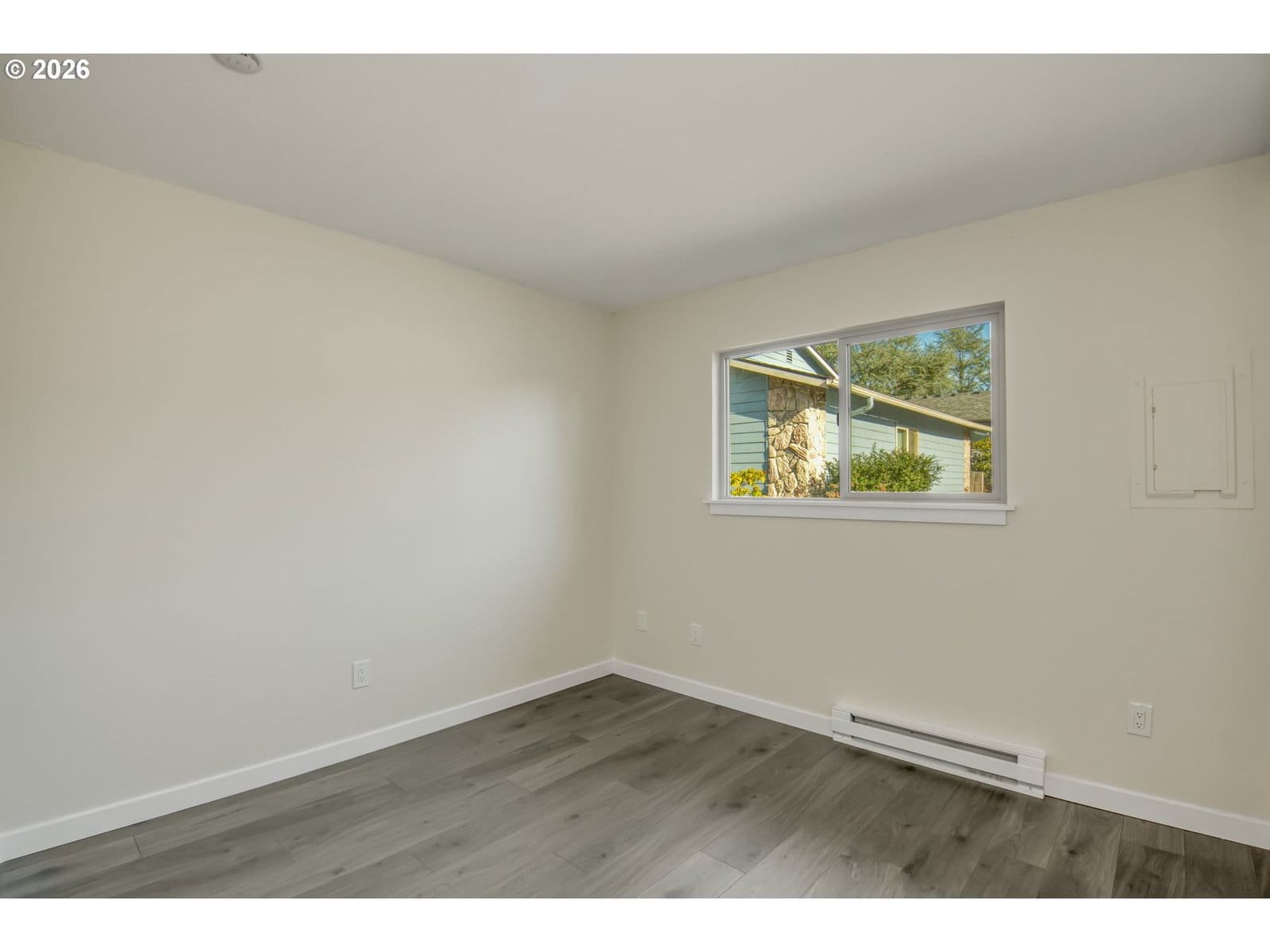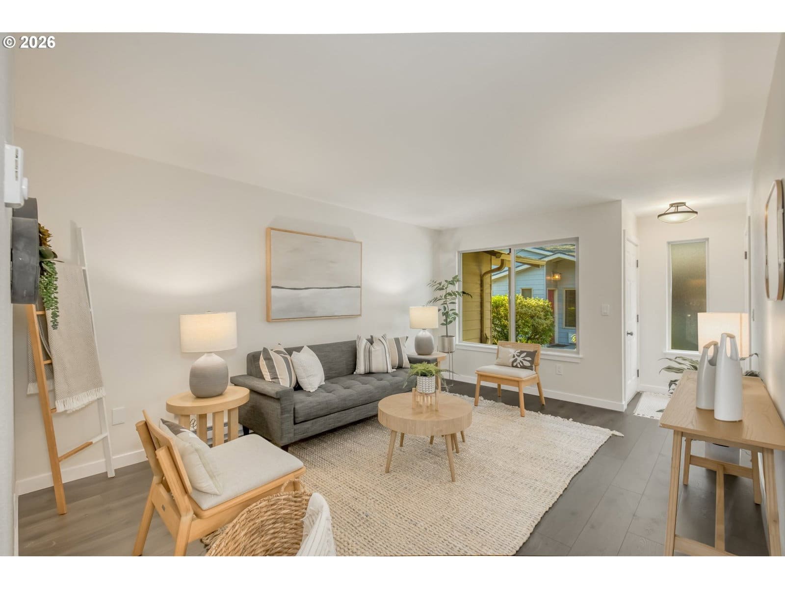 Welcome to effortless single-level living at the established Windgate Condominiums, located just moments from the heart of Multnomah Village. This beautifully renovated ground-level unit offers 800 sqft of completely stair-free accessibility, making it an ideal retreat for those prioritizing comfort and ease of access. The interior has been thoughtfully updated to create a warm, traditional feel, highlighted by a cozy kitchen featuring classic shaker cabinets, butcher block countertops, and new appliances. Fresh paint, new trim, updated baseboard heating, new bathroom finishes, and consistent luxury flooring flow throughout, offering a true turnkey experience. Outside, enjoy a serene setting across from the community pool, or take a peaceful stroll over the footbridge to enjoy the nearby creek. The property includes a highly desirable 1-car detached garage for your exclusive use. With private side streets for walking and the shops and dining of the Village nearby, this home offers the perfect blend of quiet privacy and convenience.