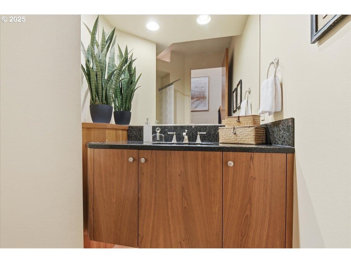 This gorgeous custom home blends exceptional craftsmanship & functional luxury with a setting that’s sure to impress, making it a genuine private retreat, inside & out! Exceptional care has been given to the well-refined design showcasing high-end finishes, & exquisite customizations. High ceilings, abundant built-ins & well-thought-out lighting make this home a timeless design! The chef's dream kitchen features an expansive granite island with eat bar, custom cabinetry, premium stainless-steel appliances, walk-in pantry & an abundant number of built-in features. With large windows, the vast living room is light & bright, offering plenty of room to entertain with an inviting, double-sided fireplace you can enjoy from multiple rooms while being open to the kitchen & dining areas. The main level primary suite boasts a romantic double-sided fireplace, a beautiful walk-in shower, jetted tub, bidet toilet & dual vanity. Upstairs you’ll find a highly coveted bonus/flex room that could serve as caregiver quarters, a bonus room/ home theatre with a separate Bose surround system, wet bar, mini fridge & gorgeous cherry wood bookshelves. Two spacious bedrooms & a full bathroom are upstairs too, all separate from the primary suite located on the main. And don’t miss the enclosed office in the garage loft with upgraded electrical-it’s great! Outside you’ll find professionally landscaped grounds with a Brazilian Walnut deck overlooking a natural greenspace with territorial views, & a private Japanese garden. Deck railing & landscape lighting along with a retractable awning, invite you to enjoy the serenity this backyard provides. This home is nestled along the edge of a quiet custom home community on nearly half an acre lot, offering privacy, lush greenspace, plus convenient access to freeways & PDX, & Chuck’s grocery just down the road.Designed for those who appreciate distinction, craftsmanship & tranquility, the thoughtful design makes this a feel-good home, you won’t forget!