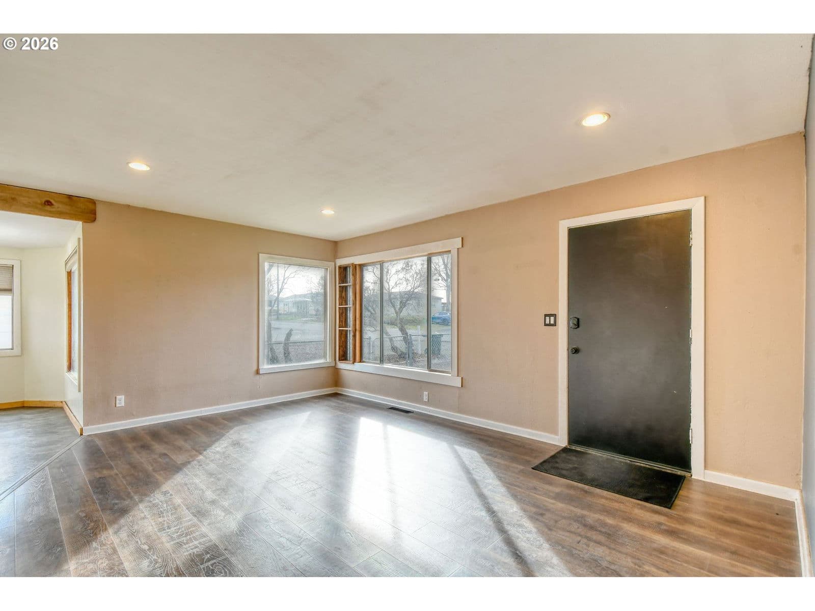 Large corner lot in Pilot Rock with updated home. Located on .18-acre lot. This 952sf. modern farmhouse style home is the perfect blend of rustic and chic with natural wood and western flare. Bright kitchen with hickory cabinets, tin back splash, built-in microwave, dishwasher and gas range. Large bedrooms and updated bathroom. Easy access to additional space in the attic. Economical gas furnace and gas hot water heater. The basement bonus room with exterior entrance adds additional 250sf. Step outside to your private, fenced backyard oasis. Enjoy year-round grilling on your covered patio with a convenient, plumbed-in gas line. Cozy fire pit and easy to maintain landscaping with underground sprinkles, raised garden beds and a potting bench. Beautiful vinyl fence with double gate access to the backyard. Expansive parking for all your vehicles and toys. Need a shop/garage? Plenty of room to build one. Not in the flood plain. This perfectly located home can be yours today.