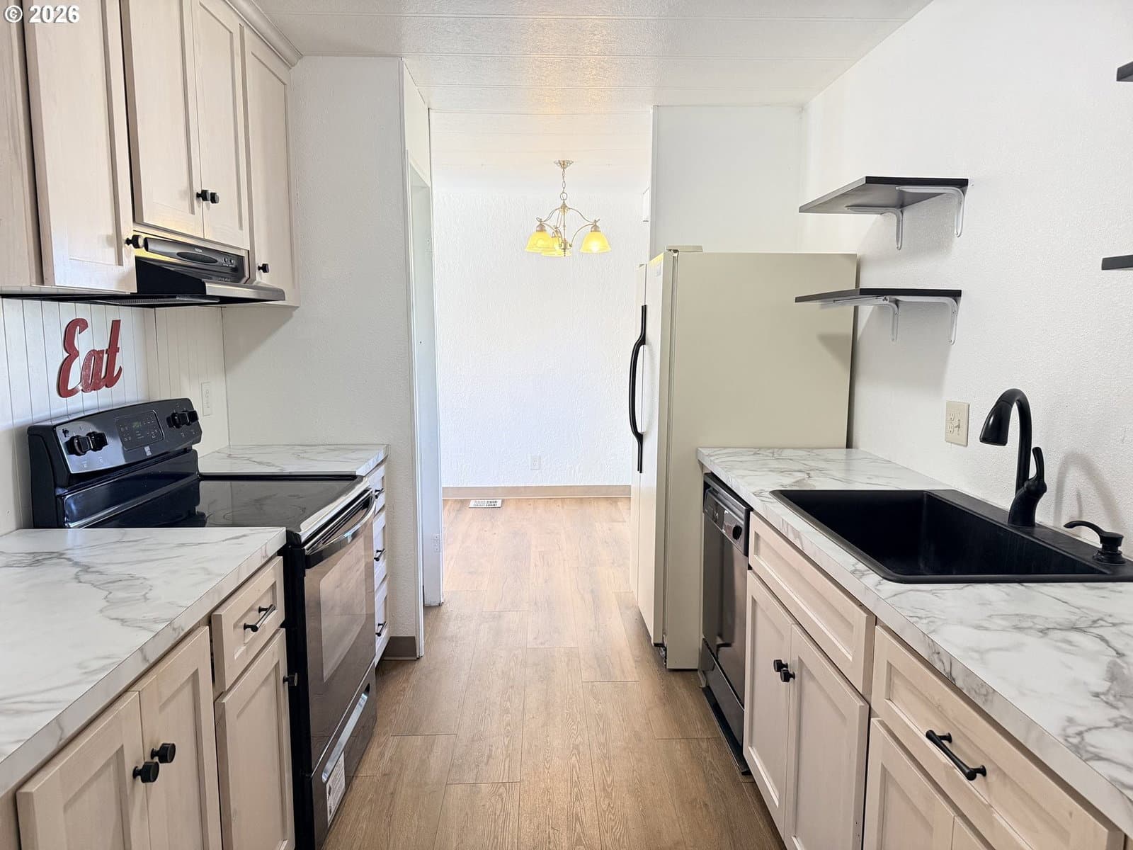 Washer, Dryer, Dishwasher, Free-Standing Range, Free-Standing Refrigerator