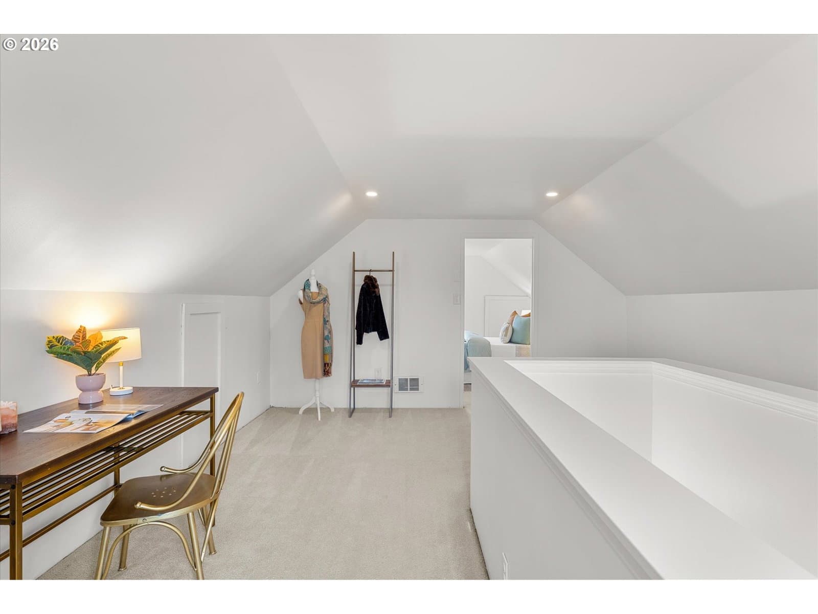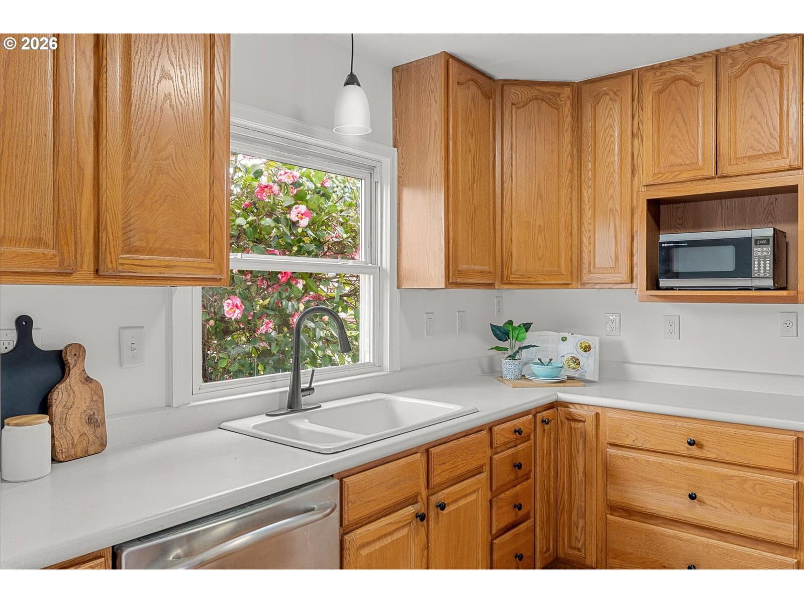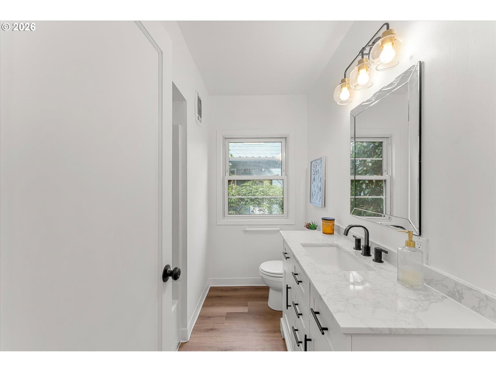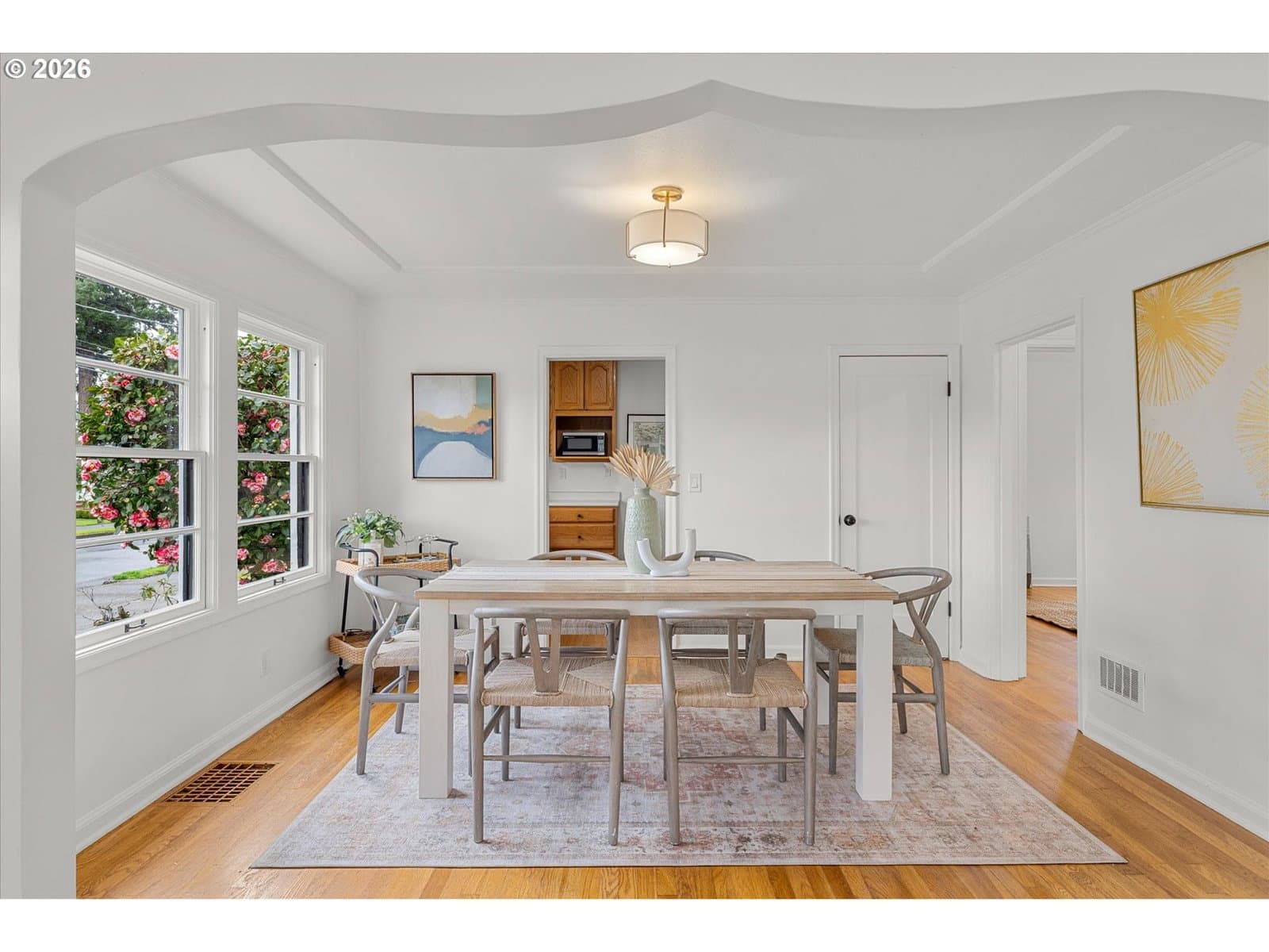 Open Sat 1-3 pm PM Beautifully updated bungalow in the heart of Rose City Park, perfectly situated near Portland’s favorite coffee shops, food carts, golf course, sports bars, and more. This 2,280 sq ft home sits on a quiet corner lot and features an expansive open-concept living and dining area filled with natural light, highlighted by gleaming hardwoods, period millwork, and a cozy gas fireplace. A central hallway connects two main-level bedrooms and a full bath, with stairways leading to both the upper and lower levels. The spacious upstairs primary suite offers a serene retreat with room for an office or nursery. The finished lower level includes a large family room, bedroom, full bathroom, and separate entrance—ideal for multi-generational living or rental potential (buyer to do due diligence). Exterior features include front, back, and side yards, a long driveway, RV parking, and an attached garage with convenient home access and EV-charging potential. Recent updates include a new roof (2025), interior paint (2026), bathroom remodel (2026), new lighting (2026), and a radon mitigation system. Close to public transit, freeways, the Hollywood District, Normandale Park, and neighborhood amenities, this home offers the perfect blend of character, comfort, and convenience.