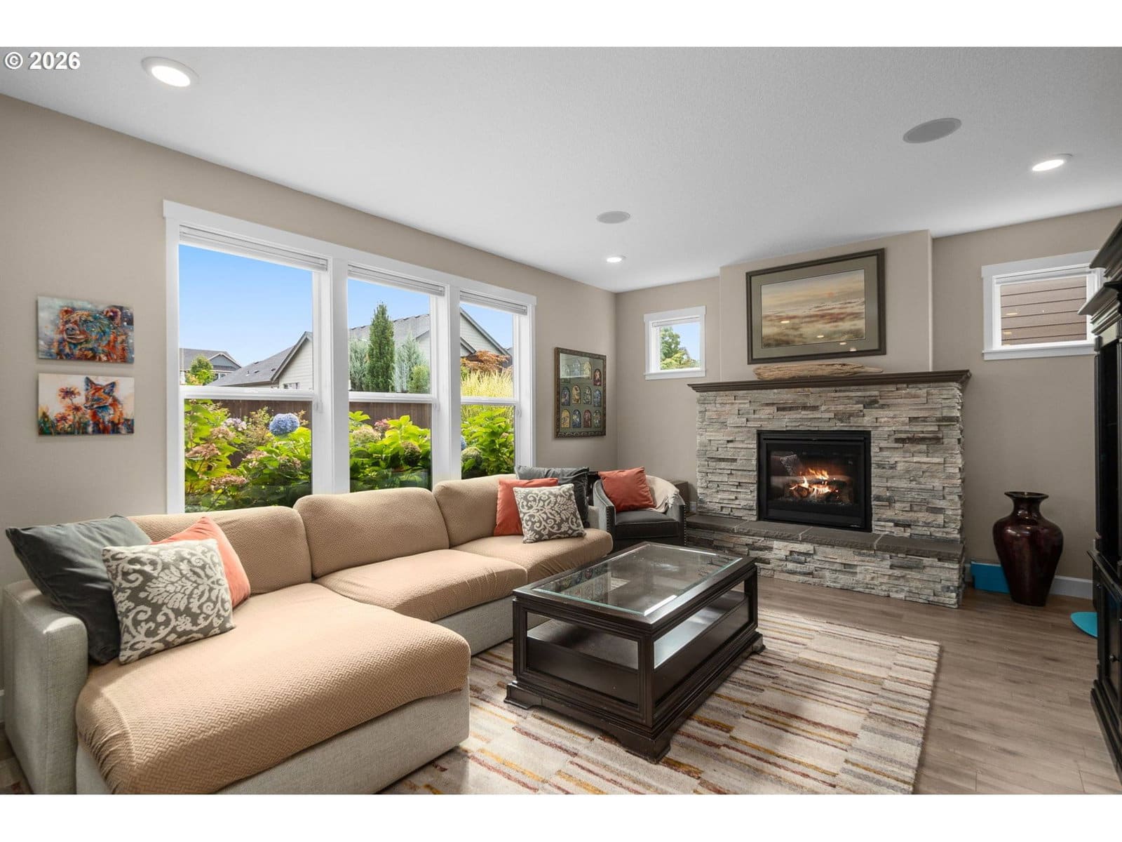 This beautifully maintained 3,300+ sq ft home in Philbrook Farms neighborhood offers exceptional indoor-outdoor living & feels like new throughout. Built in 2017, the spacious floor plan features four bedrooms plus huge bonus room, den on main and durable laminate flooring throughout the home. The gourmet kitchen is a true highlight, featuring quartz countertops, stainless steel appliances, double ovens, huge farmhouse style sink and a whole-home water softener system perfectly designed for both everyday living and entertaining. The open great room layout flows effortlessly into the main living and dining spaces. The fully fenced backyard has been thoughtfully upgraded with over $50K in improvements, creating a private outdoor retreat. Enjoy year-round entertaining on the covered patio complete with a built-in exterior BBQ, hot tub, firepit, garden boxes, and a full exterior sprinkler system. Inside and out, this home offers comfort and convenience. The HOA maintains the front lawn, while sprinkler coverage extends to both the front and backyard. A rare opportunity to own a move-in-ready home with high-end finishes, exceptional outdoor amenities, and a like-new feel. Contact Brian Klaben. Owners can opt out of lawn mowing, but does not change HOA dues. $250 fee for updating ownership records and 2 months HOA fees due from buyer at closing. HOA has 4 parks with 1 playground.