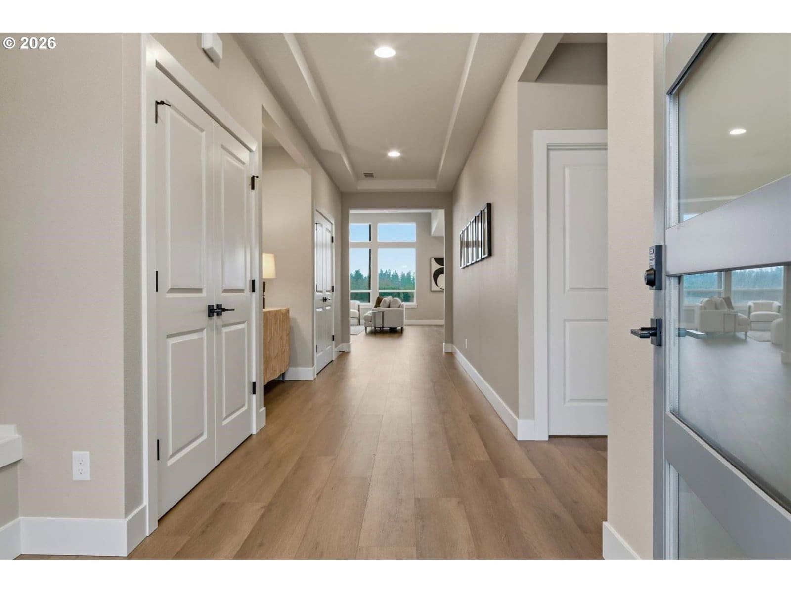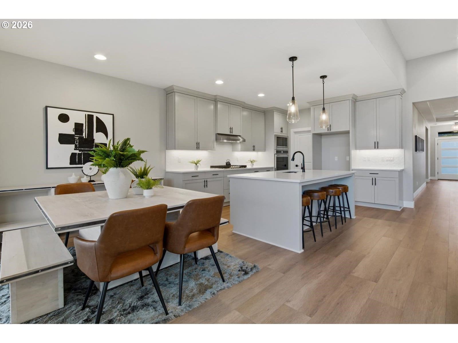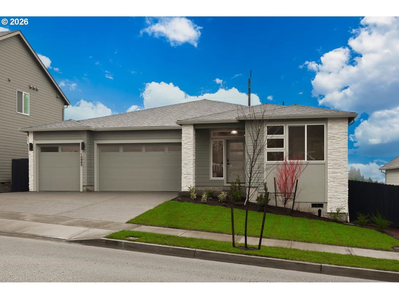 Experience refined single-level living in this beautifully completed Holly floor plan in one of Oregon City’s most desirable new communities. Offering 2,098 square feet of thoughtfully designed space, this three-bedroom, 2-bath residence with a three-car garage blends timeless architecture with modern Northwest elegance.A welcoming covered front porch sets the tone for the home’s sophisticated interior. Inside, a dramatic coffered ceiling enhances the entry hall and leads to a stunning open concept great room filled with natural light. Expansive windows and elevated architectural details create a warm yet refined gathering space designed for both entertaining and everyday living.The chef-inspired kitchen anchors the home with an oversized island, abundant cabinetry, walk-in pantry, and premium finishes. Seamlessly connected to the dining area and great room, the layout offers effortless flow and exceptional functionality.Privately positioned, the primary suite is a serene retreat featuring double-door entry, a spacious walk-in closet, and a spa-like bath with dual vanities, soaking tub, and beautifully appointed shower. Two additional bedrooms and a well-designed full bath provide flexibility for guests, family, or home office needs.A spacious laundry room and generous three-car garage add everyday convenience without compromising style.Located in scenic Oregon City near parks, trails, dining, and commuter routes, this home delivers comfort, craftsmanship, and elevated design all on one level.Luxury. Simplicity. Timeless appeal.