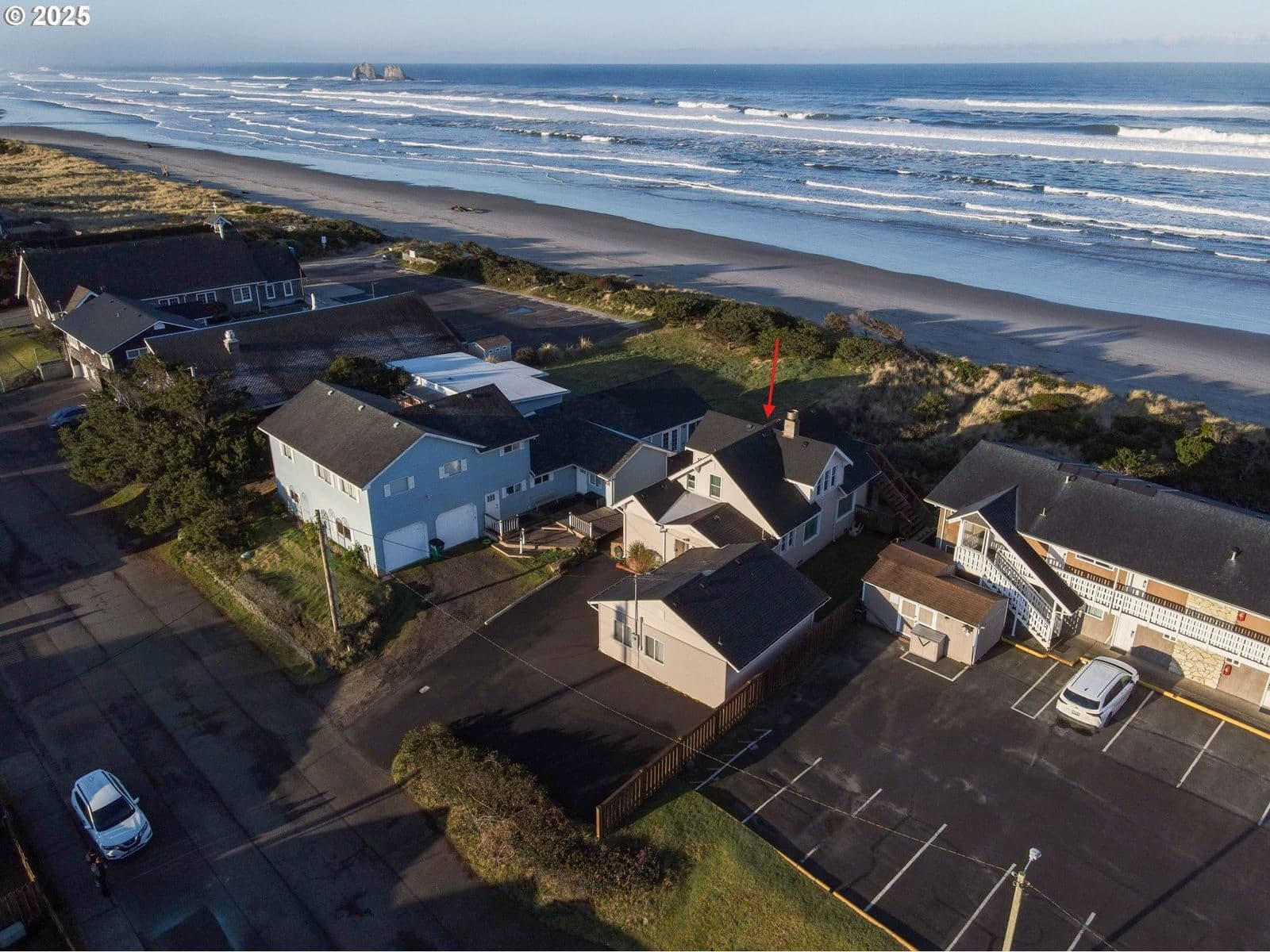 NEW PRICE! Traditional oceanfront home & attached studio apartment on a huge lot in the heart of Rockaway Beach. Cozy up to the warm stone fireplace while enjoying beautiful oceanfront sunsets! Five bedrooms provide abundant sleeping accommodations. Low maintenance laminate and vinyl flooring through out. Updated windows, electrical, water heater, and roof. Two levels of decking with sweeping oceanfront views. Fenced yard. Apartment studio has its own access and slider to the beach. Use as your private residential home (OR) Outright use permits a bed & breakfast, home business, any many other options allowed in a commercial zoning. Located in the heart of Rockaway Beach where you can enjoy a beautiful fireworks display! Only a couple of blocks away from community events, restaurants, and shopping. About 15 minutes to local golfing, bays, & rivers for world class fishing and crabbing. Easy to show. Rockaway Beach is a top choice for many who enjoy recreating on the Oregon Coast. Abundant parking. Room for boat or RV. Commercial zoning allows for height limit of 45'.