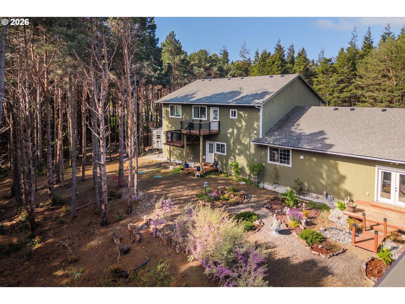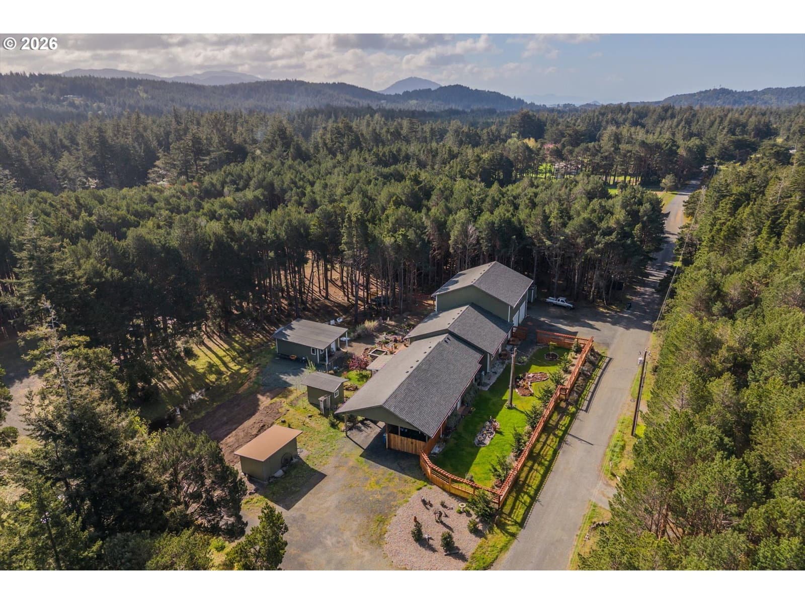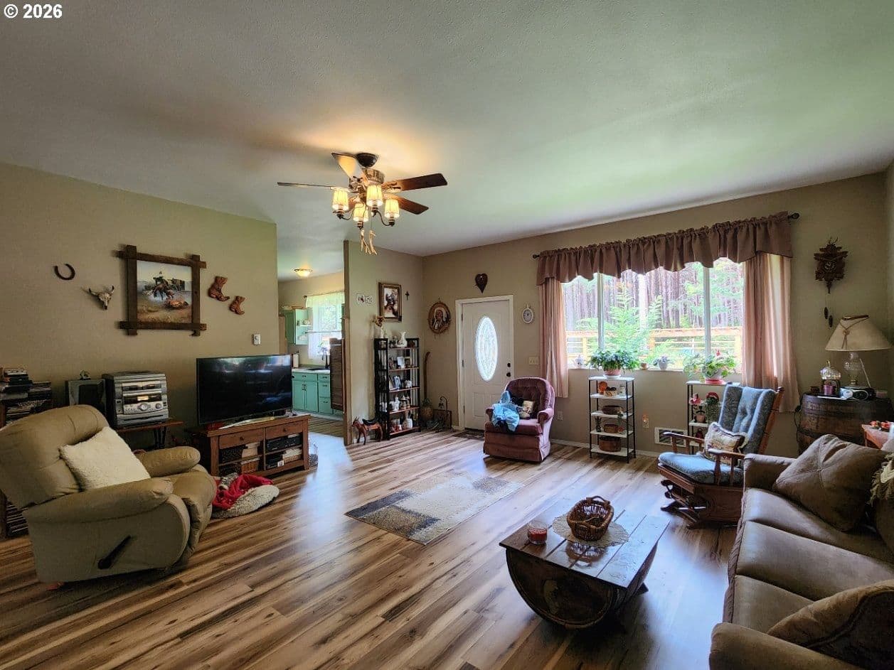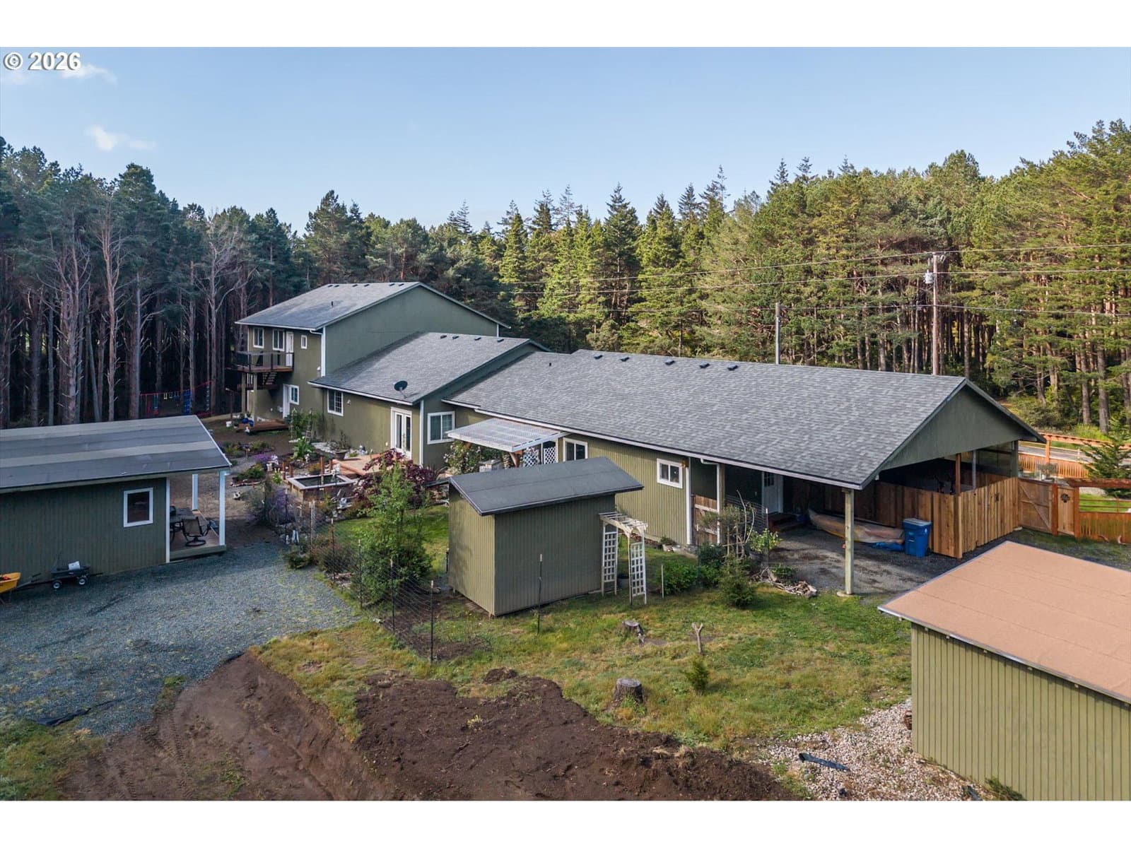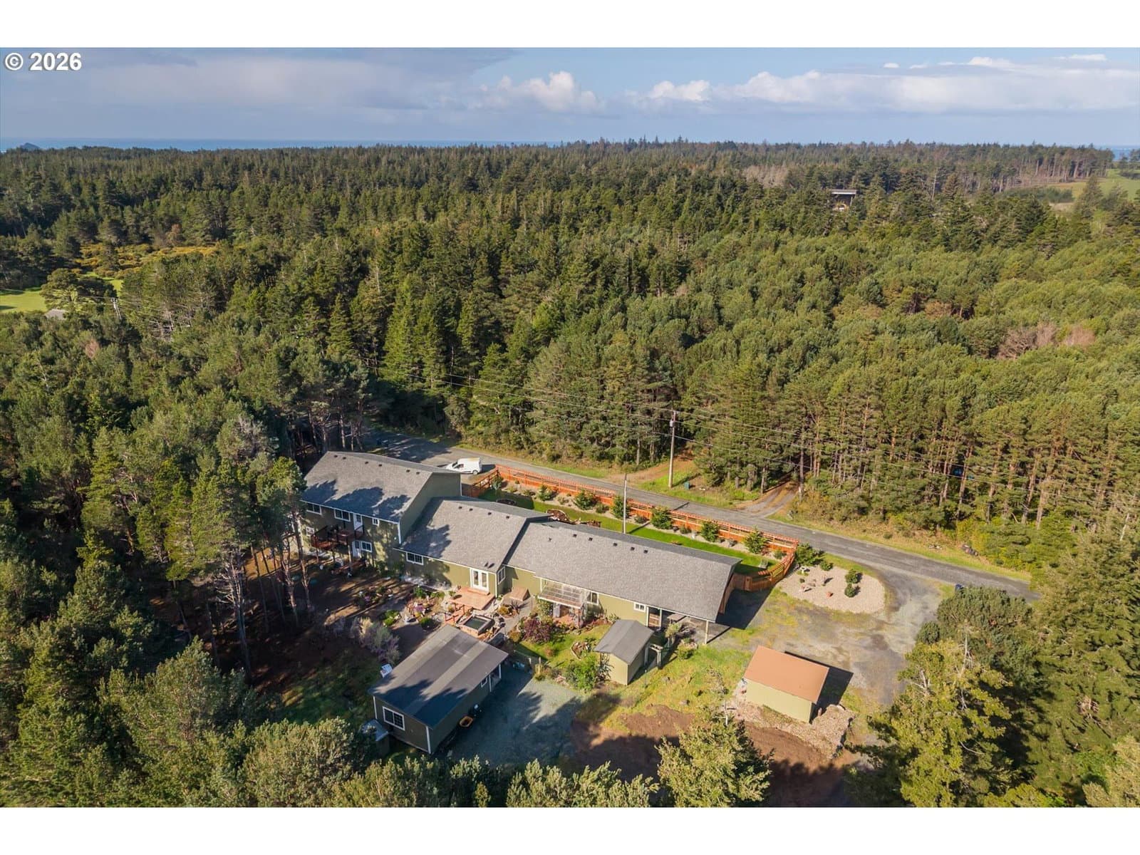 Discover the perfect blend of space, privacy, and versatility with this exceptional multi-family property set on 3.36 acres near the end of a quiet road. Ideal for multi-generational living, rental income, or guest accommodations, this property offers multiple living spaces and abundant amenities. The main home features an open-concept design with soaring ceilings, creating a bright and inviting atmosphere. The spacious primary suite includes a massive attached bathroom, walk-in closet, and French doors leading to the backyard patio ,perfect for relaxing. A separate Mother-in-law suite offers its own charm with a cozy country kitchen, large bedroom, private patio, and a bathroom complete with a walk-in shower. Attached carport and private entry. Above the oversized two-car garage, you’ll find an additional apartment with an open kitchen and living area, large pantry, dedicated office, bedroom, and a comfortable sitting room that opens onto a private deck—ideal for guests, extended family, or rental potential. Back of garage converted into bonus room for storage or additional office. The property also features multiple outbuildings and ample RV parking, providing flexibility for hobbies, storage, or outdoor equipment. Enjoy peaceful living just minutes from Ocean Beaches, Garrison Lake, and Town amenities—offering the best of Coastal lifestyle and convenience.