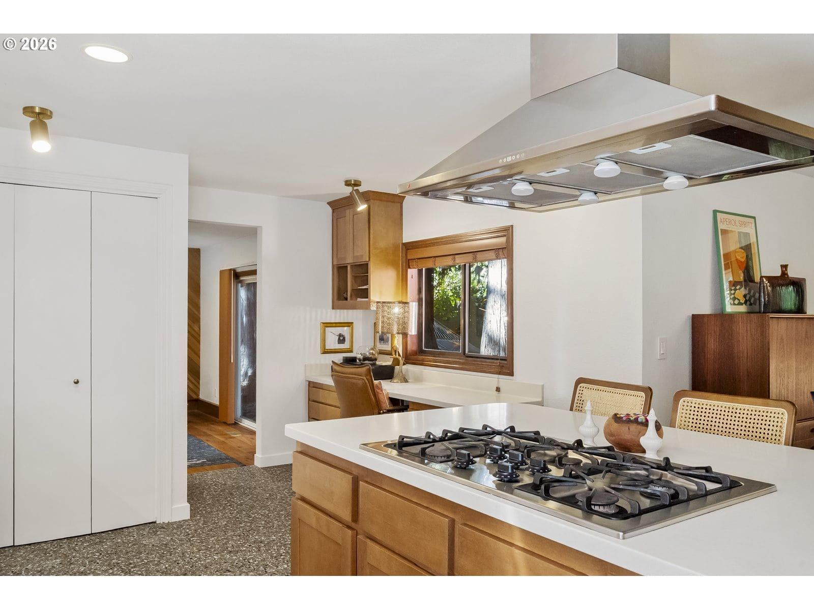 Open Saturday 1/17 11am to 1pm. Offer recieved Sellers ask any other interest submit an offer by 3pm Sunday 1/18/2026.Tucked into a peaceful pocket of the Pacific Northwest you'll find this warm mid century tri-level home designed for comfort, connection and calm. Let the gorgeous oversize Mt. Hood stained glass window guide you onto a Terrazzo tile entry way, overlooking a sunken livingroom, go left to meet the beautifully updated kitchen and a sunken den. Four bedrooms and 2 fully updated baths give everyone privacy and changing natural light. A private wooded backyard with a hot tub, hammock and peace - this home isnt like others you've seen. Even more delightful and cooler in person.