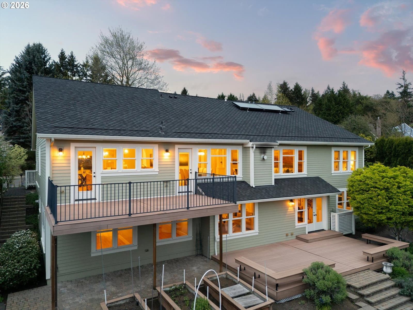 Situated in one of Lake Oswego’s most desirable neighborhoods, this beautifully updated home lives like a one-level and offers the perfect blend of comfort, functionality, and timeless style. Refinished hardwood floors span the main level, guiding you into an inviting open-concept living room anchored by a gas fireplace and expansive windows that fill the space with natural light. The updated chef’s kitchen features quartzite countertops, high-end Wolf and Sub-Zero appliances, cook island, and ample cabinetry. Step outside to a Trex balcony providing a stunning view, peaceful setting to relax and watch the sunset, while the formal dining room with custom built-ins adds an elegant touch. Down the hall, you’ll find a dedicated office with built-ins, an additional bedroom, and a stunning primary suite complete with double vanities, a soaking tub, tiled shower, and a spacious walk-in closet. The lower level offers incredible flexibility with three additional bedrooms, including one ensuite, along with multiple flex spaces and an oversized family room equipped with a projector and screen. Generous storage throughout ensures everything has its place. Outdoors, walk out onto your lower level expansive Trex deck, raised garden beds, a lush and private yard, and built-in bench seating. Located near Mt. Park trails, Westlake Park, top-rated Lake Oswego schools, easy access to amenities, and quick access to I-5.
