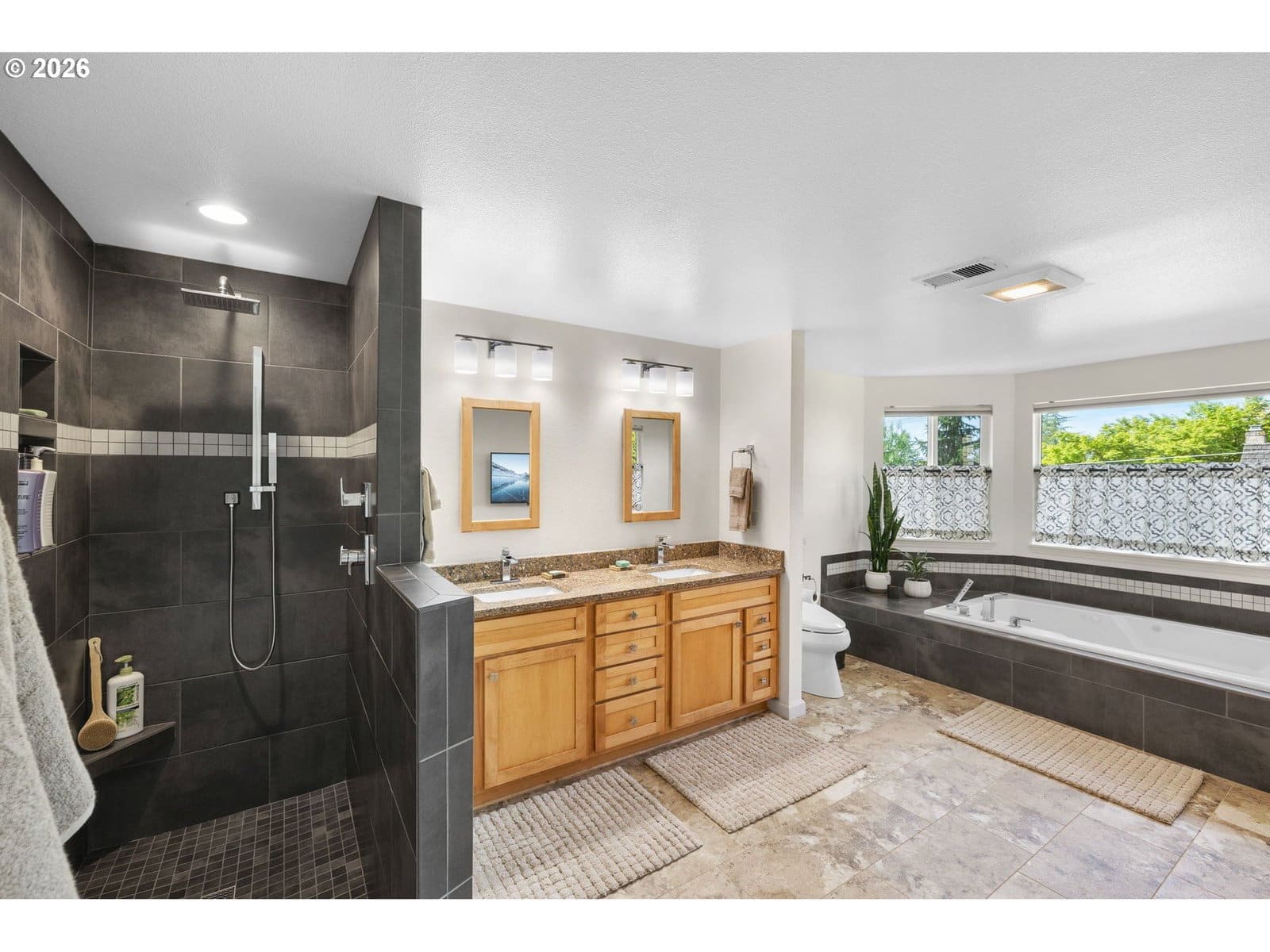 Wonderful Metro location surrounded by desirable Mountain Park neighborhood, 4 bedrooms, 2.1 bath, beautiful and spacious remodeled kitchen with newer solid maple wood cabinets, marble counter tops, stainless steel appliance, gas stove, eating bar, nook area with door to large deck, open to inviting family room includes wood burning fireplace. Formal living room and dining room feature hardwood floors. Huge master suite has bright walk-in closet, tile walk-in shower, double sinks, jetted tub. Utility room with built-in, matching cabinets. Freshly painted inside and new carpets throughout the second floor. Two-car attached garage, with large, private, fully fenced and landscaped back yard great for entertaining and relaxing. Front and back yard, timed sprinkler system. Two hot water heaters, central air conditioning. The property includes access to Lake Oswego through the Lake Grove Swim Park. Top rated Lake Oswego School District including Oak Creek Elementary, just one block from the house.