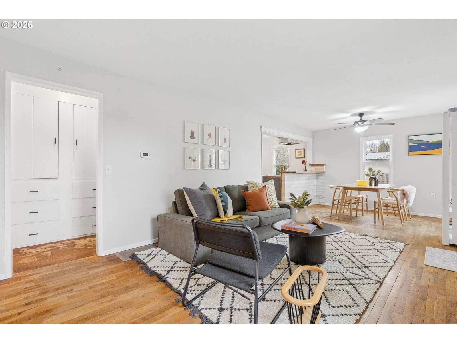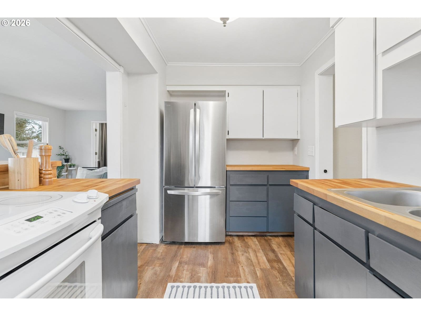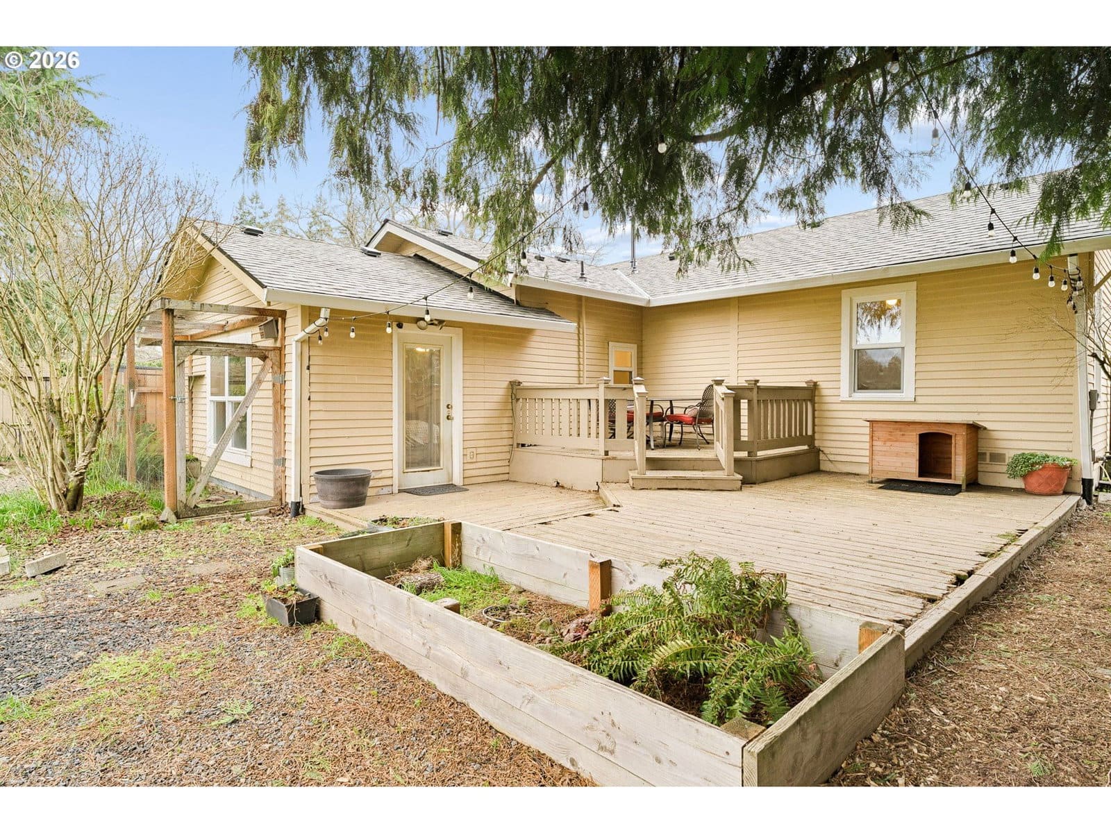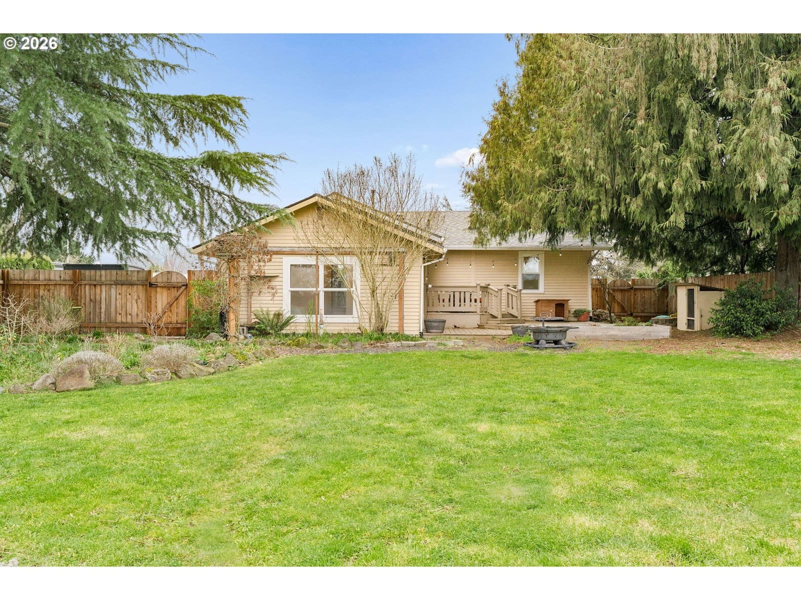 Set on a generous quarter-acre lot, this charming 1930 Canby home blends vintage character with meaningful updates and space to live both indoors and out. Offering 1,635 square feet, the home features covered front porch, 3 bedrooms, 2 baths, hardwoods, open floor plan with abundant natural light, and classic details that reflect its era while supporting modern living. The kitchen has stainless steel appliances, butcher block countertops, laminate flooring and an eat-in bar for everyday gathering, as well as a large primary bedroom with with barn-door detail and outdoor access to deck and yard. Major system improvements include a new roof (2025), newer furnace (2022), updated sewer line and refreshed bathrooms. The flexible floorplan also includes finished basement space for game room/office/hobbies, and a storage area. A lovely substantial lot provides a fenced yard with native plantings, raised garden beds, chicken coop, powered shed, and plenty of usable outdoor space. Oversized driveway offers RV or boat parking.Located near popular parks, river recreation, and Canby’s vibrant small-town downtown filled with local shops, cafés, a farmers market and community events, this home puts you close to the charm and connection. Cute, character-filled, and full of possibility, this home invites a lifestyle lived both inside and out. Settle in and make it your own.