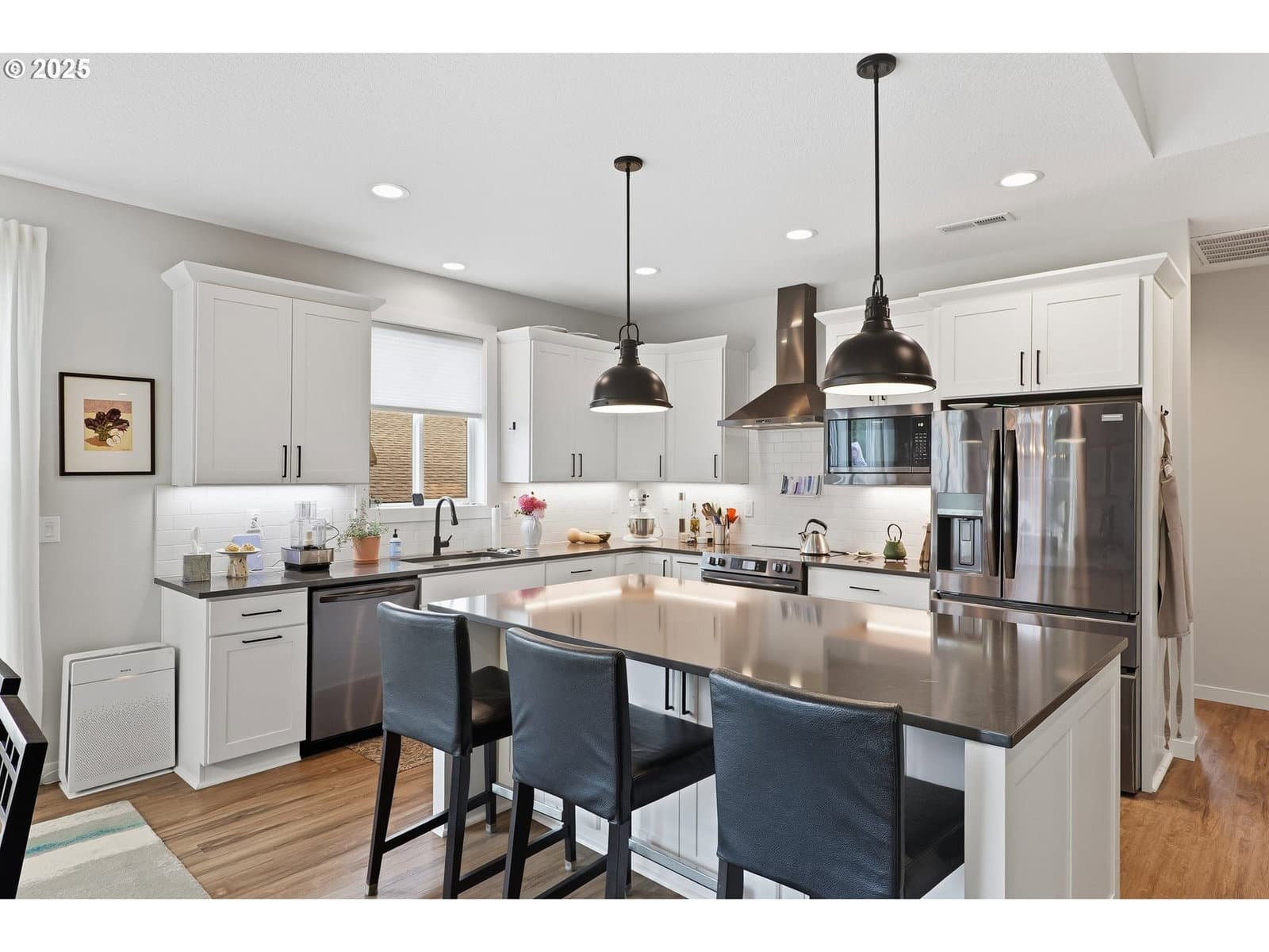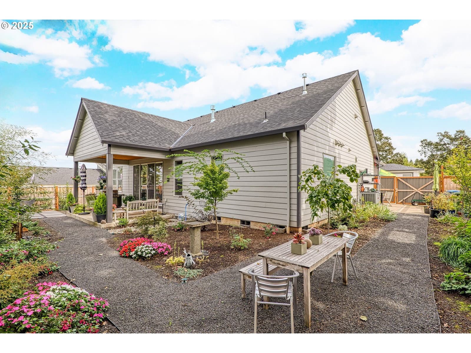 Spacious newer home in Silverton Heights area. Move in ready! Open great room floor plan with all bedrooms on main level. Great room has gas fireplace with floor to ceiling stone surround, high ceilings, dining area, slider to back yard. Bonus/Flex room up for exercise, hobbies, rec. room or guest bedroom. Kitchen with quartz counters, black stainless appliances, large island with breakfast bar, big pantry, & beautiful LVP flooring. Primary suite with walk-in closet trayed ceiling and large bathroom. Primary bathroom has Jacuzzi tub, quartz counters, 2 sinks, & walk-in shower. Fully fenced back yard with beautiful landscaping, bubbling fountain, fire pit, covered patio, plumbed for BBQ. RV parking space on the side.Easy access to downtown Silverton, dining, shopping, schools, & parks. 2.5 miles to The Oregon Garden. 16 miles to beautiful Silver Falls State Park.
