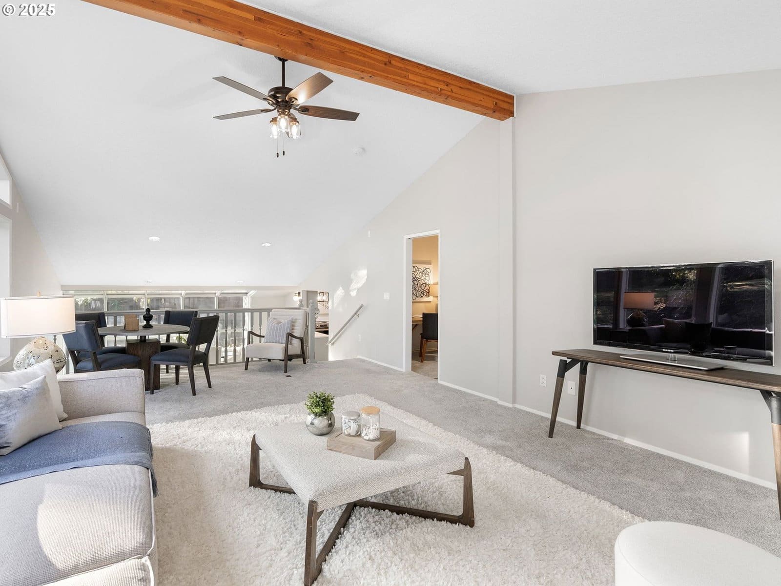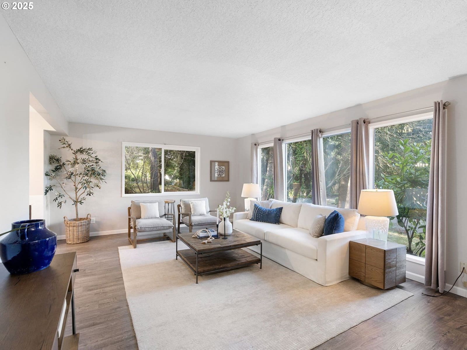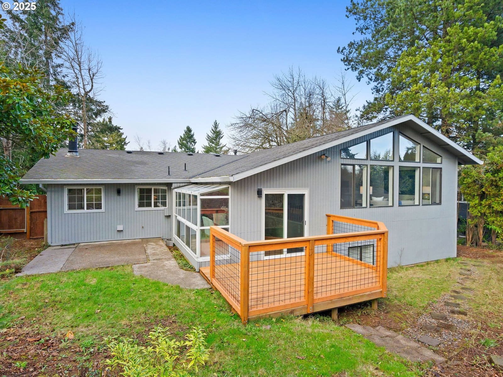 Welcome to this beautifully updated home situated on a private 0.35-acre lot in the sought-after Marylhurst neighborhood. This residence feels fresh and inviting with new paint and new carpet throughout, offering a pristine canvas for your personal style.The floor plan is designed to maximize brightness and connection to the outdoors. The dining room is a true showstopper, featuring unique solarium-style windows that flood the space with natural light. This architectural feature creates a delightful garden-like atmosphere, perfect for enjoying meals year-round. Equally impressive is the spacious family room, where soaring vaulted ceilings and expansive windows frame serene views of the backyard, ensuring the room remains light-filled and airy.The kitchen features sleek quartz countertops and a tiled backsplash, flowing seamlessly into the main living areas which are accented by durable laminate flooring. With a versatile layout, the home offers four generous bedrooms plus a flexible bonus room that can easily serve as a home office, den, or fifth bedroom.Step outside to a large deck ideal for entertaining, overlooking the elevated yard with mature trees and plenty of space for gardening or play. Additional highlights include a roughly 12x8 storage room perfect for a workshop or wine cellar. Located just moments from top-rated schools, parks, and local amenities, this West Linn gem offers the perfect blend of comfort, space, and style.
