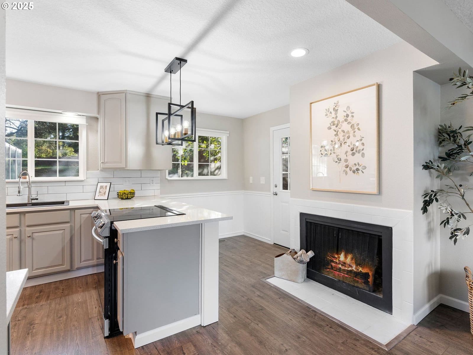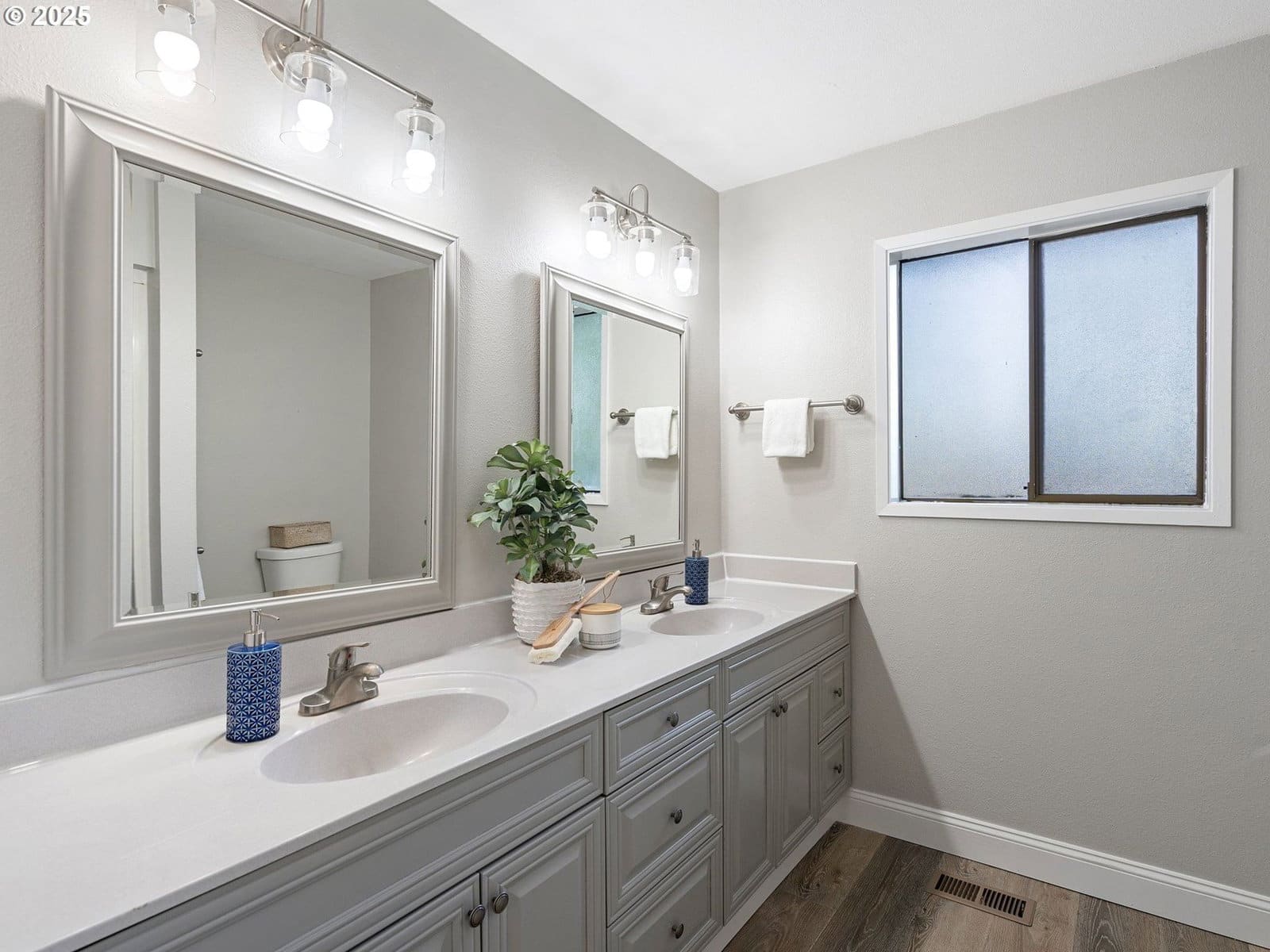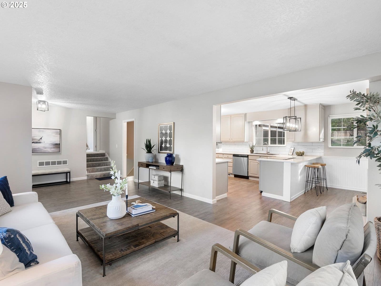 Welcome to this beautifully updated home situated on a private 0.35-acre lot in the sought-after Marylhurst neighborhood. This residence feels fresh and inviting with new paint and new carpet throughout, offering a pristine canvas for your personal style.The floor plan is designed to maximize brightness and connection to the outdoors. The dining room is a true showstopper, featuring unique solarium-style windows that flood the space with natural light. This architectural feature creates a delightful garden-like atmosphere, perfect for enjoying meals year-round. Equally impressive is the spacious family room, where soaring vaulted ceilings and expansive windows frame serene views of the backyard, ensuring the room remains light-filled and airy.The kitchen features sleek quartz countertops and a tiled backsplash, flowing seamlessly into the main living areas which are accented by durable laminate flooring. With a versatile layout, the home offers four generous bedrooms plus a flexible bonus room that can easily serve as a home office, den, or fifth bedroom.Step outside to a large deck ideal for entertaining, overlooking the elevated yard with mature trees and plenty of space for gardening or play. Additional highlights include a roughly 12x8 storage room perfect for a workshop or wine cellar. Located just moments from top-rated schools, parks, and local amenities, this West Linn gem offers the perfect blend of comfort, space, and style.
