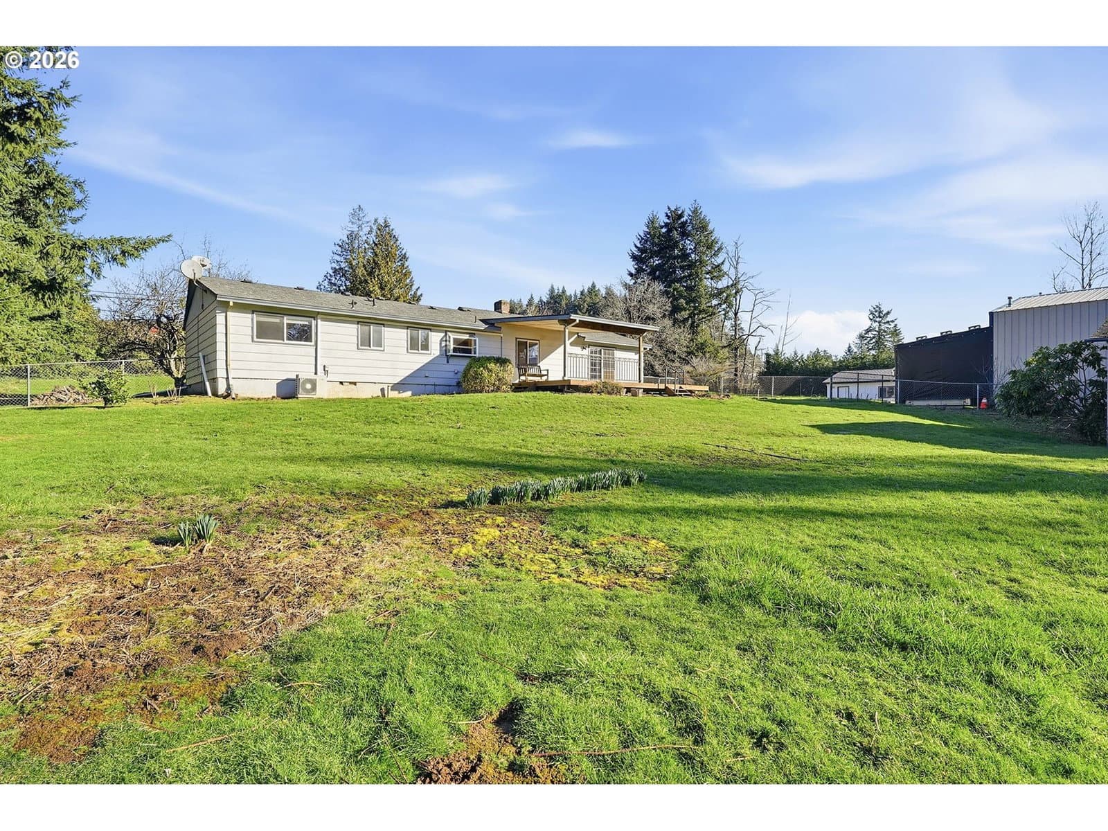 Low-maintenance country living meets city convenience in this thoughtfully maintained one-level home set on a full acre. Updates shine throughout, including a brand new kitchen with beautiful natural wood cabinetry and stainless steel appliances. The primary bedroom features an updated ensuite with a step-in shower, while the living room offers a cozy pellet stove and the family room opens directly to the back deck, perfect for easy indoor-outdoor living. Big-ticket items are already handled with a newer roof and gutter guards, mini-split system for heating and cooling, and the covered back deck invites year-round enjoyment. With a full acre to work with, the possibilities are endless... garden, play, or simply enjoy the space. 5 minutes to shopping/dining at Happy Valley Crossroads (or less into Damascus), less than an hour to Government Camp. Exterior shed perfect for storage, hobby room, etc.