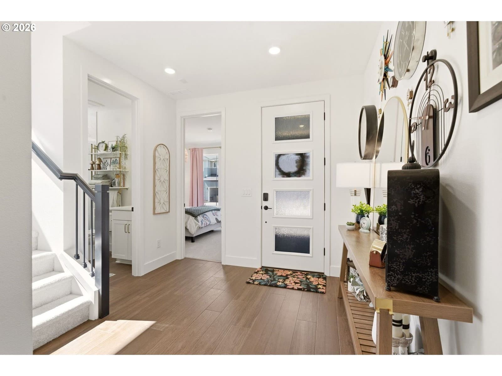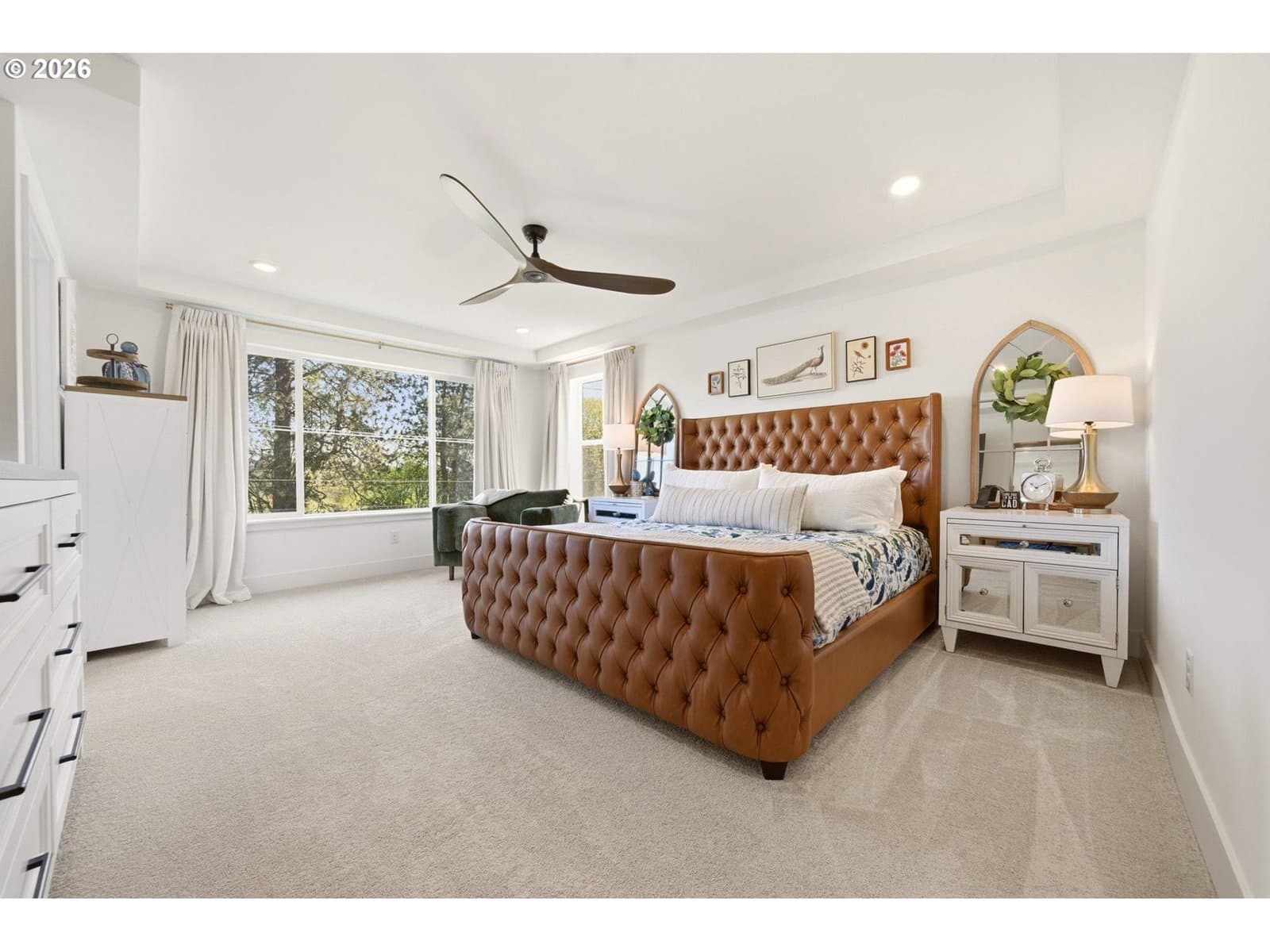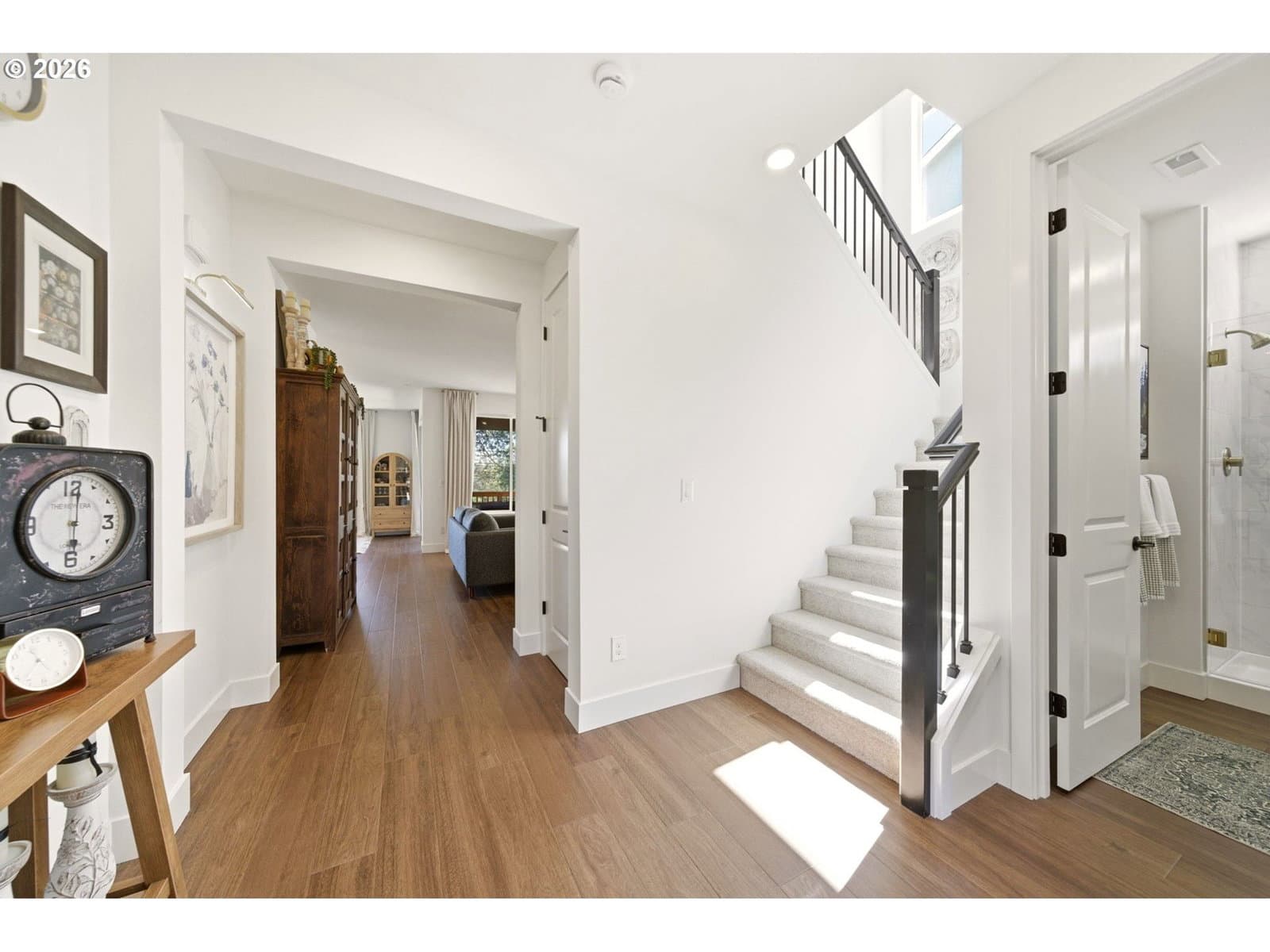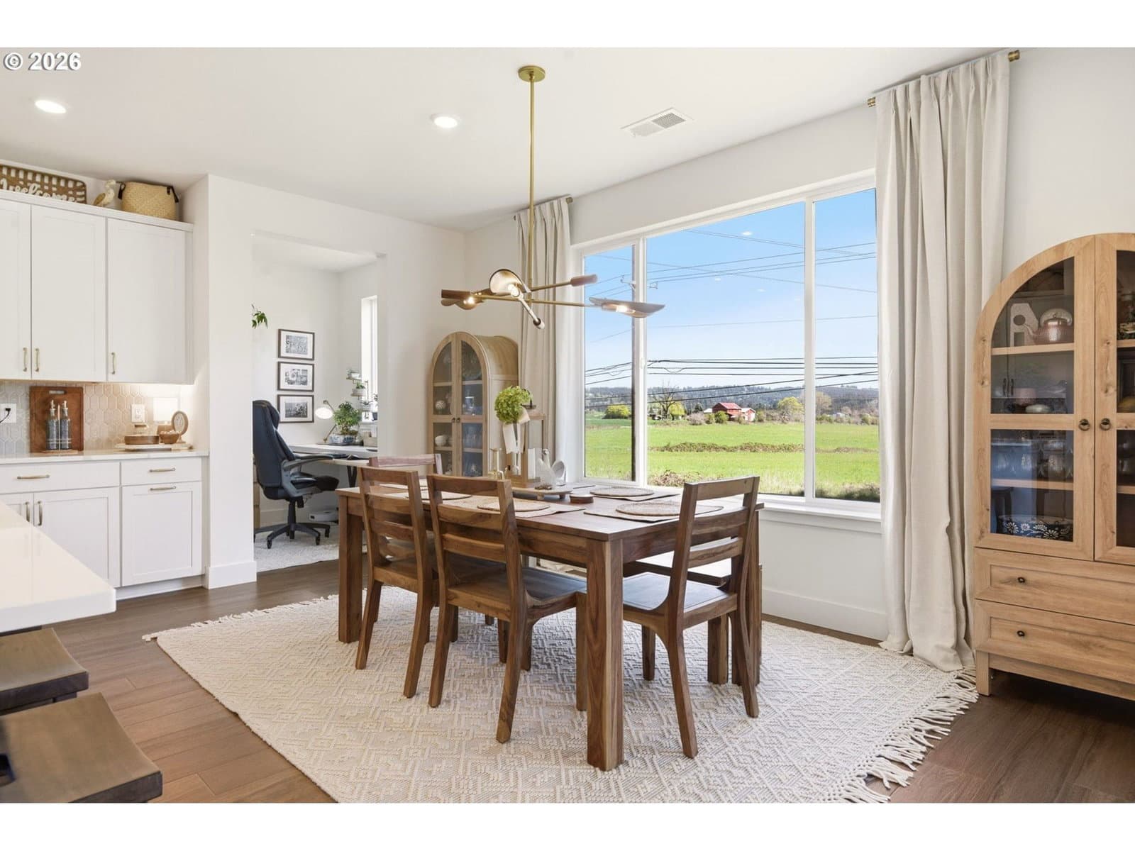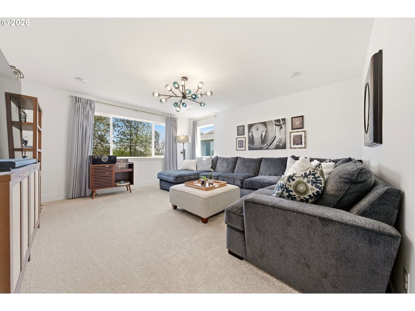 This upgraded Quincy floorplan, built by Pulte Homes, offers a fantastic design with 5 bedrooms, an office nook and bonus/media room, as well as 3 full baths and approx. 2,842 square feet of living space. A spacious entry opens to a Greatroom concept living area that is perfect for entertaining while being connected to the dining area and kitchen. The kitchen has beautiful quartz countertops, stainless steel appliances, a large island, and an expanded walk-in pantry for added storage; the main level includes a full bedroom and full bath with a tiled shower, providing flexible living options for guests or multi-generational needs, while upstairs you’ll find a private owner’s suite with soaking tub, walk-in closet, and custom tile work, along with three additional bedrooms—each with walk-in closets—a versatile media/game room, and a convenient laundry room; interior finishes include luxury vinyl plank flooring, 5" baseboards, soft-close dovetailed construction cabinets and drawers, high 9'ceilings on the main, and designer details throughout, plus power blinds and curtains included; exterior features include a covered deck, fenced yard, fully landscaped yard with front and back outdoor sprinkler systems, with a 2-car attached garage enhanced by a durable epoxy floor; built in 2025 with modern systems such as central air, high-efficiency forced air heating, and tankless hot water, this home also includes a transferable builder warranty and is located in the desirable Frog Pond Crossing community.