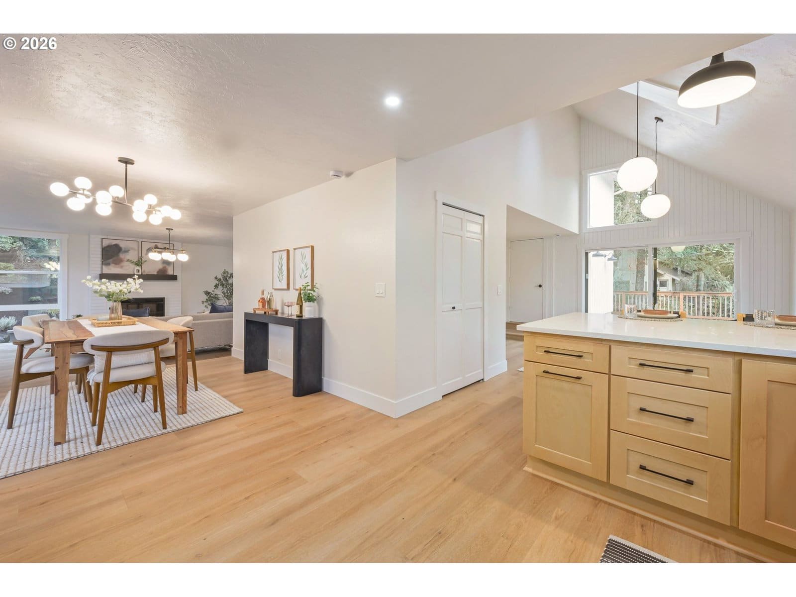 Completely remodeled and thoughtfully renovated, offering exceptional livability in one of South Eugene’s most desirable neighborhoods. Every detail has been updated to create a fresh, cohesive aesthetic with hard surface flooring and plush carpeting in each bedroom. The open concept living areas are designed for both comfort & entertaining. Each space flows effortlessly from the living room to the dining area and into the beautifully updated kitchen and breakfast room. The spacious primary suite serves as a true retreat, featuring generous proportions, fireplace, and an oversized walk-in closet that provides abundant storage and organization. Step outside to a large deck perfect for outdoor dining, relaxing, and hosting while enjoying open southern views. New landscaping enhances curb appeal and creates a clean, polished outdoor environment with room to enjoy the surrounding scenery. Don’t miss the attic storage Clark Griswald would envy! Turn-key and move-in ready, this fully renovated Spring Blvd home combines modern updates, open living, and outdoor enjoyment in a premier Eugene location.