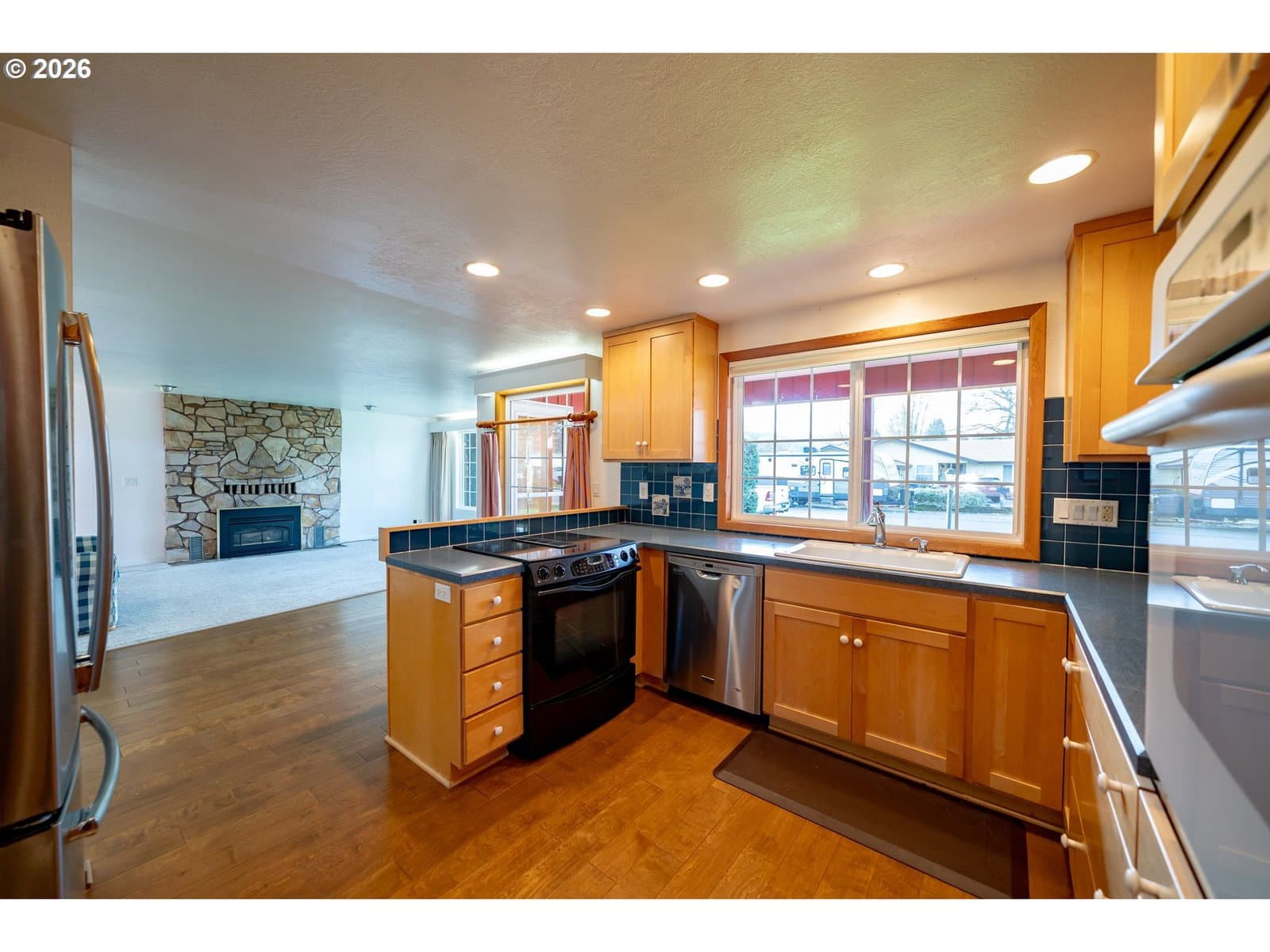 Rare in-town opportunity on nearly ½ acre! This 4 bed, 2 bath, 1,945 sqft home sits on a spacious .41-acre fully fenced lot offering privacy and versatility. Features include an updated kitchen, hardwood floors, fresh paint, rock gas fireplace, and a large family room perfect for gatherings. Enjoy outdoor living on the private deck and covered patio, plus a basketball court, storage shed, and expansive backyard with beautiful mountain views. Bring your BBQ, & your Friends.