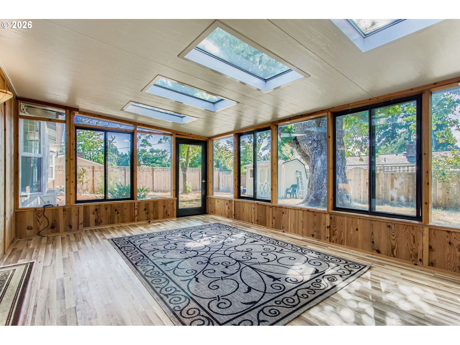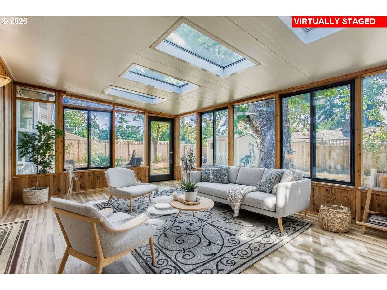 Lake Oswego schools paired with Clackamas County taxes is an opportunity that doesn’t come around often. Set in the Southwood neighborhood of SW Portland in unincorporated Clackamas County, this location offers lower taxes, proximity to Westlake amenities, access to Lake Grove Swim Park and top-rated schools. This refreshed single-level home pairs thoughtful updates with a layout designed for everyday ease and sits on a spacious 0.17-acre lot. Recent updates include luxury vinyl plank flooring, interior and exterior paint, new roof, HVAC with A/C, and an updated electrical panel and wiring. The remodeled kitchen features quartz countertops, a tile backsplash, undermount sink and sleek black stainless steel appliances, including a 6-burner gas range. A pass-through connects dining and family rooms for a natural flow. Family room centers around a wood-burning fireplace and opens to a standout sunroom with skylights, walls of windows and waterproof wood laminate floors. The primary suite features a bay window and an updated en-suite bath with a tiled walk-in shower, marble floors and a marble-topped vanity. Two additional bedrooms share an updated hall bath with a subway tile tub/shower combo, marble-topped vanity and patterned tile flooring. Fully fenced backyard features mature trees, space to garden or play and a shed for additional storage. Just outside Lake Oswego’s Westlake area, with access to the 7-mile West Lake Grove Loop walking trail and Westlake Park known for its concerts, movies, sports fields, play areas and picnic spaces. Everyday essentials, local dining and major commuter routes including I-5, 217, 99W and Kruse Way are all within reach, along with Oak Creek Elementary and the popular Lake Grove Farmers Market.