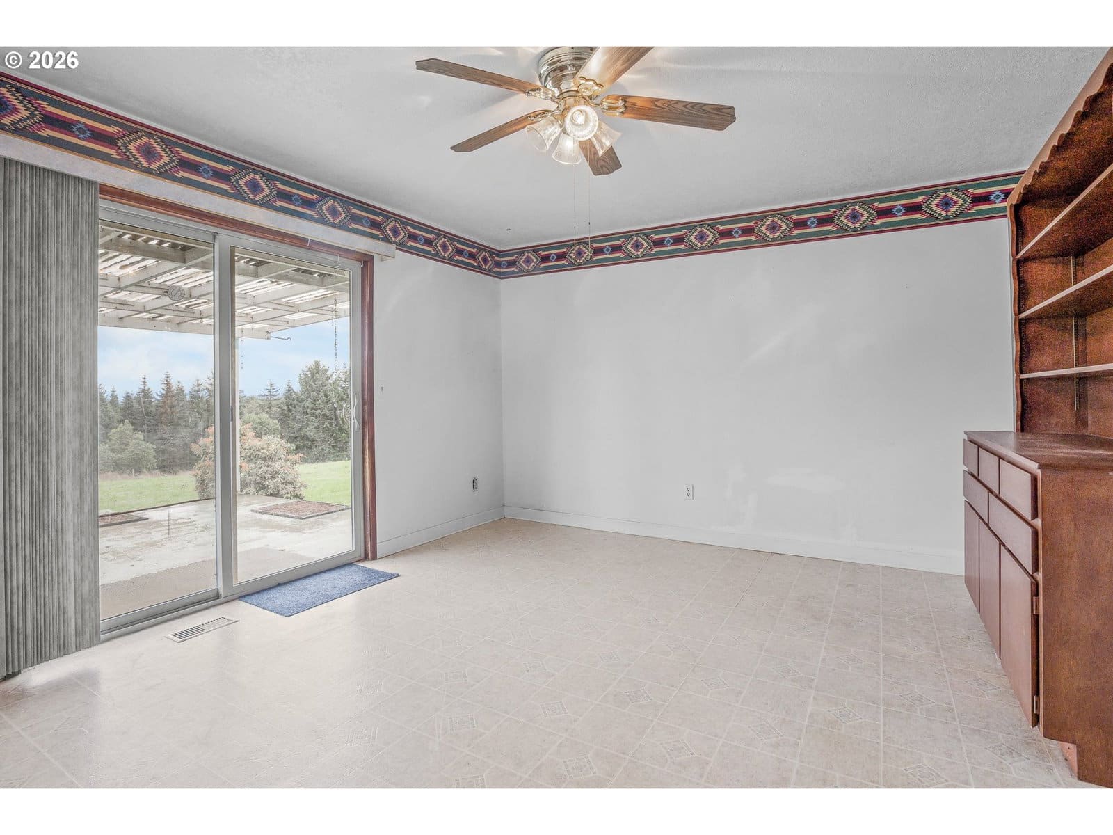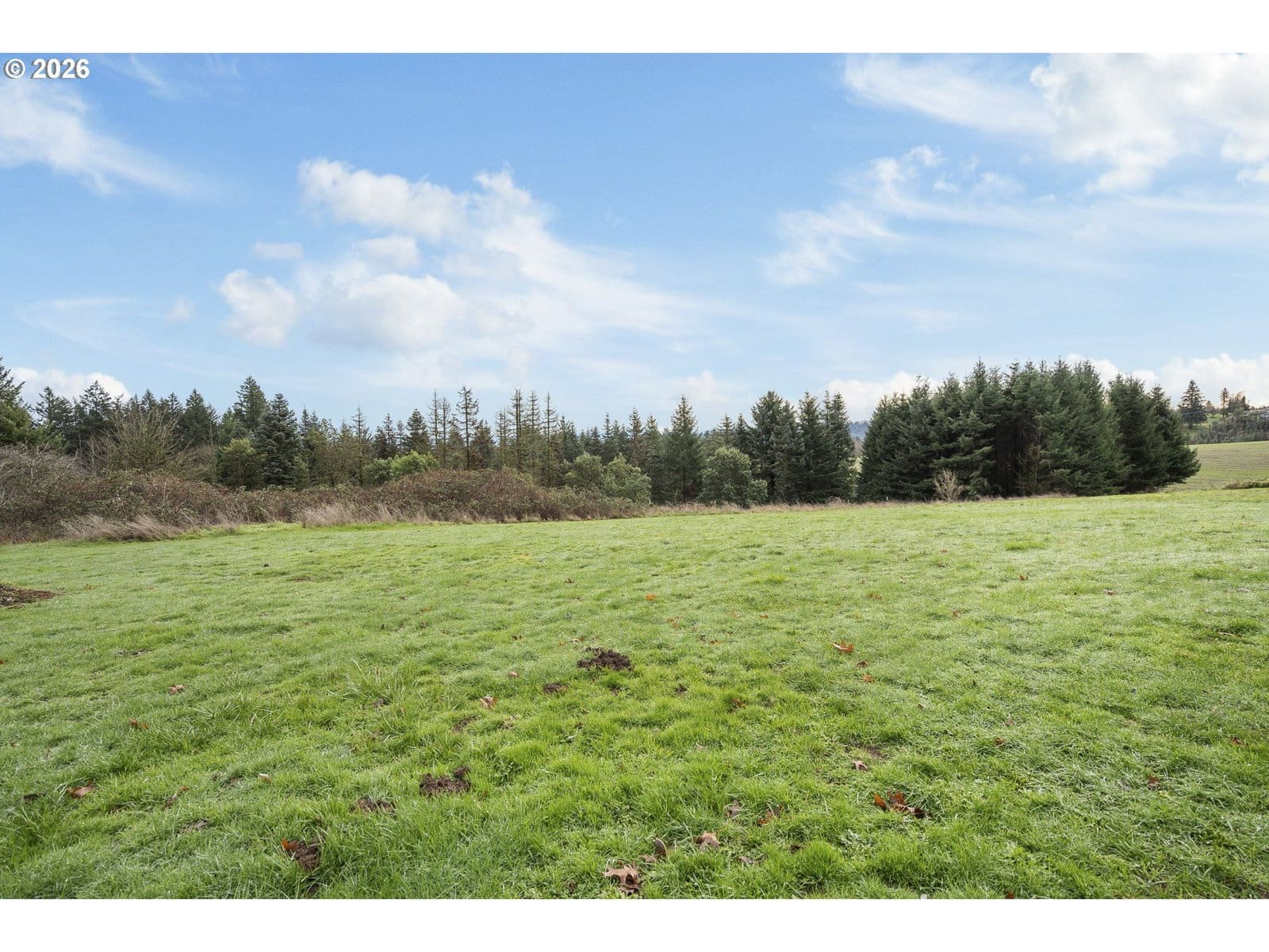One-level country living on prime mountain-view acreage just minutes from town with four-car garage parking and a shop/barn with stalls. Inside: Welcoming living room with brick hearth and pellet stove opens to a kitchen/dining combo space with a covered back patio, perfect for outdoor entertaining with a scenic backdrop. The kitchen is peninsula-style with stainless oven/range and black dishwasher. Still plumbed for drop-in range, if preferred. Forced-air heat and double-pane vinyl windows assure your comfort in any season. Attached garage space combined comprises 1,056 square feet. Convert one garage to add 500 sf additional living space for a rainy day play room, home gym or family room-- so much potential -- or retain it to park all your toys and extra vehicles. Bedroom floors are oak. The house is well away from the road and backs to a former Christmas Tree farm, making it both private and peaceful, and the terrain is level enough for horses and livestock or extensive gardens. This is your chance to own Sherwood acreage affordably!