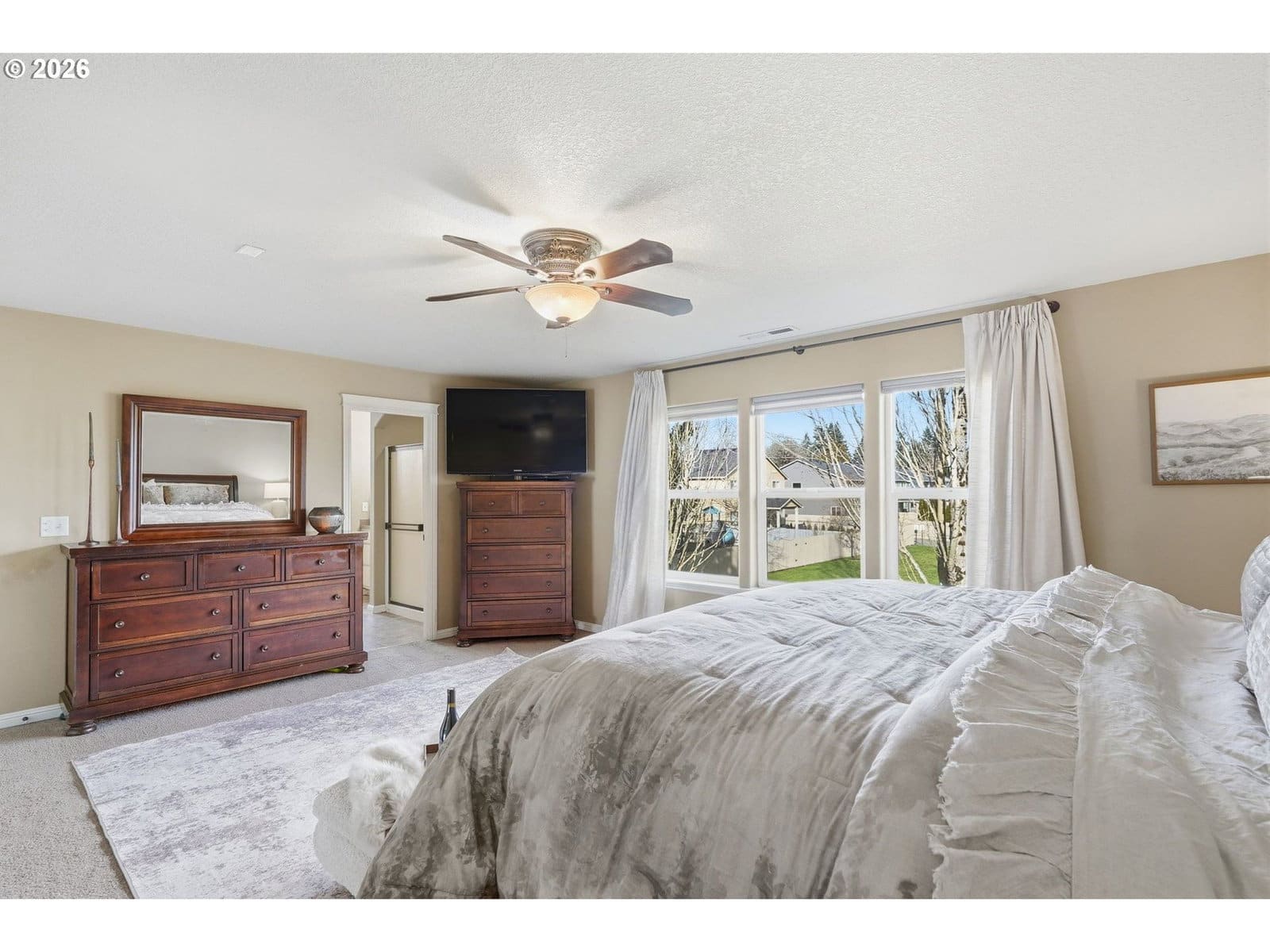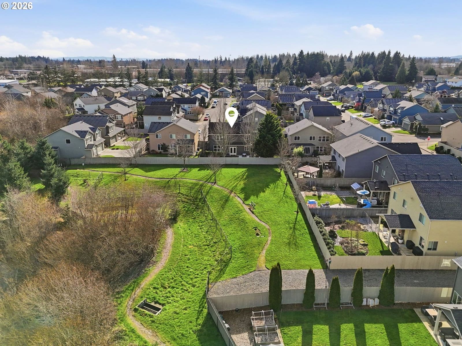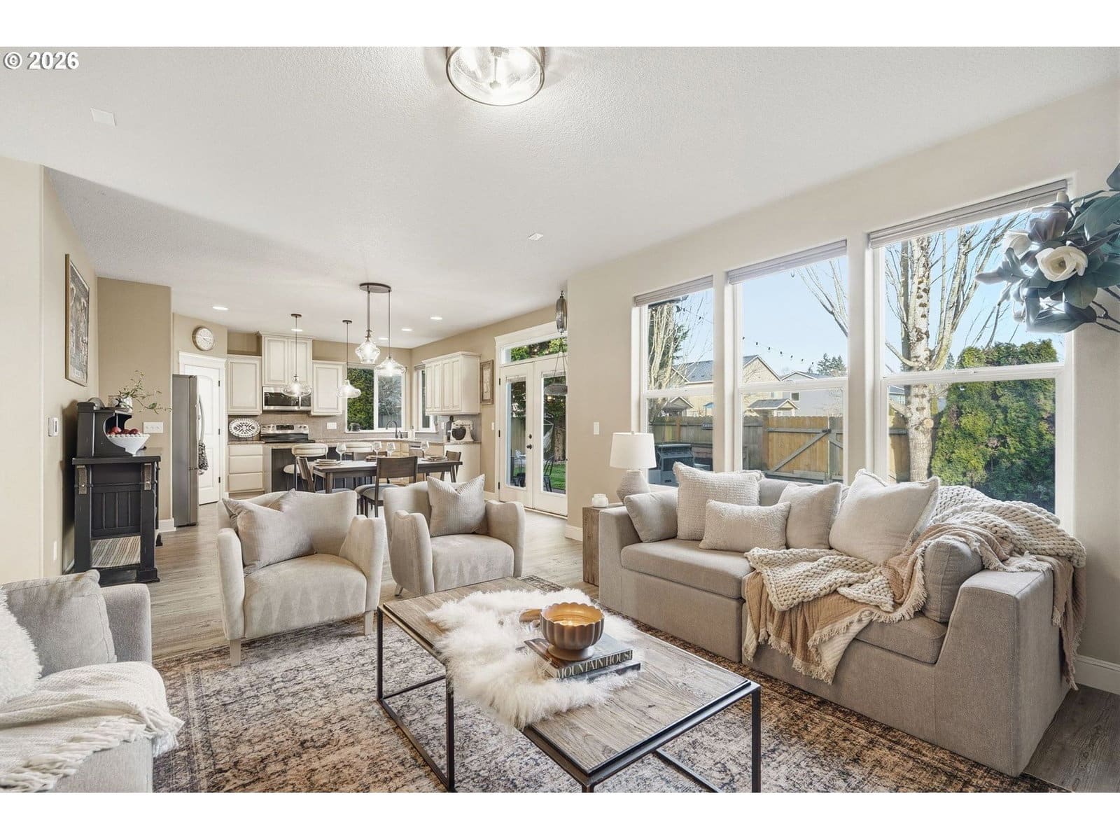 Located in the desirable Village on the Glen neighborhood, this thoughtfully designed home offers flexible living spaces, access to outdoor amenities, and a convenient central location. Less than 20 minutes to PDX Airport and approximately 10 minutes to WSU Vancouver, with easy access to shopping, dining, and major commuter routes.The floor plan includes three bedrooms plus a den with a closet, offering the potential for a fourth bedroom, along with 2.5 bathrooms. The kitchen features newer stainless steel appliances, custom cabinetry, a large island, and a walk-in pantry, providing ample storage. French doors off the dining area open to a freshly landscaped backyard, ideal for gatherings and everyday enjoyment. The property also includes private gated access to an expansive green space with walking trails.Upstairs, double doors lead to the primary bedroom with an ensuite bathroom featuring dual vanities, a corner soaking tub, and a large walk-in closet with built-ins. Two additional bedrooms and a generously sized laundry room complete the upper level.An oversized three-car garage includes built-in shelving and a large storage loft in the third bay, offering exceptional storage options. The home is equipped with a central vacuum system throughout, including the kitchen, as well as a green UV air purification system in the air ducts for healthy living. Professionally designed interiors allow for the option to purchase the home fully furnished at an additional cost. Seller to provide a flooring allowance. Priced to sell at $575,000.