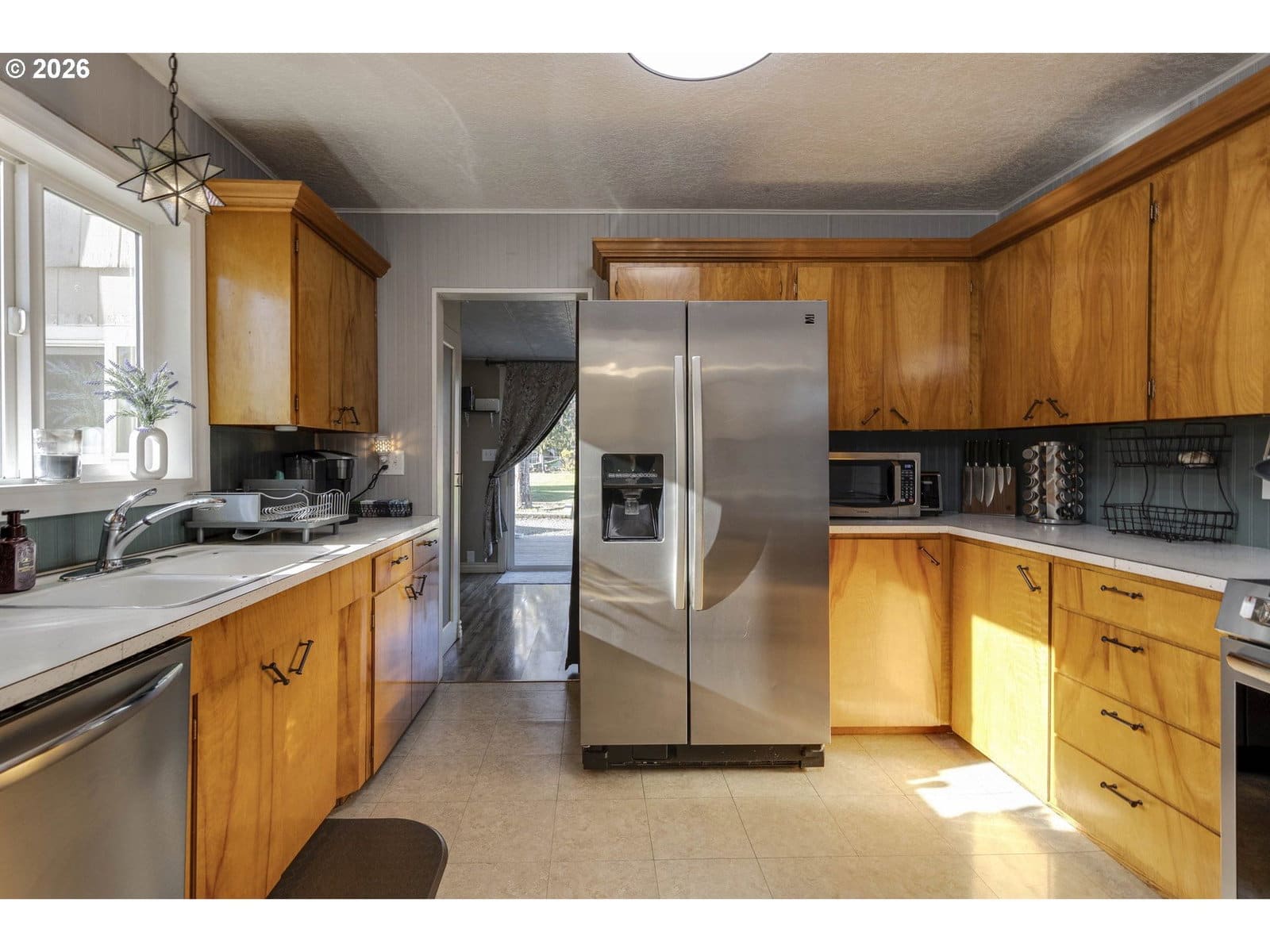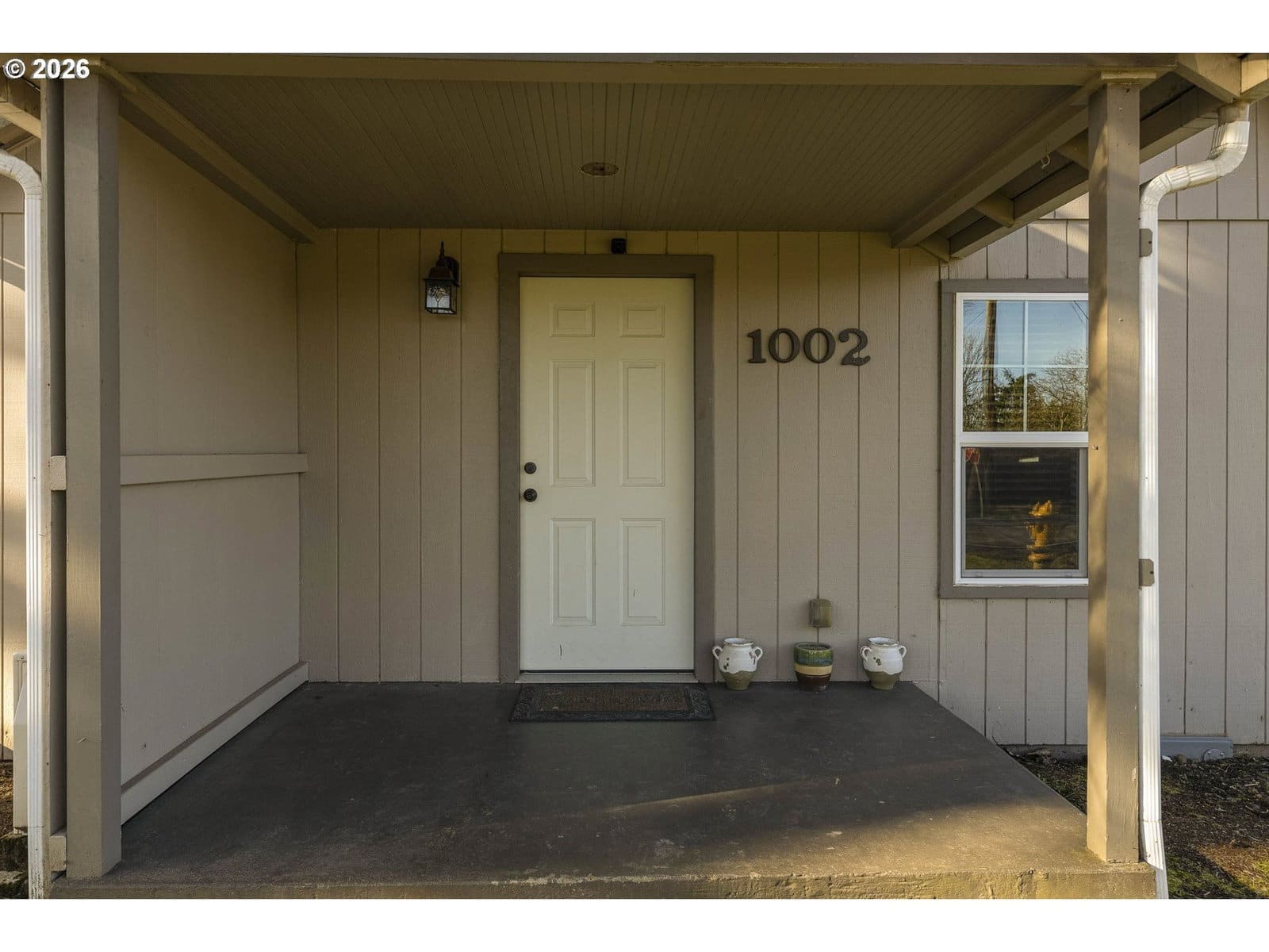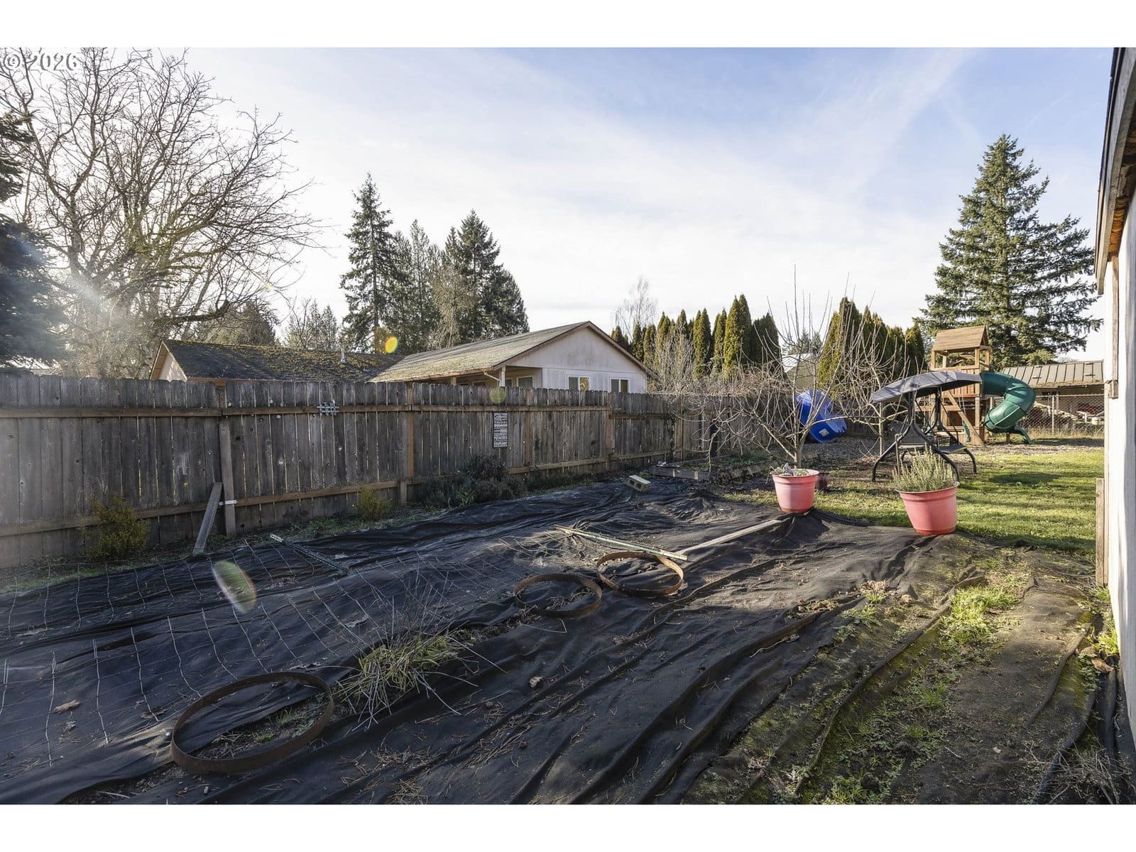 Nearly ½-acre corner lot • Powered shop + RV parking w/ sewer clean-out • Fenced garden + chicken coop. Cute, clean, remodeled 2-bed, 1-bath bungalow in the town of Amity. Vintage character paired with practical updates, including an updated kitchen with refrigerator, dishwasher, convection oven with induction cooktop and air-fryer functionality, plus a clawfoot tub with shower. The expansive fenced yard includes a fully fenced garden area, chicken coop, irrigation well (not recently used), and covered RV/boat parking. RV parking in the driveway includes a sewer clean-out. Outdoor structures offer extensive flexibility with a 24×20 shop with power, additional 20×24 shop space, a 12×12 storage shed, and a 13×11 shed. Natural gas is available, and sellers have completed recent professional crawlspace work. Nearby local dining, coffee shops, and daily conveniences, plus Amity City Park for outdoor recreation. Easy access to Eola-Amity Hills AVA wineries. Opportunity to expand or potentially divide per City of Amity guidelines (buyer to perform due diligence). A combination of land, utility, and small-town convenience with space for a wide range of uses.