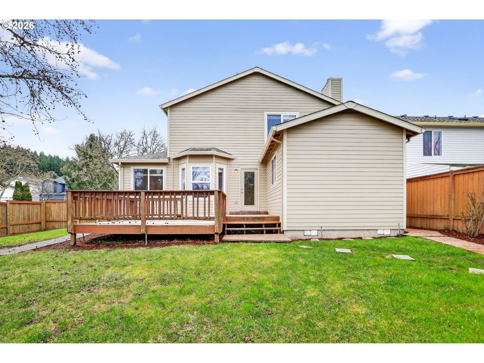 Situated on the back side of a serene, quiet common area and on a desirable corner lot, this beautifully designed 4-bedroom, 2,092 sq ft home offers a rare combination of privacy, functionality, and inviting living spaces. The upper level features a spacious primary suite complete with a large ensuite bath, a walk-in closet, stand alone shower and water closet (new toilet in 2018). Two additional upstairs bedrooms share a convenient Jack-and-Jill style bathroom, ideal for family or guests. Downstairs, you’ll find a fourth bedroom—perfect for a home office or guest suite—along with a formal living room, a welcoming family room w/gas fireplace for ambience, and a well-appointed kitchen. The kitchen includes a charming bay window nook, creating a bright and cozy space for everyday meals, updates as follows: new light fixture 2022 in nook area, FS Fridge 2017, dishwasher 2023, range 2024. Utility room with washer (2017)/dryer. All new ceiling fans in the entire home 2022, HVAC with added AC was replaced in 2013. Step outside to a large back deck overlooking the peaceful common area, where you can relax and enjoy the quiet setting with no neighbors behind you. This outdoor space is perfect for entertaining or unwinding while surrounded by nature completely fenced with cedar and was new in 2018. With its thoughtful layout, private setting, and tranquil views, this home is a wonderful opportunity for buyers seeking comfort and versatility in a peaceful well established neighborhood with not much turnover. Walking distance to New Seasons, close by to Big Al's, shopping and restaurants.