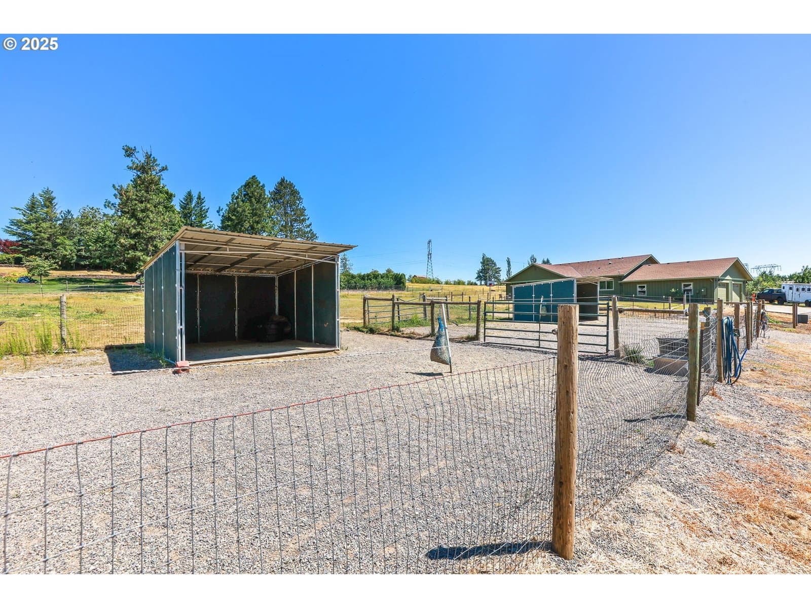 Exceptional Equestrian Property offering everything a horse enthusiast would want—and more! Situated on 6.78 usable acres, the crown jewel is a well-constructed 60x120 indoor riding arena, perfect for year-round training. The separate barn features 9 spacious 12x12 stalls, includes 4 box stalls, five stalls with private runs, a hot/cold wash rack, HUGE tack room, and 13 outdoor paddocks with shelters, each with power and water access. A 70 ft round pen adds to the versatility of this turnkey setup. Inside the barn, enjoy the convenience of an office with washer and dryer, and bathroom, plus a cozy area for overnight guests traveling with horses. The 24x30 shop is fully finished with a concrete floor, plumbed for heat, and ideal for hobbies or equipment storage. There’s also an additional equipment outbuilding perfect for tractors and farm tools. The home is 2,330 sq ft and designed for comfort and easy living, featuring a huge open kitchen ideal for entertaining, all hard wood flooring, and an inviting primary suite with walk-in closet, dual sinks, soaking tub, walk-in shower, and private office. Two additional bedrooms share a Jack and Jill bath with a private shower, and a fourth bedroom has its own full bath—perfect for guests or a home office setup.This property blends functionality, luxury, and lifestyle—whether you're a competitive rider, casual horse lover, or just looking for a peaceful country retreat.
