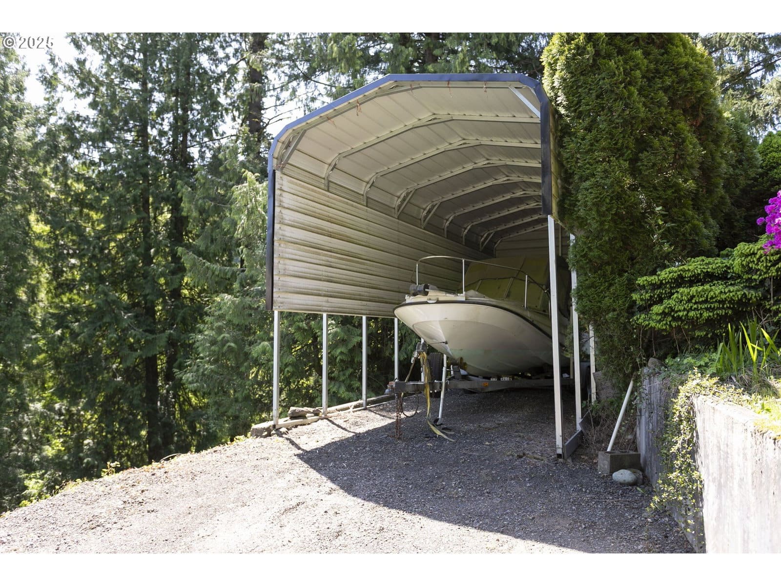 Charming 2-acre Gresham property offers a blend of vintage character, spacious living, and serene surroundings—all just 10 minutes from downtown. With cool retro vibes and beautiful valley views, the home is ready for its next owner to bring their personal style and vision. NEW roof 4/2025. The main level features a warm kitchen with wood cabinetry, bar seating, pantry storage, and stainless steel appliances, including GE double ovens, a Maytag refrigerator, KitchenAid dishwasher. The open dining area flows easily into the family room, where a full-height stone wood-burning fireplace and beamed ceiling accents create a cozy ambiance. A sliding door leads to a composite deck—perfect for enjoying peaceful views. The spacious living room includes a large picture window. A hall bathroom adds a touch of retro charm with a blue cast-iron tub/shower combo and double-sink vanity. Also on this level-a second bedroom and the primary suite, which includes a walk-in closet, and an ensuite bath with a tiled walk-in shower and natural light. Downstairs, a large bonus room features a brick-surround fireplace, walk-in closet, and extra storage—ideal for a wine cellar or hobby space. Two additional bedrooms with closets and cozy carpeted floors, a full bath with tiled walk-in shower, and a linen closet complete the lower level. The attached two-car garage offers remote openers, a ThermPride oil furnace (2016), a 250-gallon above-ground oil tank, and exterior access. Outside, the property shines with a composite deck and aluminum railings, a lower patio, and mature fruit trees including apricot, fig, cherry, plum, and sour cherry. Unique exposed aggregate front stairs. Covered steel carport or boat cover. Double vinyl windows. Public water, and public sewer add modern convenience. This peaceful property offers space, privacy, and potential in a prime location. Close to Persimmon Country Club, 46-acre Hogan Butte Nature Park, shopping, dining & more. 4th Bd/office-no legal egress