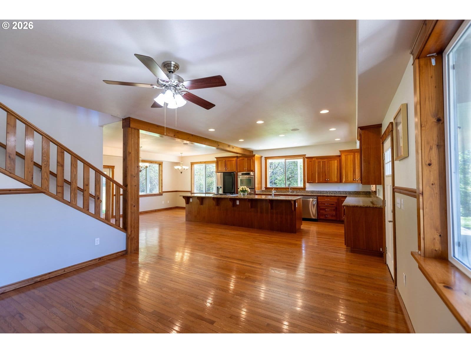 3-story home in Marys River Estates offers over 4,300 sqft of living space on 2.22 acres. Featuring 5 bedrooms and 3 bathrooms, the home curates coziness and functionality with generous natural light throughout. The main level showcases wood floors, granite countertops, stainless steel appliances, and a large island with prep sink and gas range. A massive pantry and extensive storage add to the home’s everyday convenience. Upstairs, you’ll find the bedrooms along with a second-floor laundry area for added ease. The layout includes a large family room and a third-floor loft/bonus space complete with a kitchenette ideal for guests, multi-generational living, or flexible use. Additional features include vaulted ceilings, a covered wraparound patio, circular driveway, shop, and covered RV/carport parking. The acreage offers space, privacy, and room to enjoy the outdoors all just minutes from Philomath.