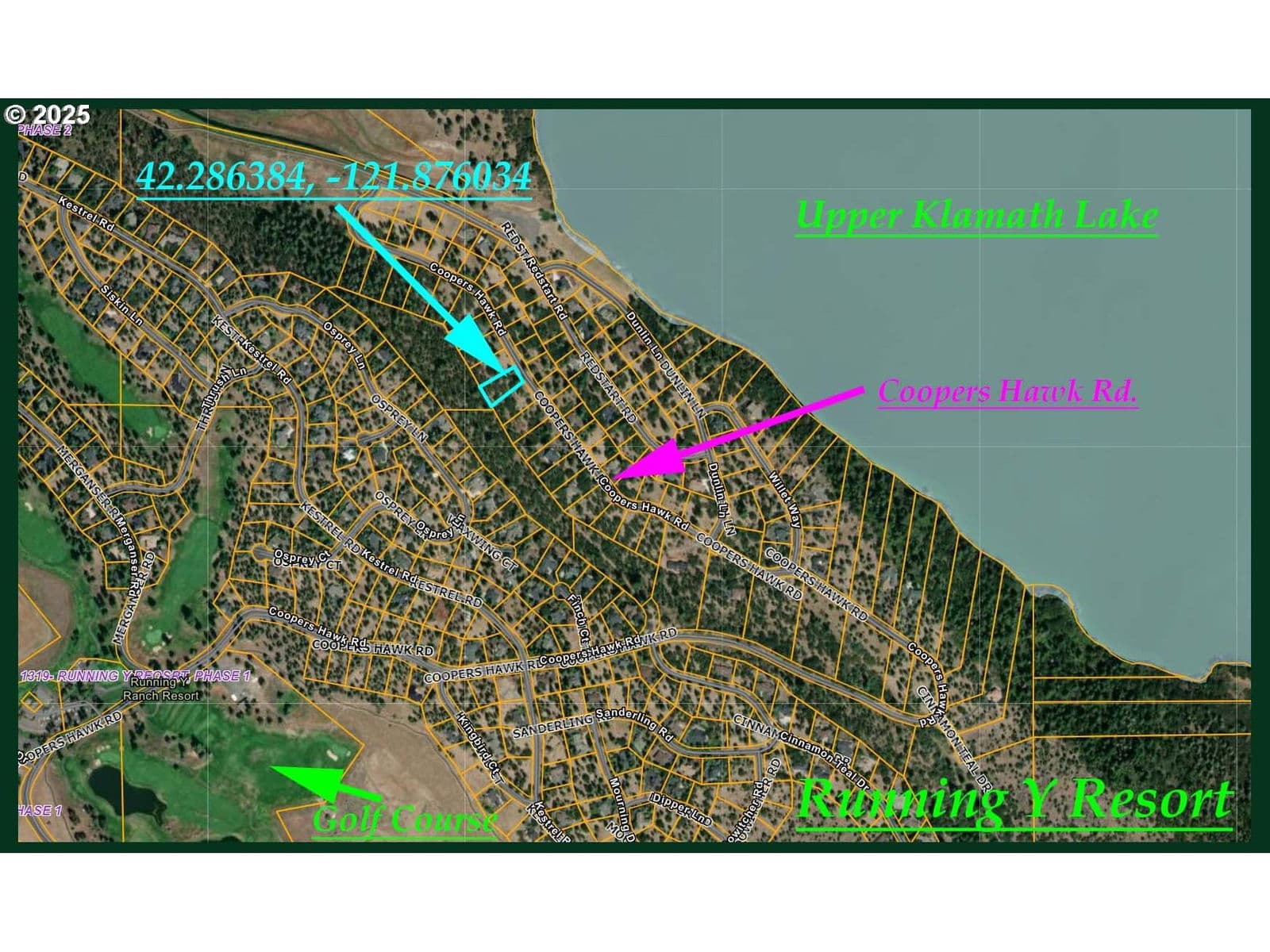 372days on marketDiscover this exceptional 23958 sq ft lot on Coopers Hawk Rd in Klamath Falls, Oregon. Easily accessible via a well-maintained paved road, this property features electricity and phone service available at the road edge, combining modern conveniences with the tranquility of nature. Located within the Running Y Resort Subdivision, this lot provides access to a golf course, ice rink, spa & wellness center, event spaces, dining options, and various outdoor recreational activities. Enjoy beautiful views of Upper Klamath Lake, which offers a range of pursuits including fishing, paddling, birdwatching, wildlife viewing, and camping. The land is surrounded by healthy, mature trees, creating a serene atmosphere while ensuring privacy. The thoughtfully planned subdivision allows for easy access to Highway 140 and the lake, making it ideal for peaceful living and outdoor adventures. This welcoming community has much to offer and has many communal areas with activities, fostering a friendly atmosphere. Don’t miss the chance to make this slice of paradise your own!