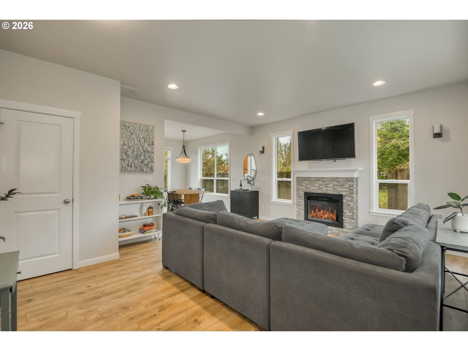 This meticulously maintained 2015 traditional style home is conveniently located within close proximity to shopping, MAX light rail and easy access to Trolley Trail for commuting or recreating. Upon entry you will appreciate the open great-room style floor plan. The living room and dining room feature a cozy electric fireplace and oversized windows which flood these rooms with natural light. You will love entertaining from this spacious kitchen with great storage and plenty of open counter space. The slider from the dining room allows easy access to oversized stamped concrete patio and stem wall surrounded grass area and walkway. Upstairs you will find a large primary suite with vaulted ceilings and dual walk-in closets, three more bedrooms, utility room and hallway bathroom with tub and dual vanity. Other features include: central AC, high efficiency gas furnace, tankless H2O heater, electric car charging station, new fencing on west side of home and gate to potential RV parking space and more.