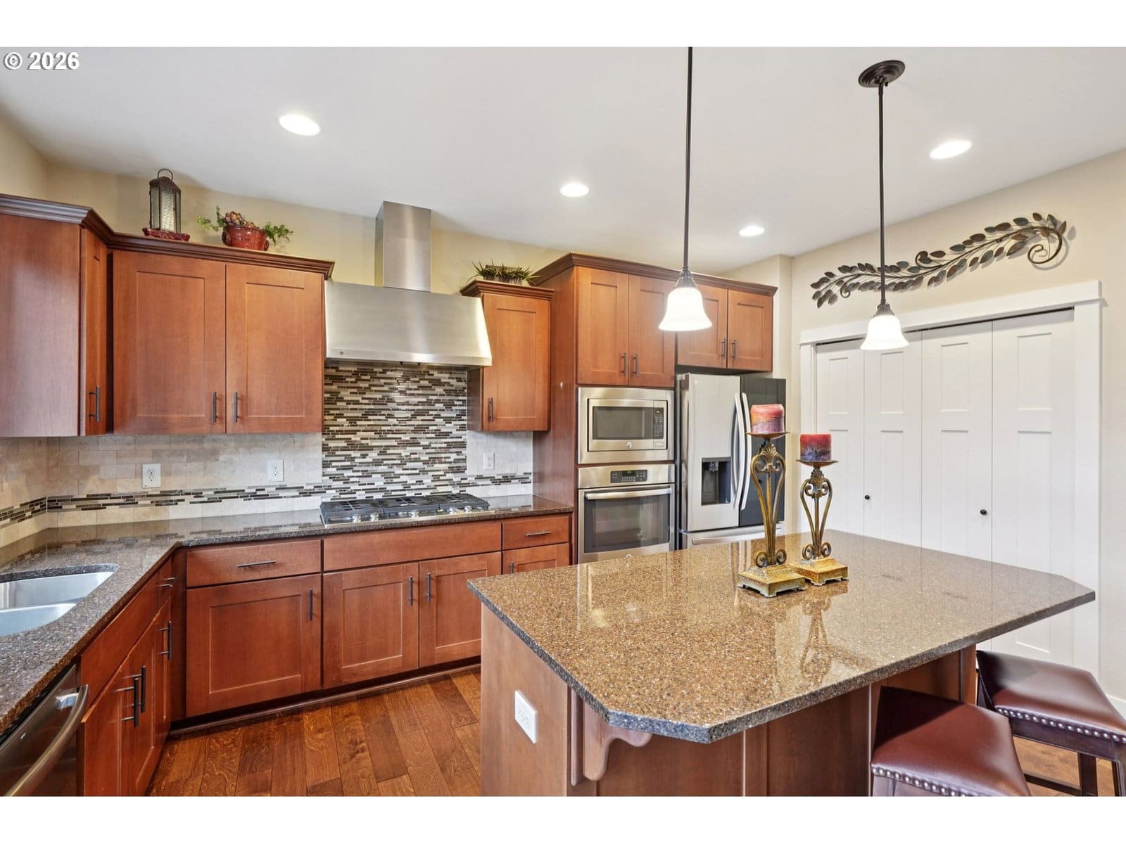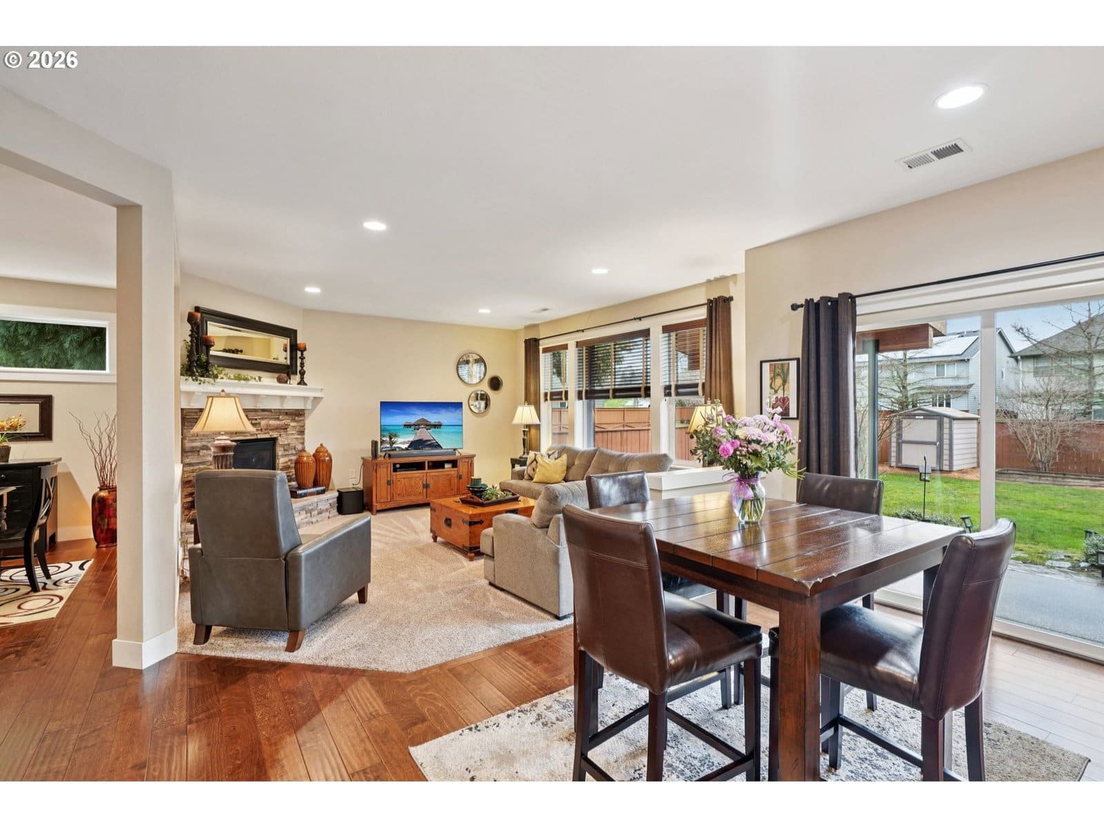 More space, more upgrades, more to love!Located on the largest lot on the block, this home delivers the lifestyle you’ve been searching for.The main level features a private den/office, formal dining room, and an open-concept kitchen with granite counters and island, upgraded cabinets with pull-outs, custom pantry, stainless steel appliances, and an upgraded gas cooktop—all flowing into a cozy living area with a gas fireplace.Upstairs features four bedrooms and a spacious bonus room. The primary suite stands out with a custom walk-in closet and a generous ensuite complete with a soaking tub, separate shower, and dual sinks.The backyard is where this home really shines—an expanded covered patio, hot tub on a dedicated concrete pad, and a fully landscaped, fenced yard with space to relax or entertain. And come summer? Fresh homegrown blueberries are yours for the picking.Community clubhouse and pool complete the lifestyle. Big lot. Big upgrades. Big living.