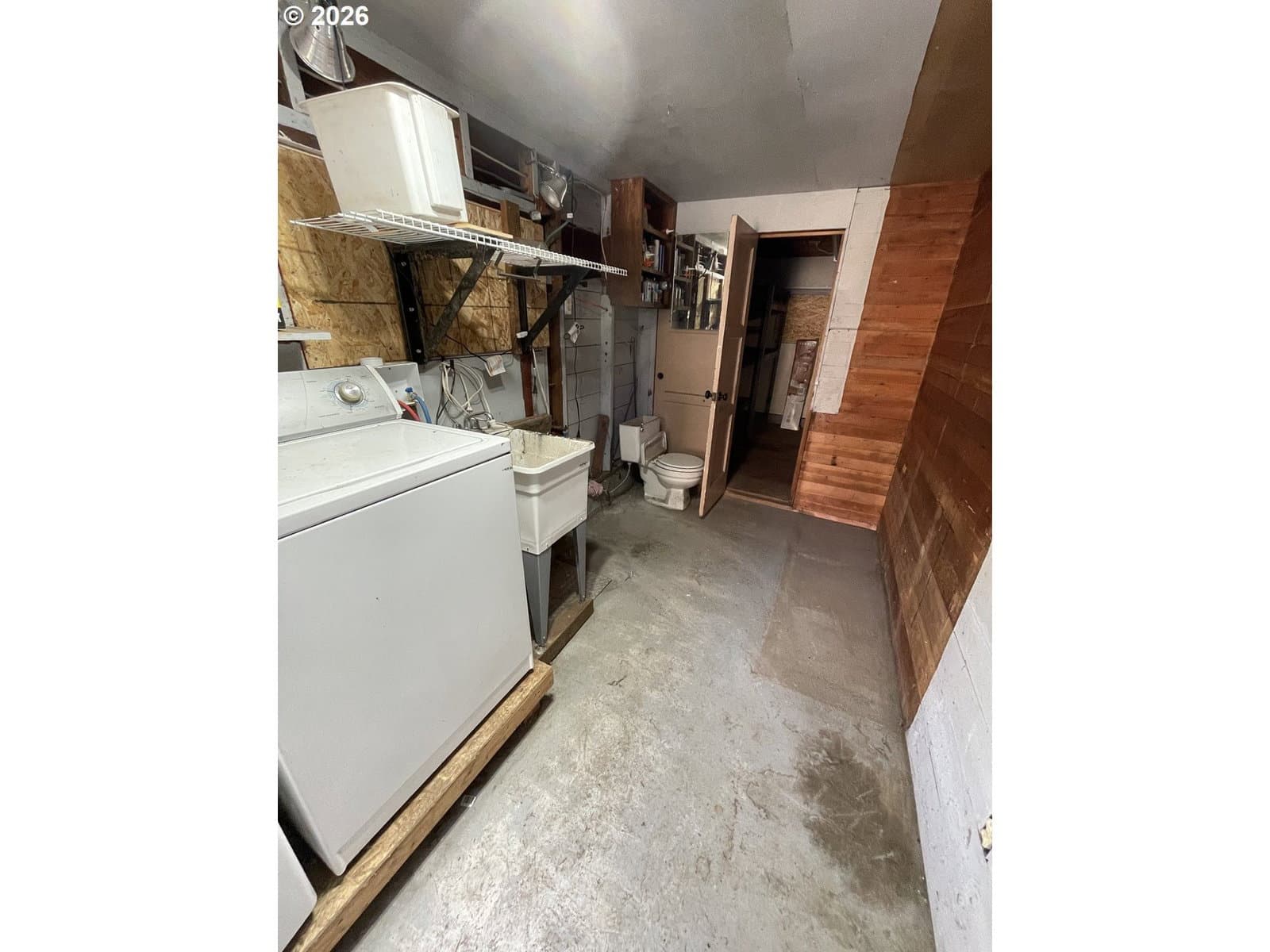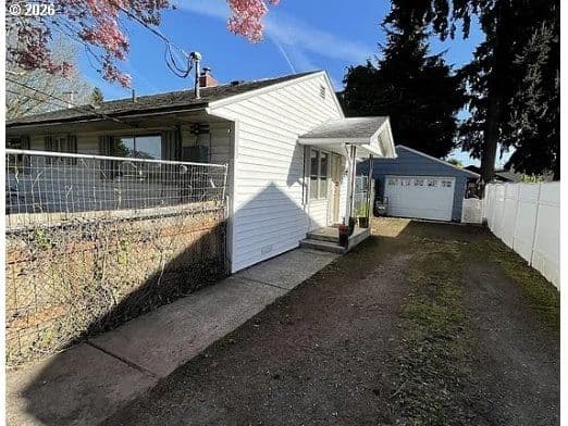 Charming and well-maintained what was once a 2-bedroom and is now a 1-bedroom, 1-bath home with solid construction and thoughtful updates throughout. Seller changed the floor plan layout by increasing the space for the living room area by taking down the wall between the living room and the 2nd bedroom. Easy project to put a wall back if 2 bedrooms are needed. Features include a heat pump with A/C, refinished hardwood floors, and updated windows for improved comfort and efficiency. The fully fenced yard offers privacy and functionality, complete with a garden area in the backyard featuring raspberries, blueberries, and raised vegetable garden in the front. The garage provides versatile space—one side functions as a 1-car garage with a new door and opener, while the other includes a laundry area, partial bath, and additional storage. All appliances are included, making this home move-in ready. 2015 new electrical panel... 2021 new water heater... 2021 new roof on home and garage... 2021 Plumbing, re-piped & new water main... Cold and hot water to the garage with utility sink... 2024 new life proof flooring throughout... 2025 new LG refrigerator... 2025 new Dishwasher... 2025 Chimney inspection and cleaning & Chimney has stainless steel liner... 2026 new electrical sub panel... Custom built 6x6 garden shed... Custom built timber teck deck & patio cover... Garage has 120 and 240 power... Garage has additional working toilet... Heat pump & forced air.