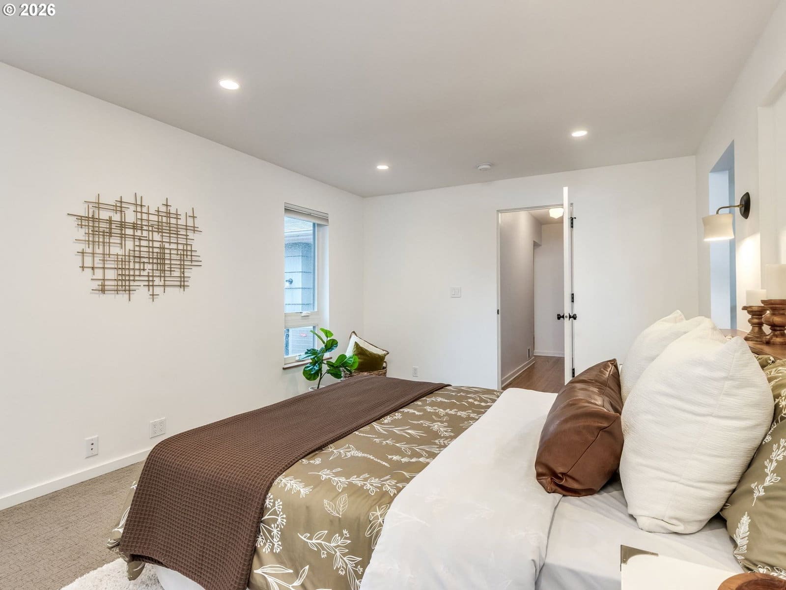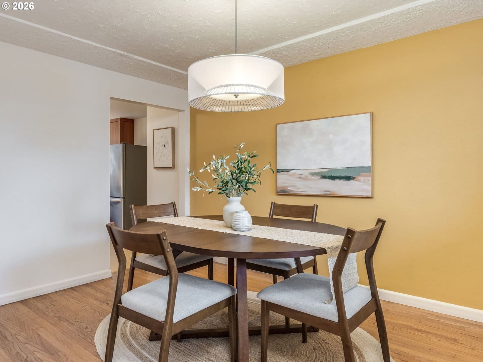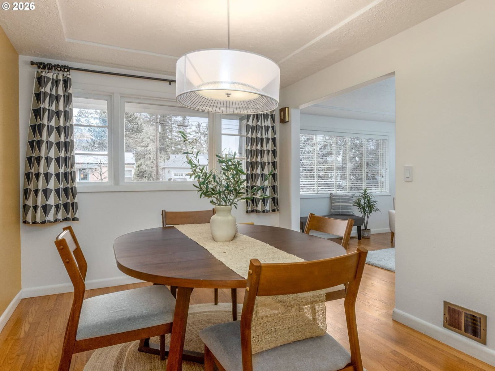 This quintessential 1950s cottage is seamlessly blended with an Architect-designed primary suite addition and gorgeously remodeled kitchen. It is an iconic example of the era with a supremely cozy and efficient layout, deep eaves protecting the original cedar-shake siding, and an attached single-car garage loaded with built-in shelving ready for projects and storage. The large primary bedroom was added in 2017 with cherrywood accents, harkening back to the area's days as a cherry orchard, custom floating vanity in the new en-suite full bath, a walk-in closet, and a built-in office nook providing maximum flexibility. The eye-popping kitchen was reimagined in 2023 in a style that nods to the era with color choices and materials but lives fully modern with loads of storage and ample prep space. The two additional bedrooms provide opportunities and options to fit your lifestyle. The bedrooms and kitchen all have updated, energy-efficient windows. A newer roof, new driveway, insulation in the walls, floors and attic, a recent electrical panel upgrade, and an energy efficient heat pump furnace system are just some of the thoughtful upgrades awaiting the new inhabitants of this fantastic home! [Home Energy Score = 7. HES Report at https://rpt.greenbuildingregistry.com/hes/OR10243392]