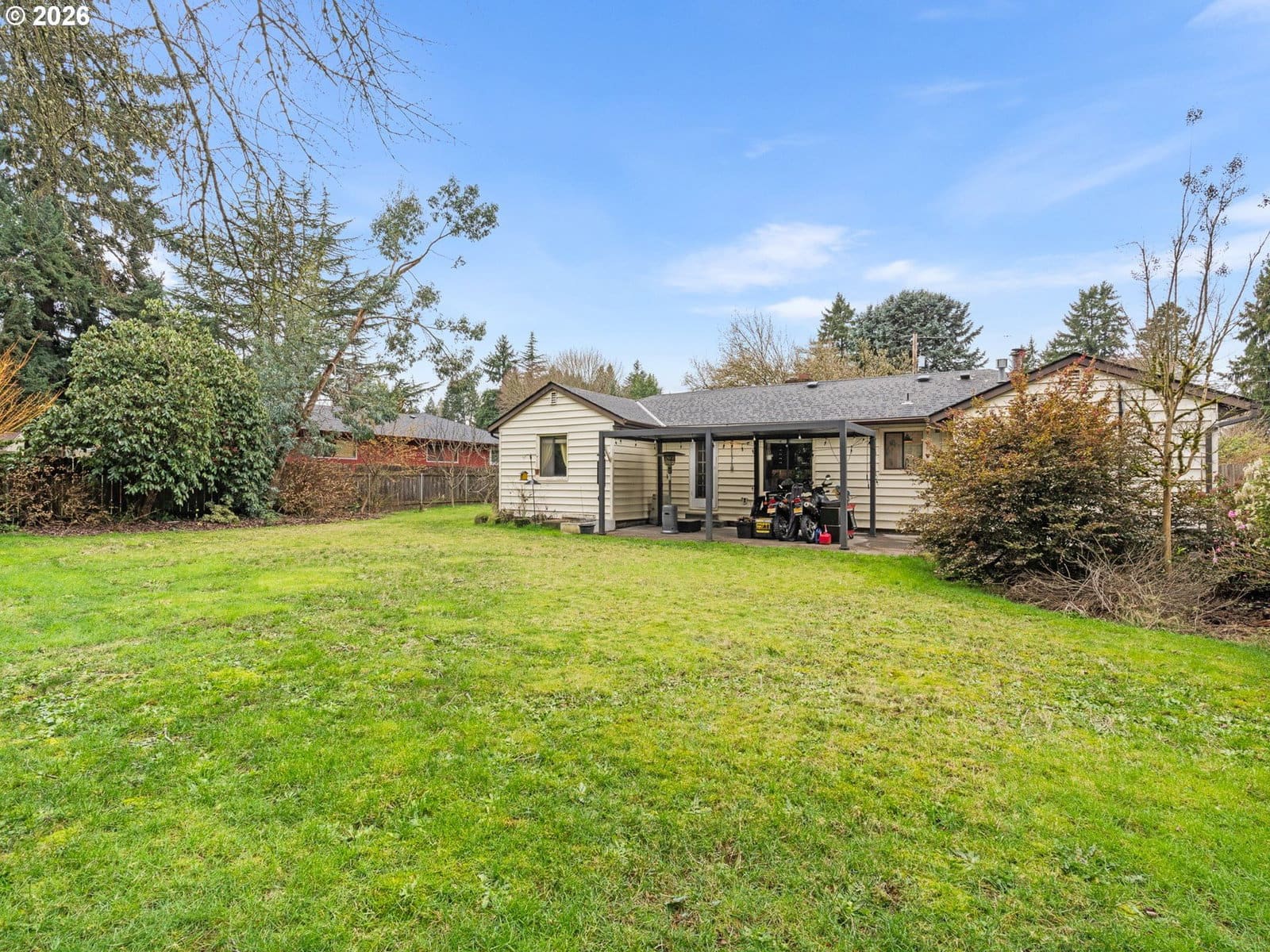 Hello there — I’ve been waiting for you here on SE Hollywood. With 1,042 square feet of thoughtfully designed living space, I offer two bedrooms and one full bathroom wrapped in classic charm and meaningful upgrades that bring comfort and confidence to everyday living. Step inside and you’ll notice my coved ceilings in the living room and both bedrooms, adding timeless architectural character. Each bedroom features its own ceiling fan for added comfort. My kitchen is ready for daily meals or weekend gatherings with a gas range, quartz countertops, a peninsula with eat bar, extensive cabinetry, and built in shelving that keeps everything organized and within reach. Gas utilities serve the home for efficient and reliable performance. Behind the scenes, I’ve been carefully improved with 20 amp grounded AFCI circuits throughout using 12/2 Romex wiring in place of original cloth wrapped two conductor wiring. Halo can less LED recessed lighting brightens my interior with a clean, modern glow. Central air conditioning with insulated hard ducting keeps me comfortable year round. Added center floor joists and supports enhance structural stability, while blown in attic insulation and attic soffit vents improve ventilation and efficiency. Outside, I sit on an expansive .31 acre lot with generous outdoor space for gardening, entertaining, or future possibilities, including an operible Pergola for covered dining, or open roof stargasing! My attached one car garage, driveway, and additional off street parking pad provide flexible parking options. Located in Clackamas County, I benefit from typically lower property taxes while remaining just about 0.6 miles from Brentwood City Park and roughly 1 mile from the shops and eateries along SE Woodstock Blvd, with convenient access to major commuter routes for easy travel throughout the metro area. With character, infrastructure upgrades, a large lot, and a strategic location, I’m ready to welcome you home.